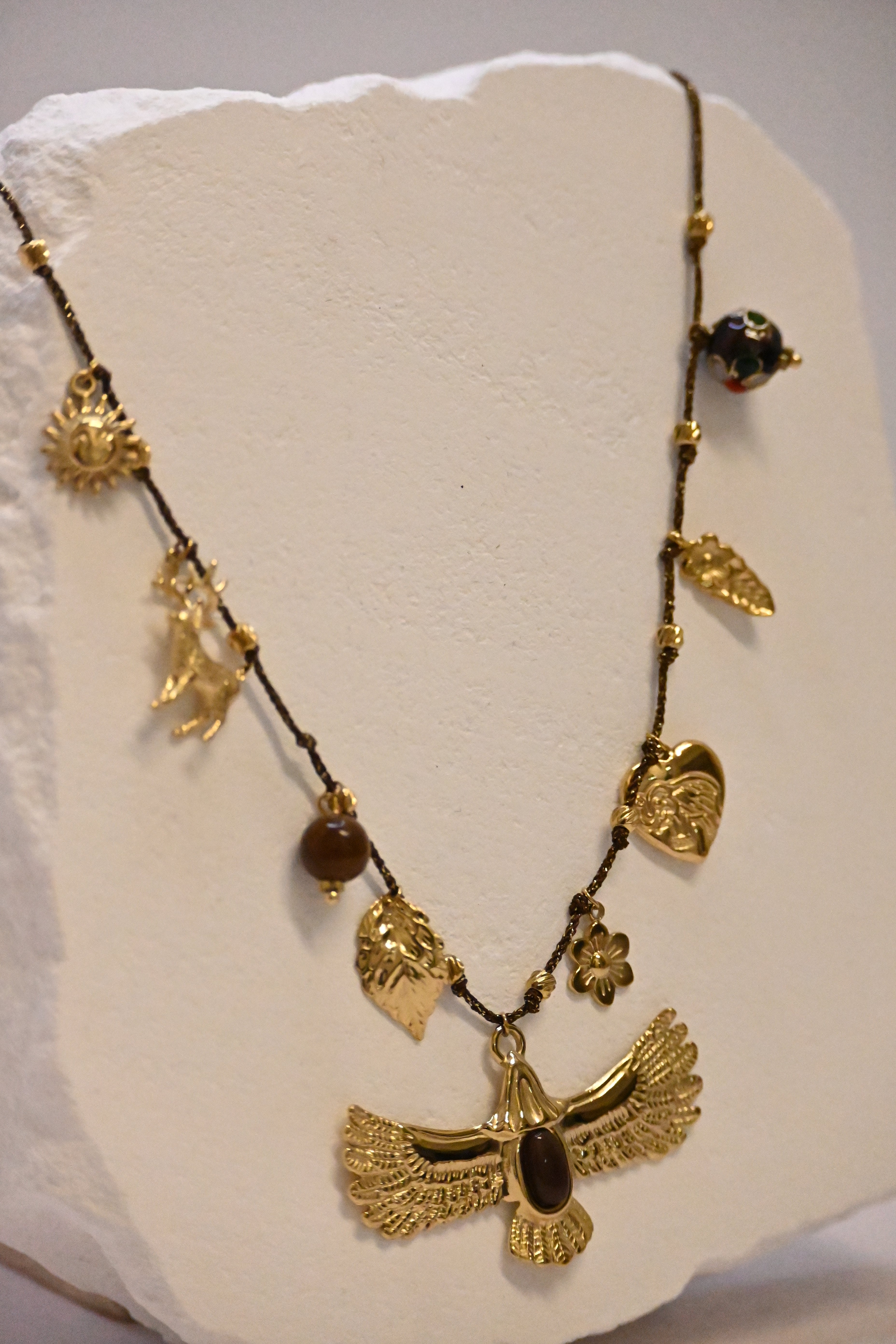 Découvrez notre collier DAISY, une pièce élégante qui allie sophistication et polyvalence. Ajustable à votre convenance, ce collier arbore une palette chaleureuse de tons chocolat et doré, sublimée par des breloques délicates qui capturent la lumière. Parfait pour ajouter une touche de charme à vos tenues quotidiennes ou vos occasions spéciales, ce bijou intemporel se porte avec aisance et confiance.
