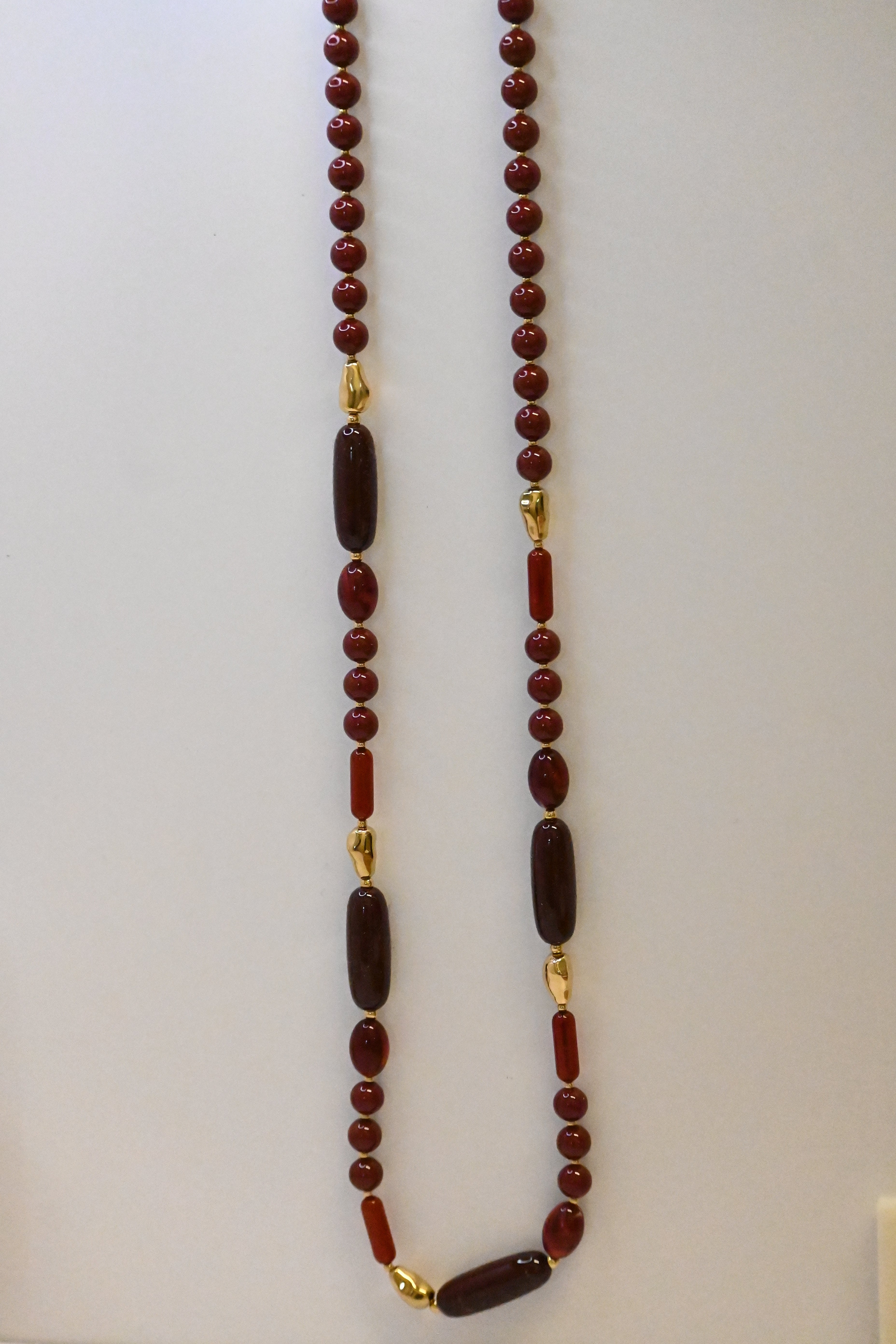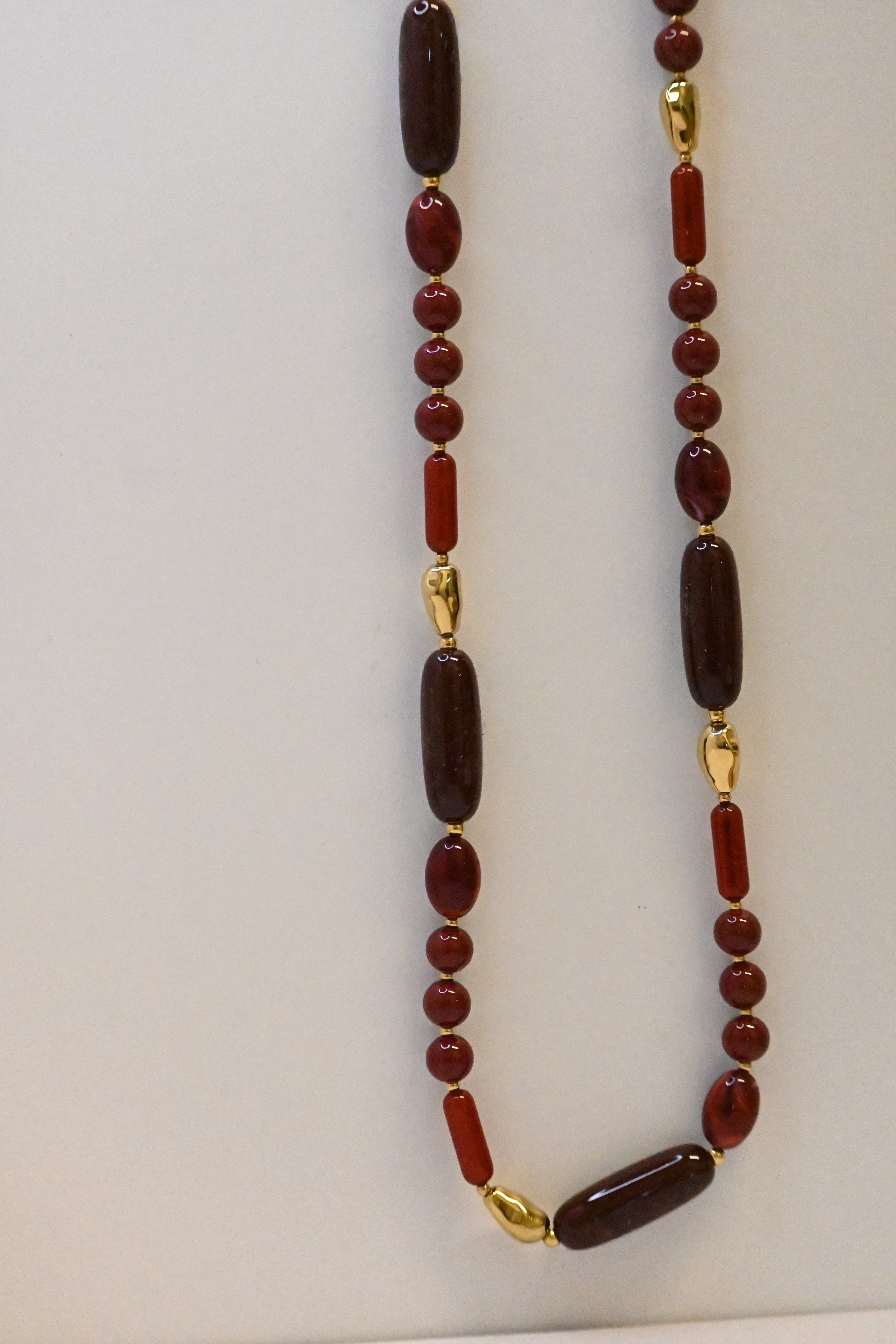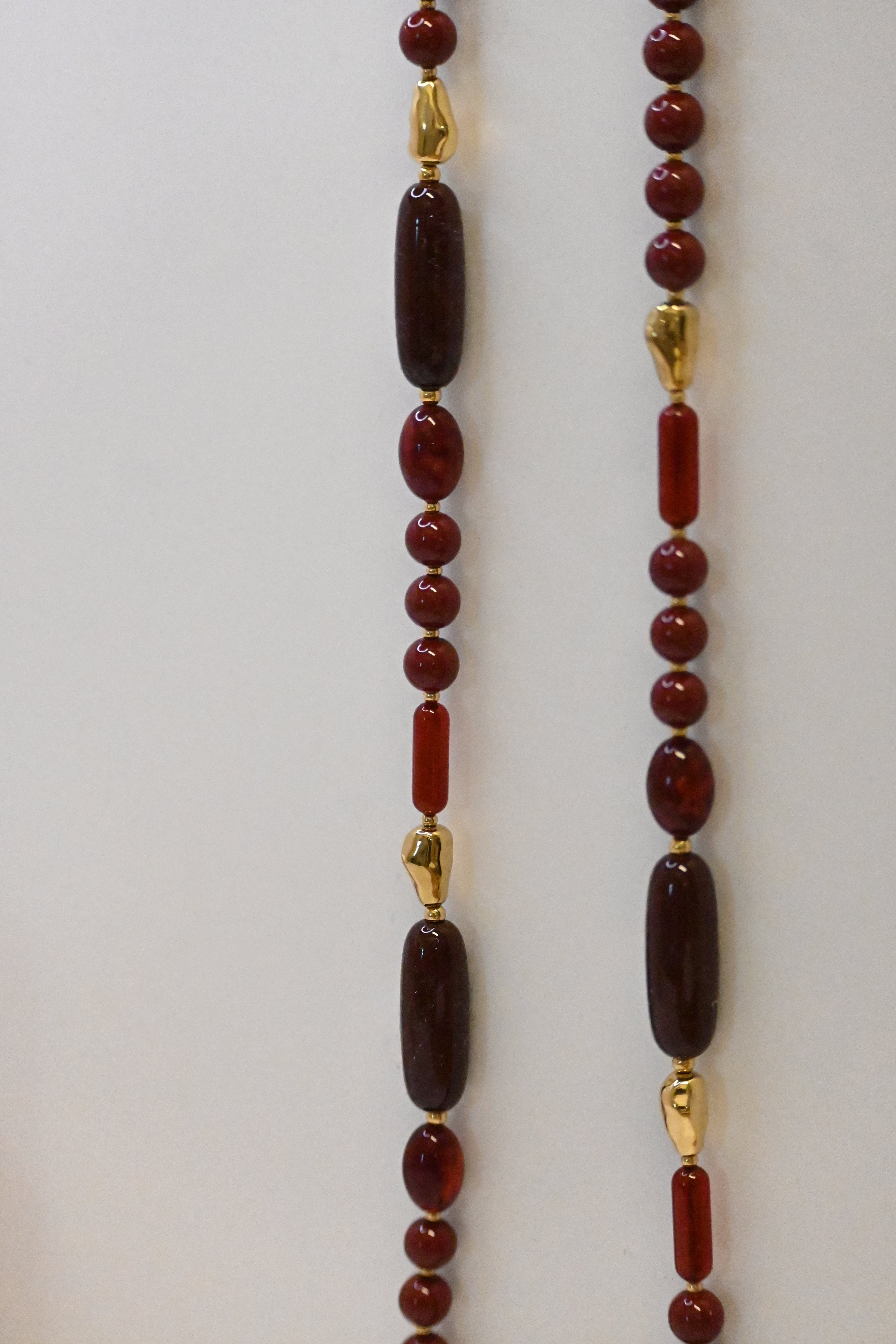 Découvrez le Collier SARA, une pièce élégante qui allie sophistication et polyvalence. Ce long collier aux teintes profondes de bordeaux rouge se distingue par ses perles dorées délicatement intégrées, créant un contraste captivant. Grâce à son système réglable, il s'adapte parfaitement à votre morphologie pour un confort optimal. Une création intemporelle qui transforme instantanément vos tenues, du quotidien aux occasions spéciales.