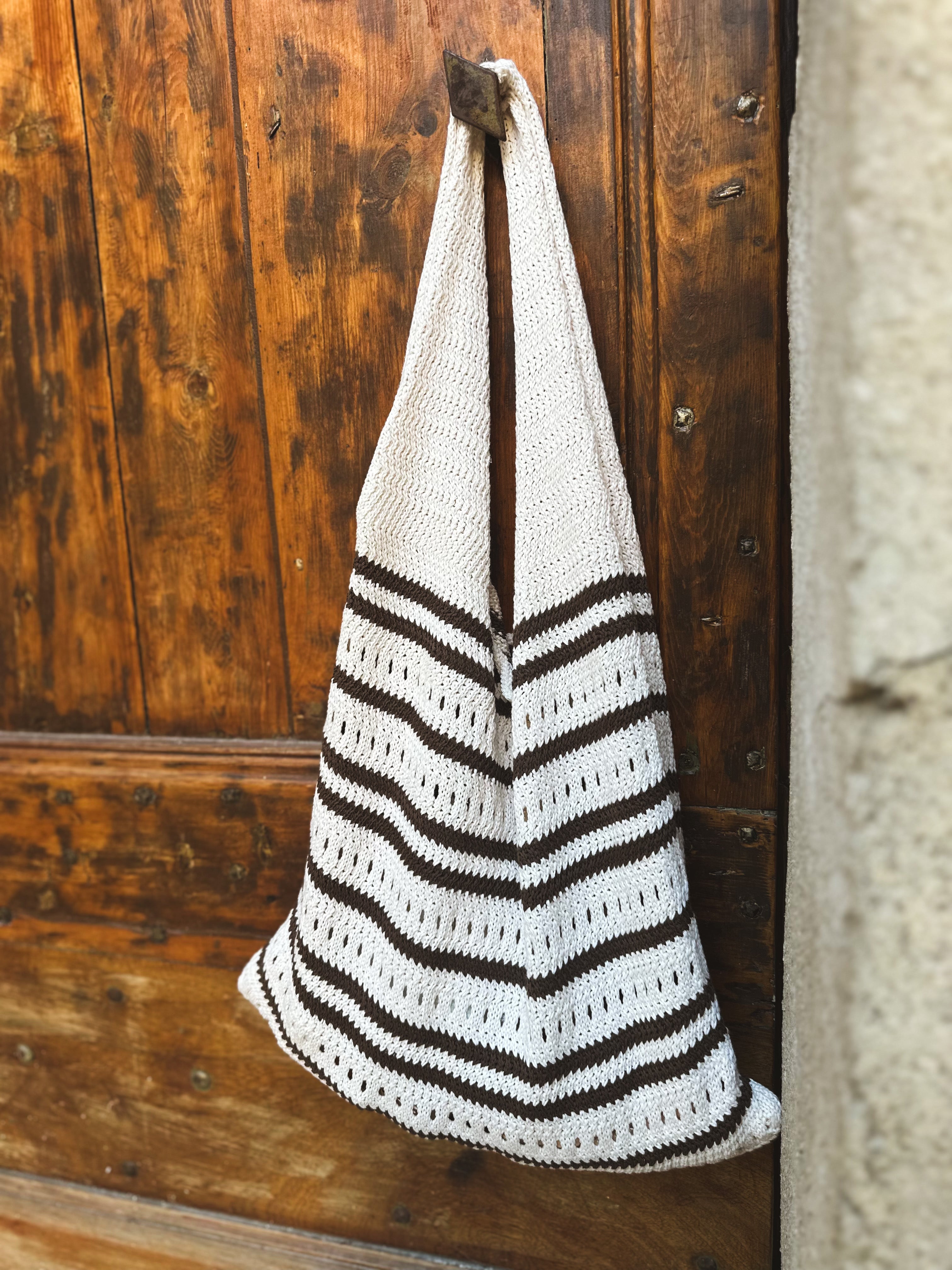 Sac ligné en crochet, disponible en brun ou en noir.