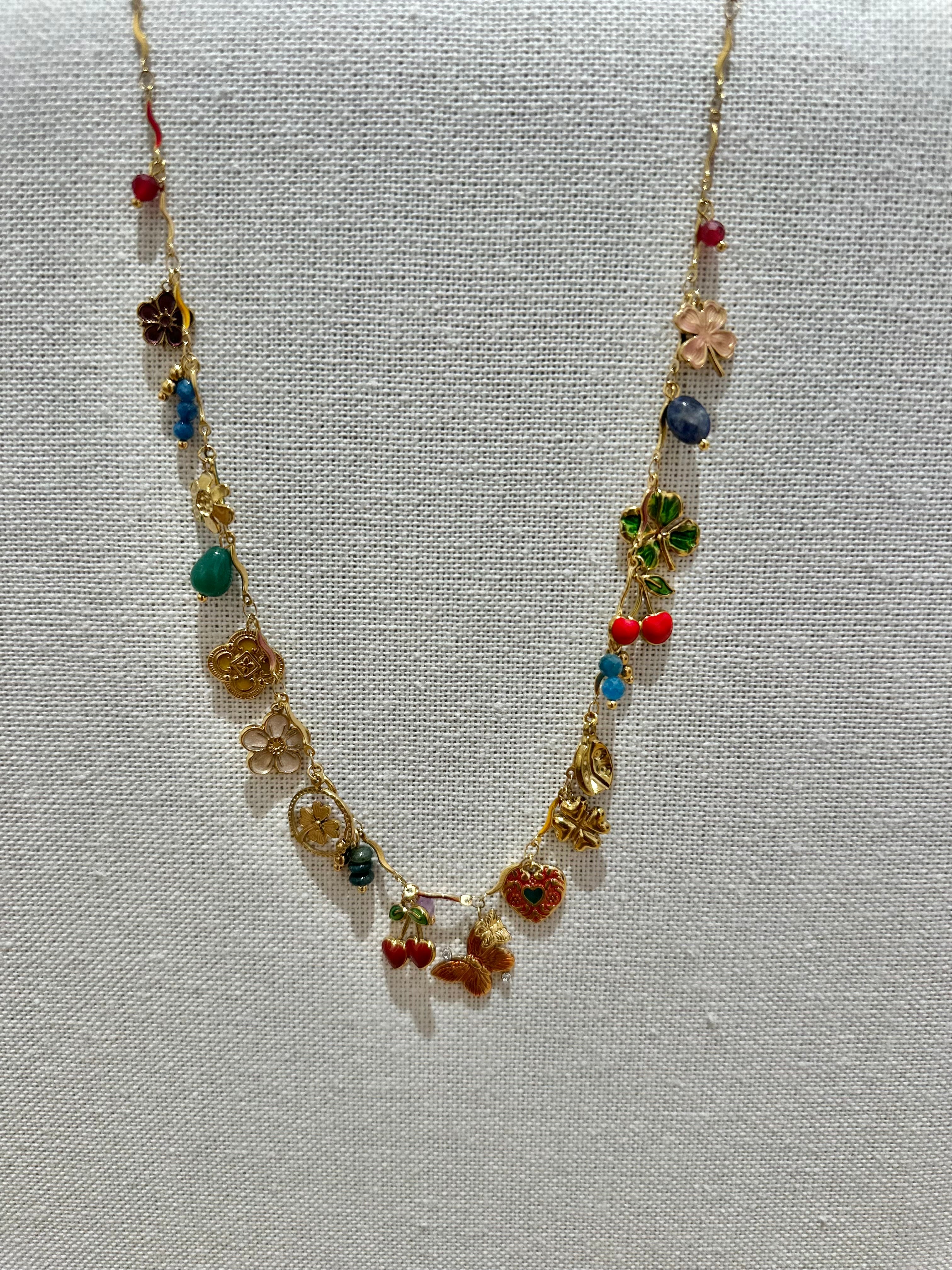 Ce collier court sublime votre style avec un mélange raffiné de breloques dorées et colorées. Monté sur une chaîne dorée, il combine harmonieusement perles et breloques, offrant un look unique et élégant. Son fermoir sécurisé avec chaîne ajustable garantit de pouvoir l'ajuster à votre guise. Fabriqué en acier inoxydable, ce bijou durable est l’accessoire parfait pour rehausser toutes vos tenues.