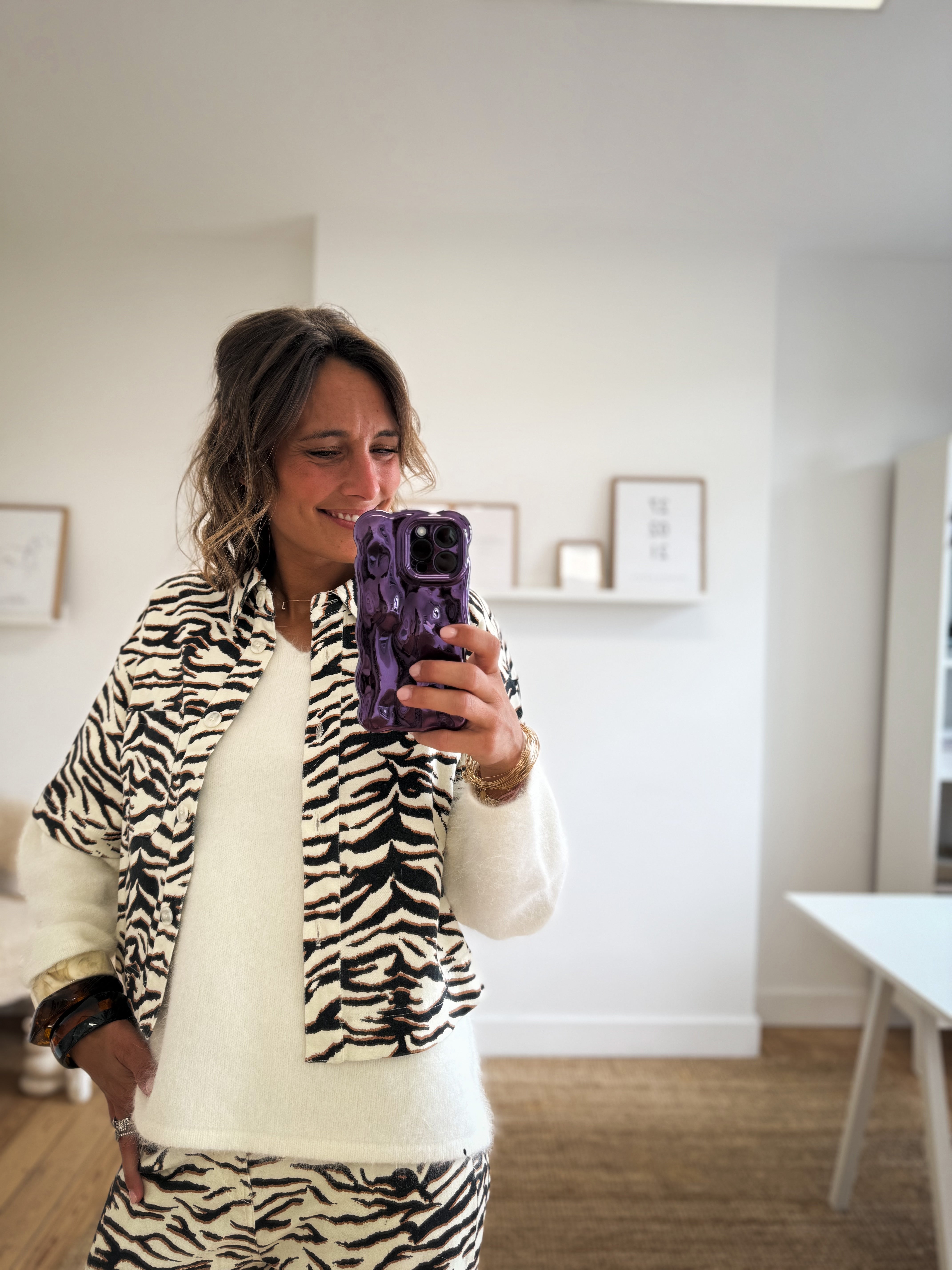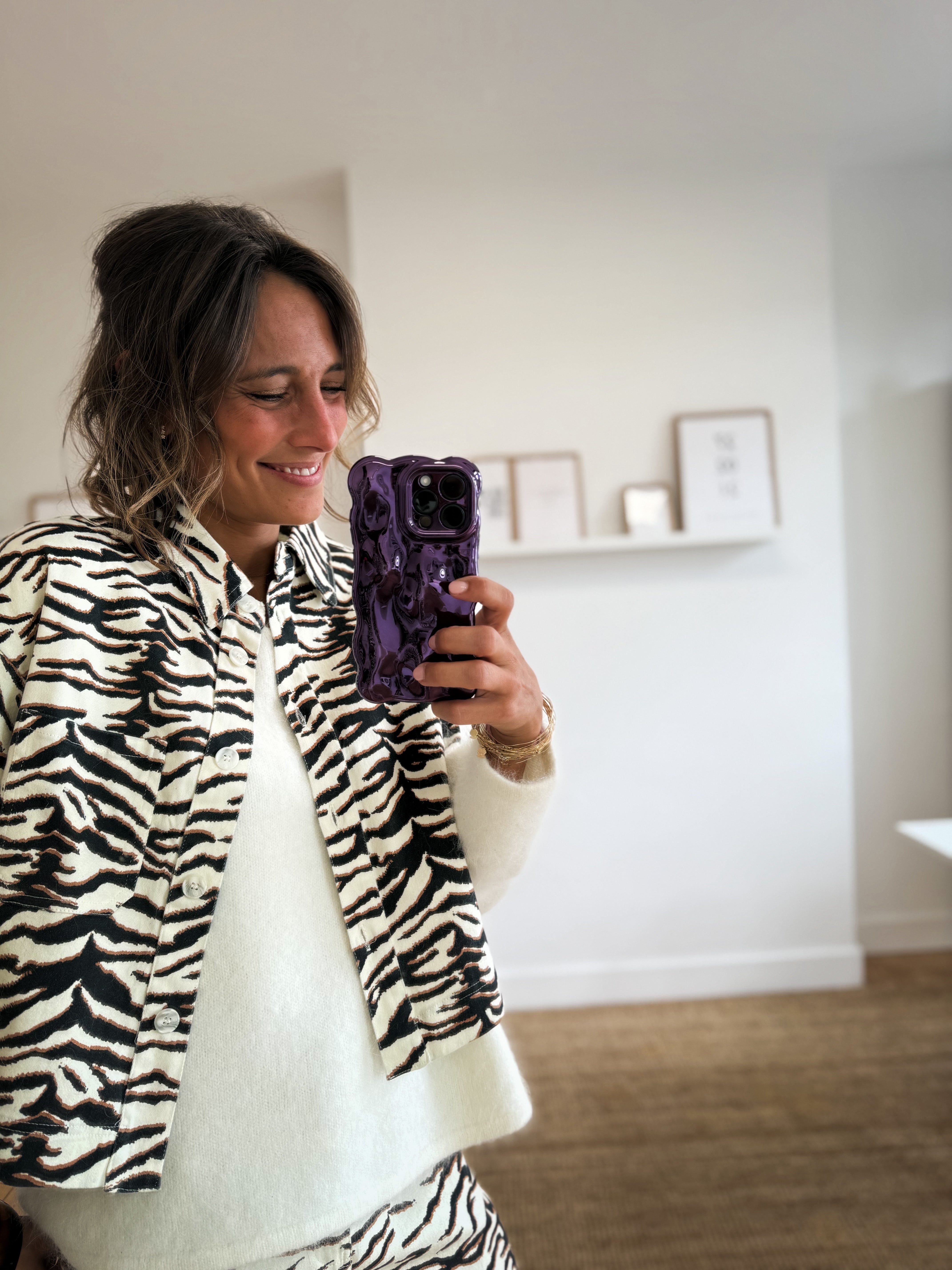 Découvrez notre chemise INA en jean à motif zèbre, proposé en taille S/M ou M/L pour un ajustement parfait. Adoptez un style audacieux et confortable cet été.