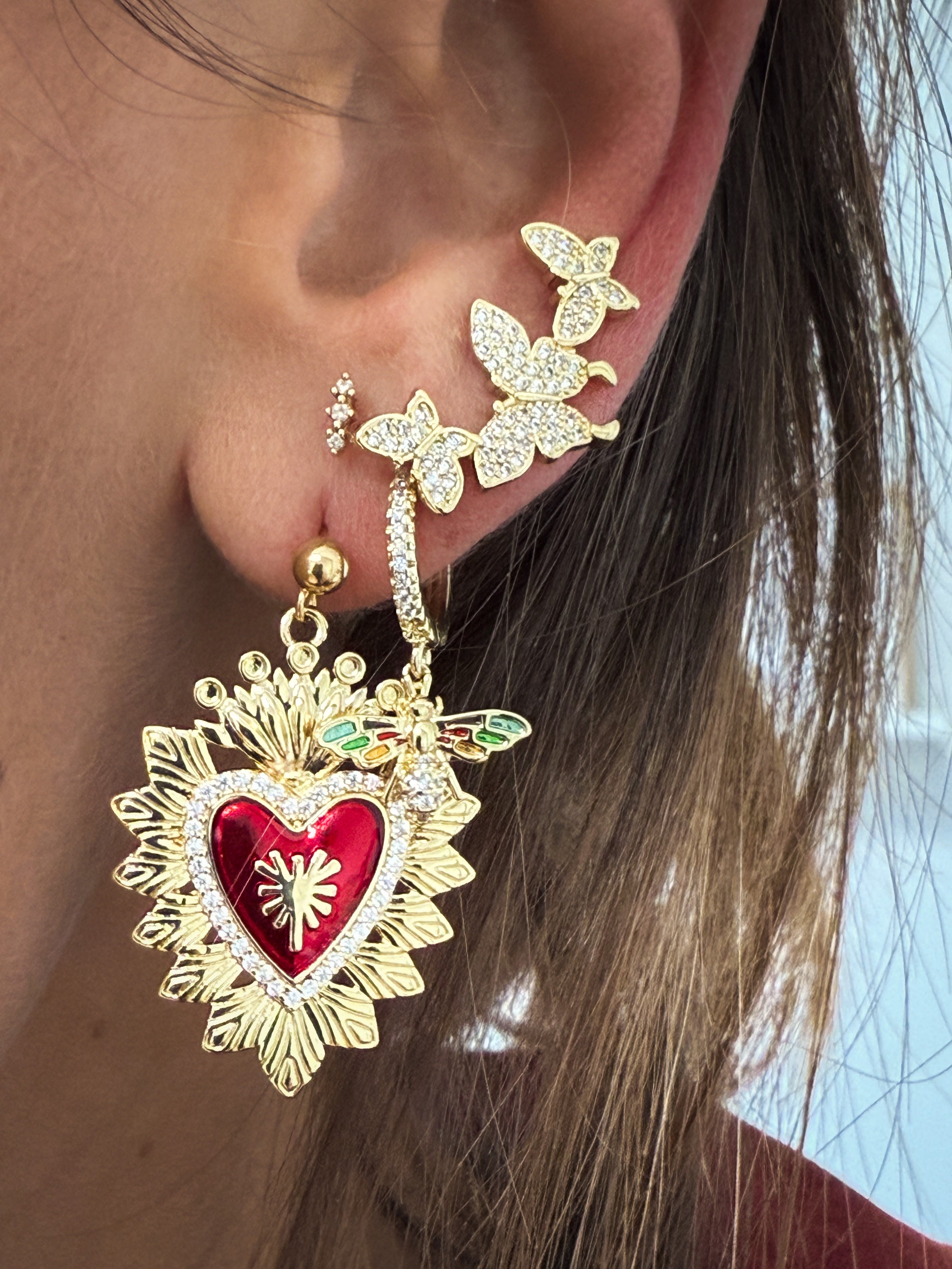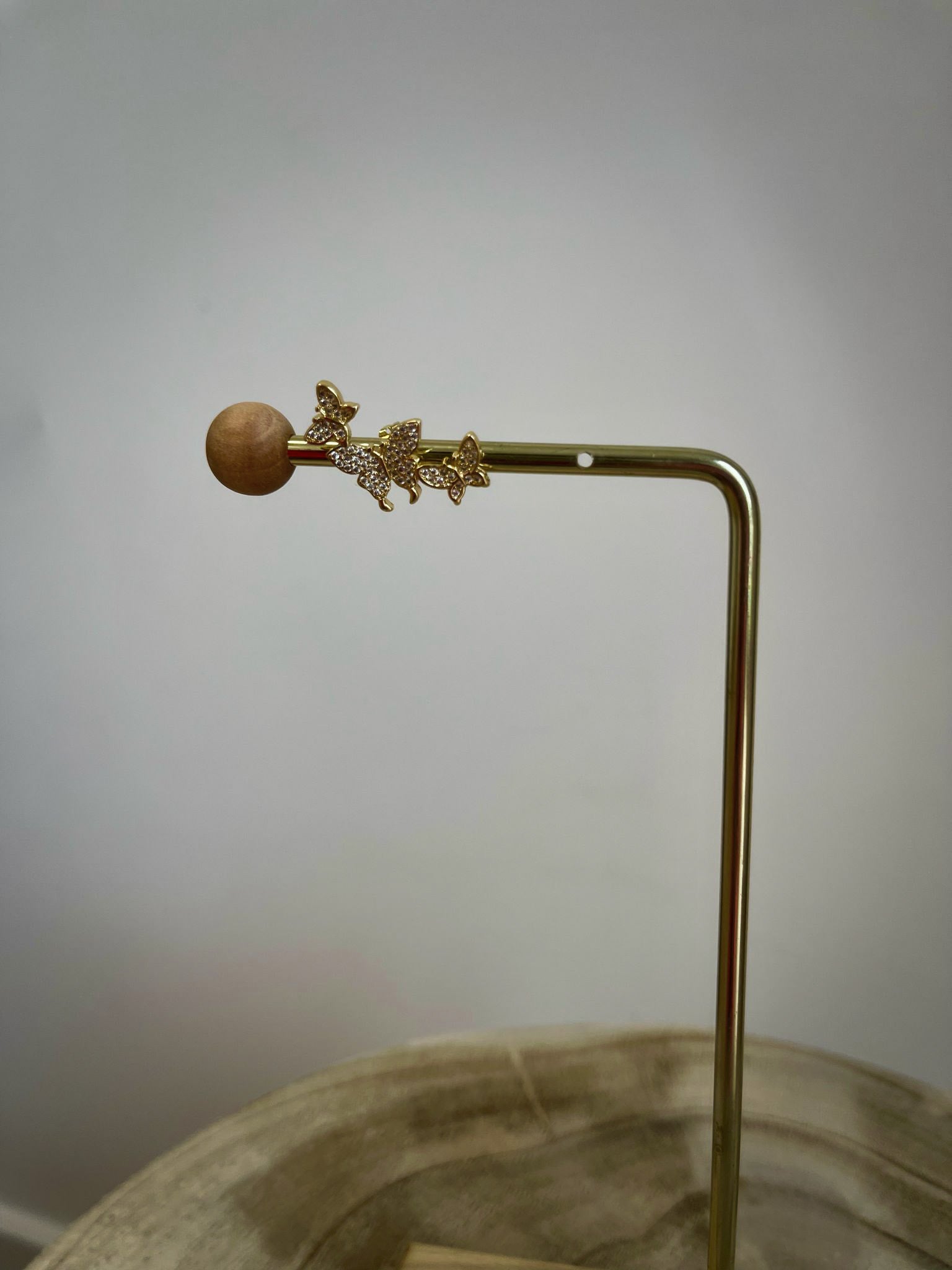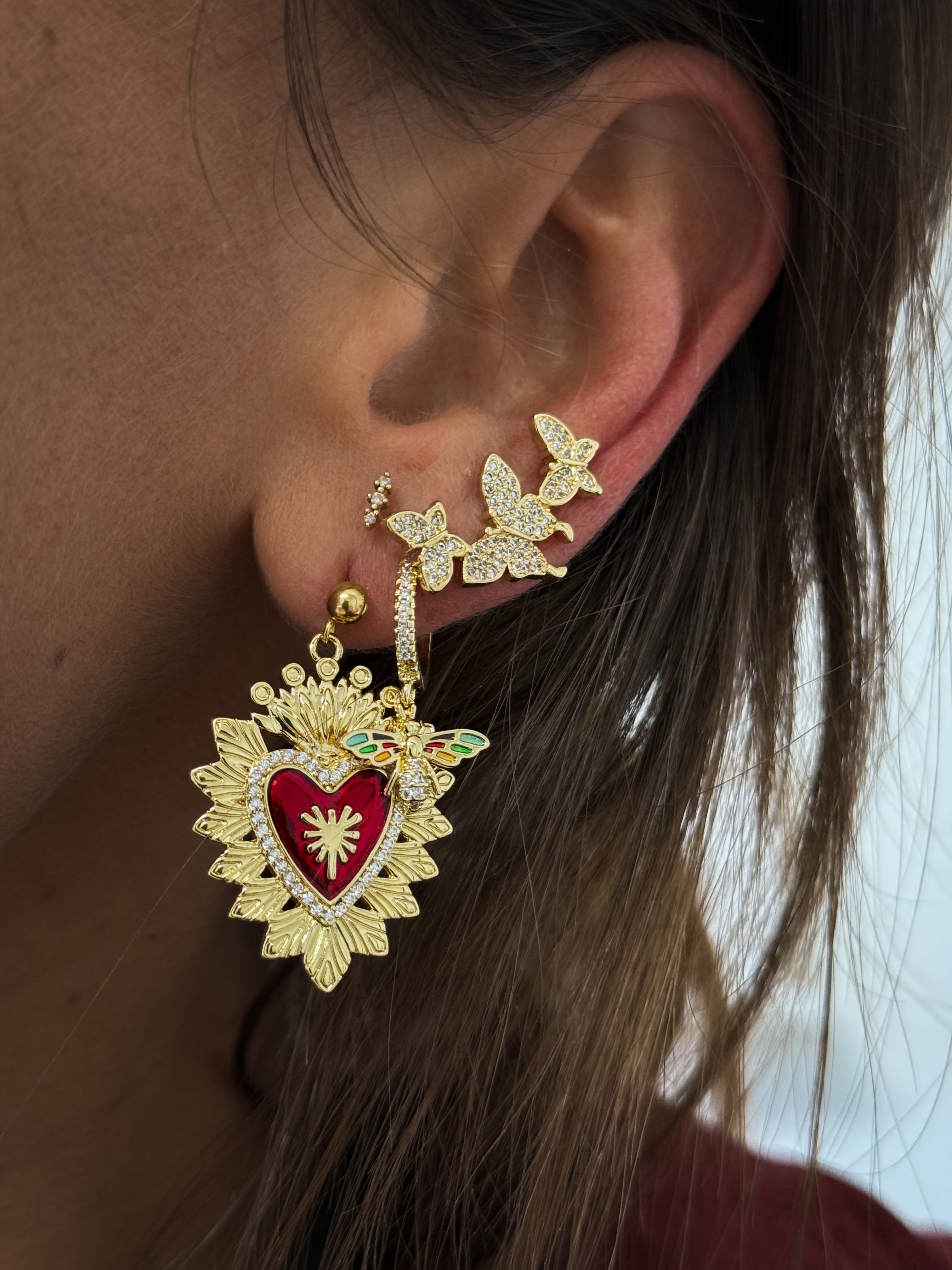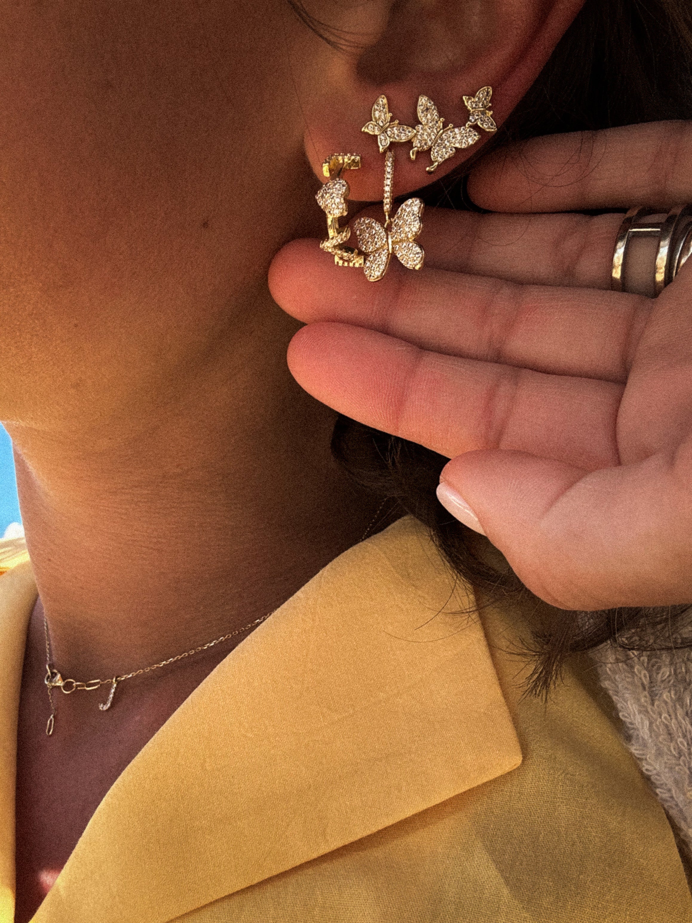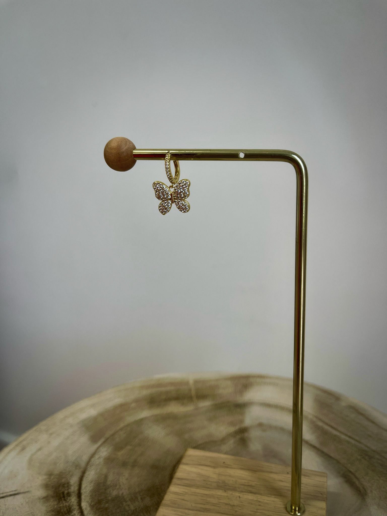 Boucle B : Petit anneau doré et papillon brillant.