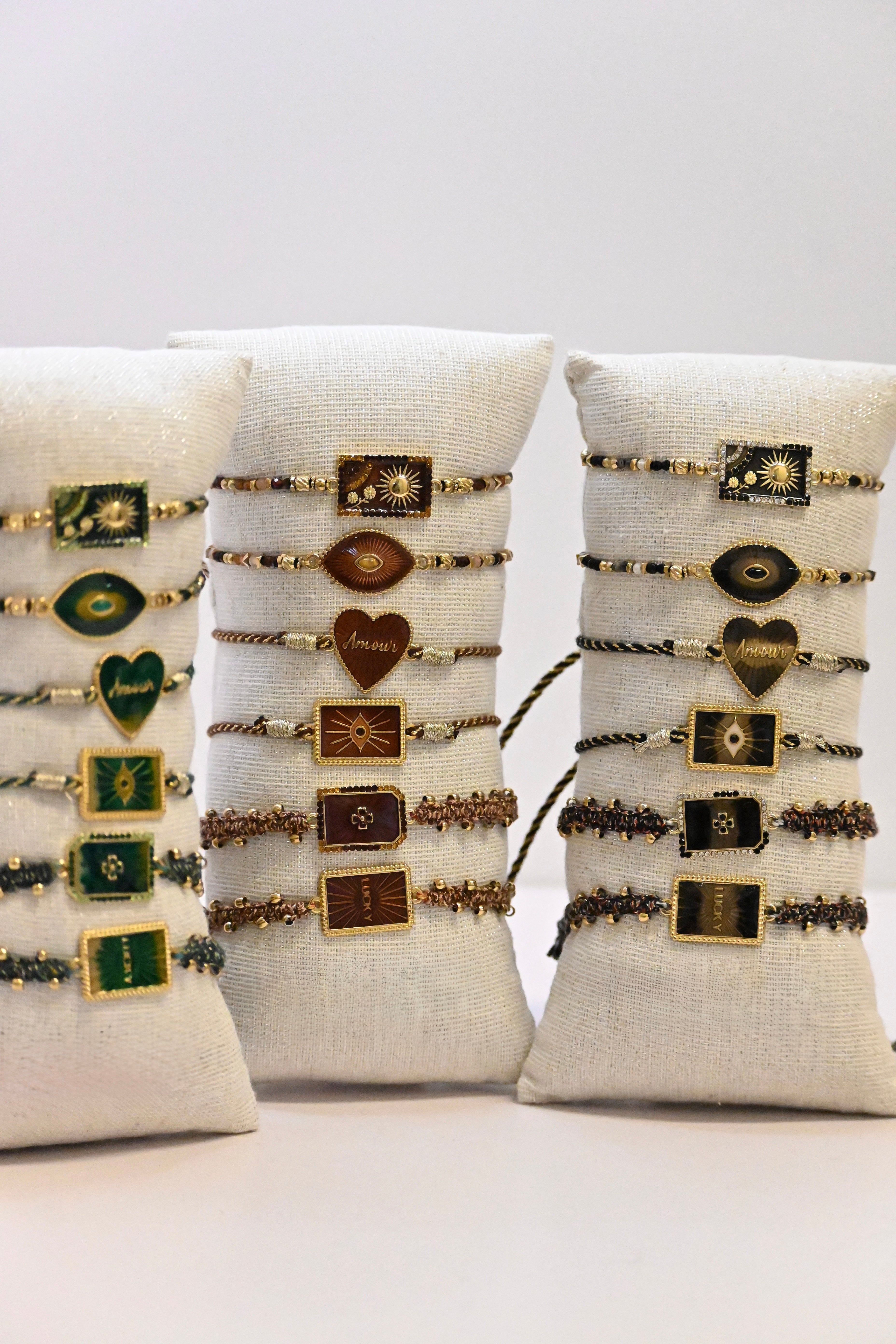Découvrez le Bracelet NINA, l'accessoire polyvalent qui s'adapte à votre style. Ajustable à votre poignet, il combine élégance et flexibilité avec ses plaques disponibles en diverses formes et coloris. Choisissez entre des perles délicates ou un cordon réglable pour créer le look parfait. Un bracelet unique qui évolue avec vos envies et vos tenues.