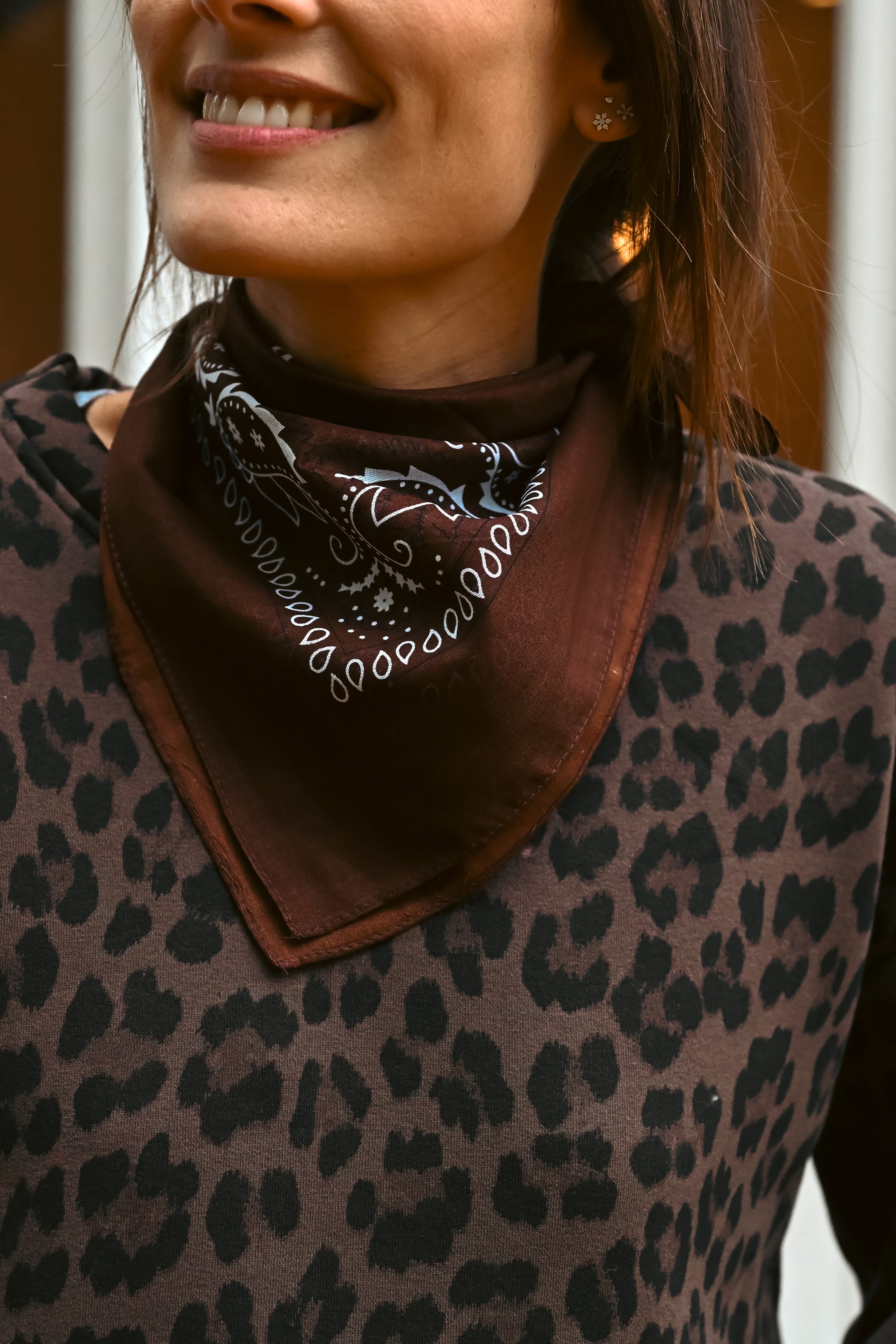 Petit carré de tissu stylé, ce foulard bandana apportera une touche tendance et polyvalente à toutes vos tenues.