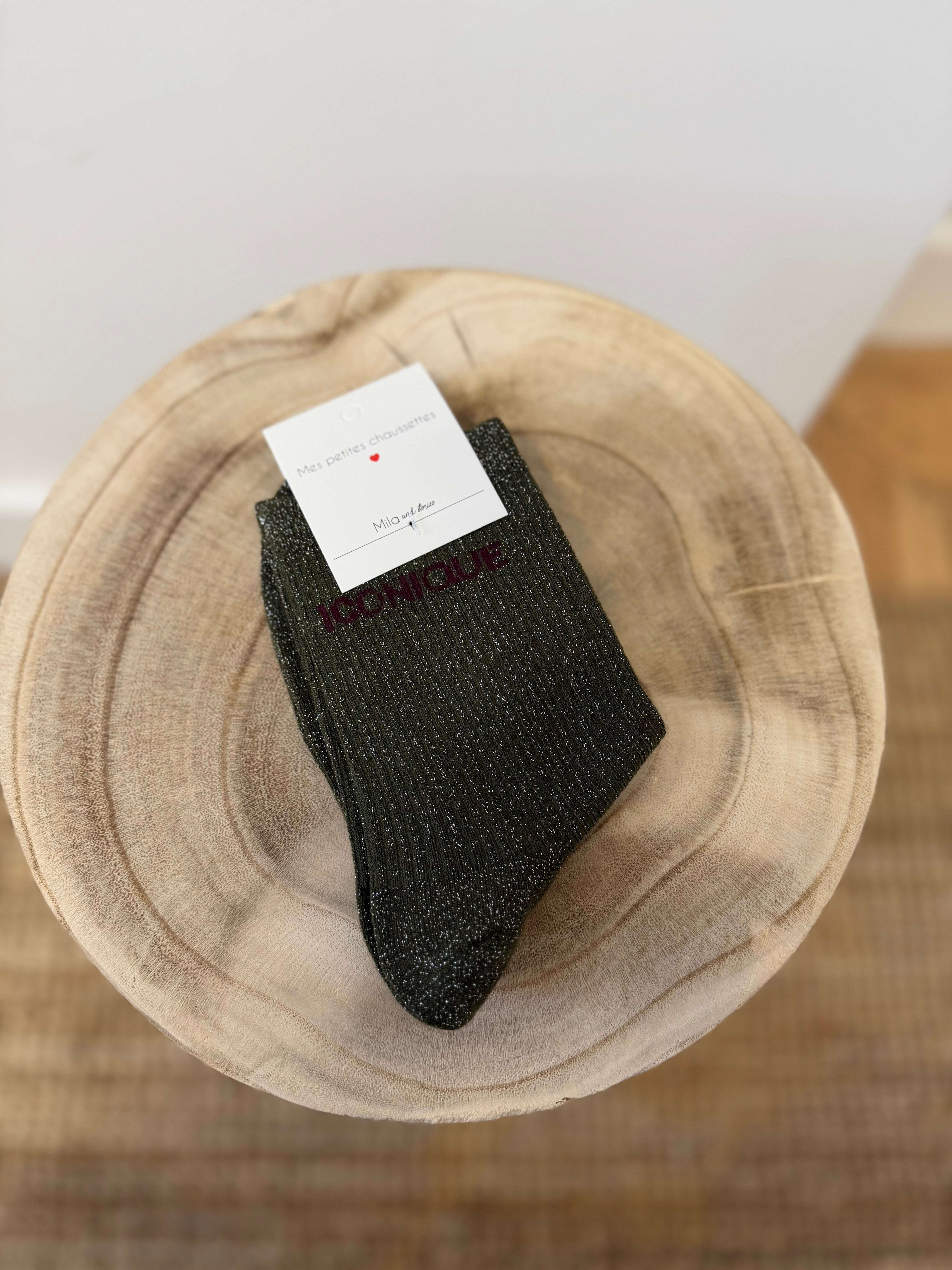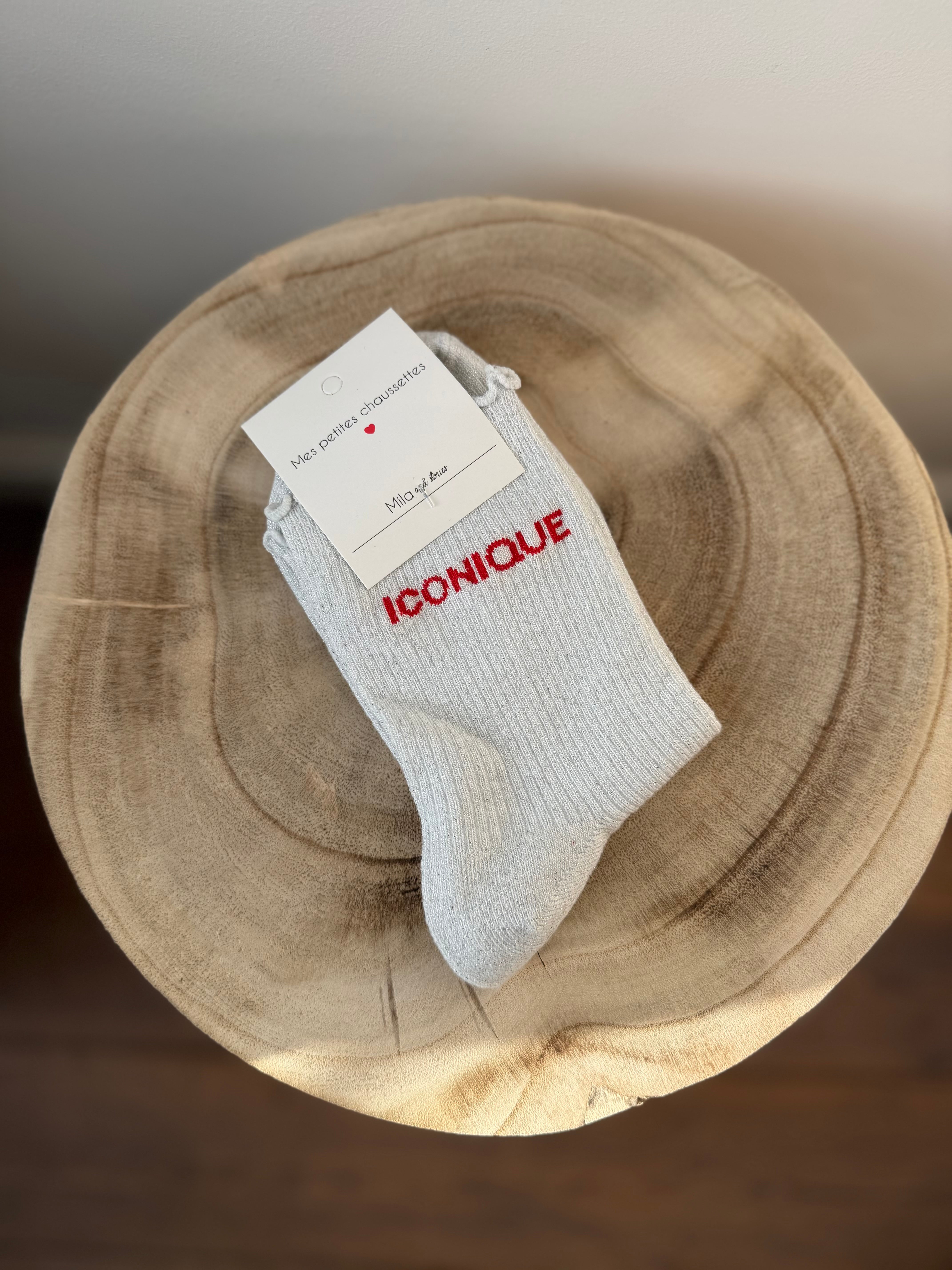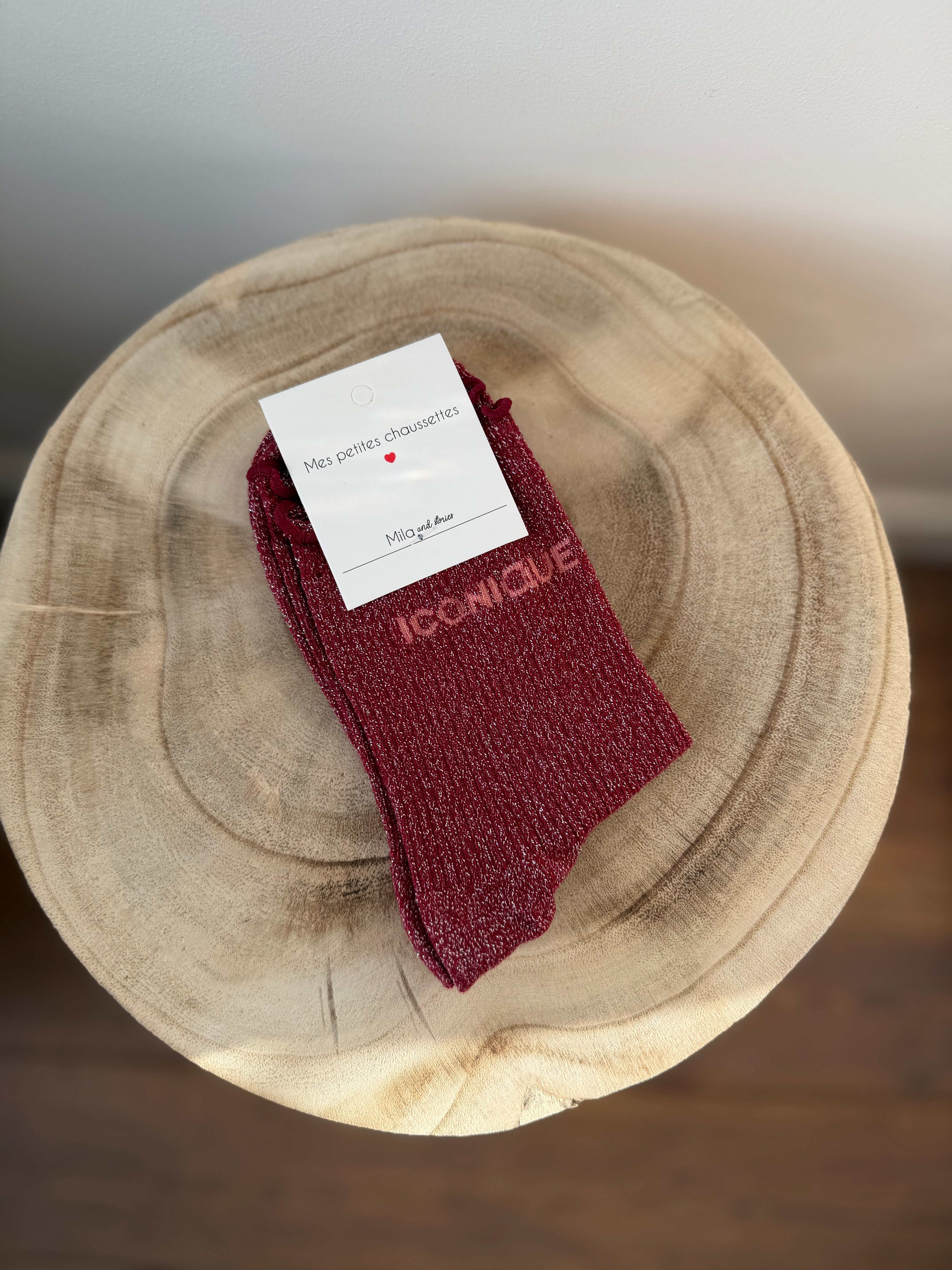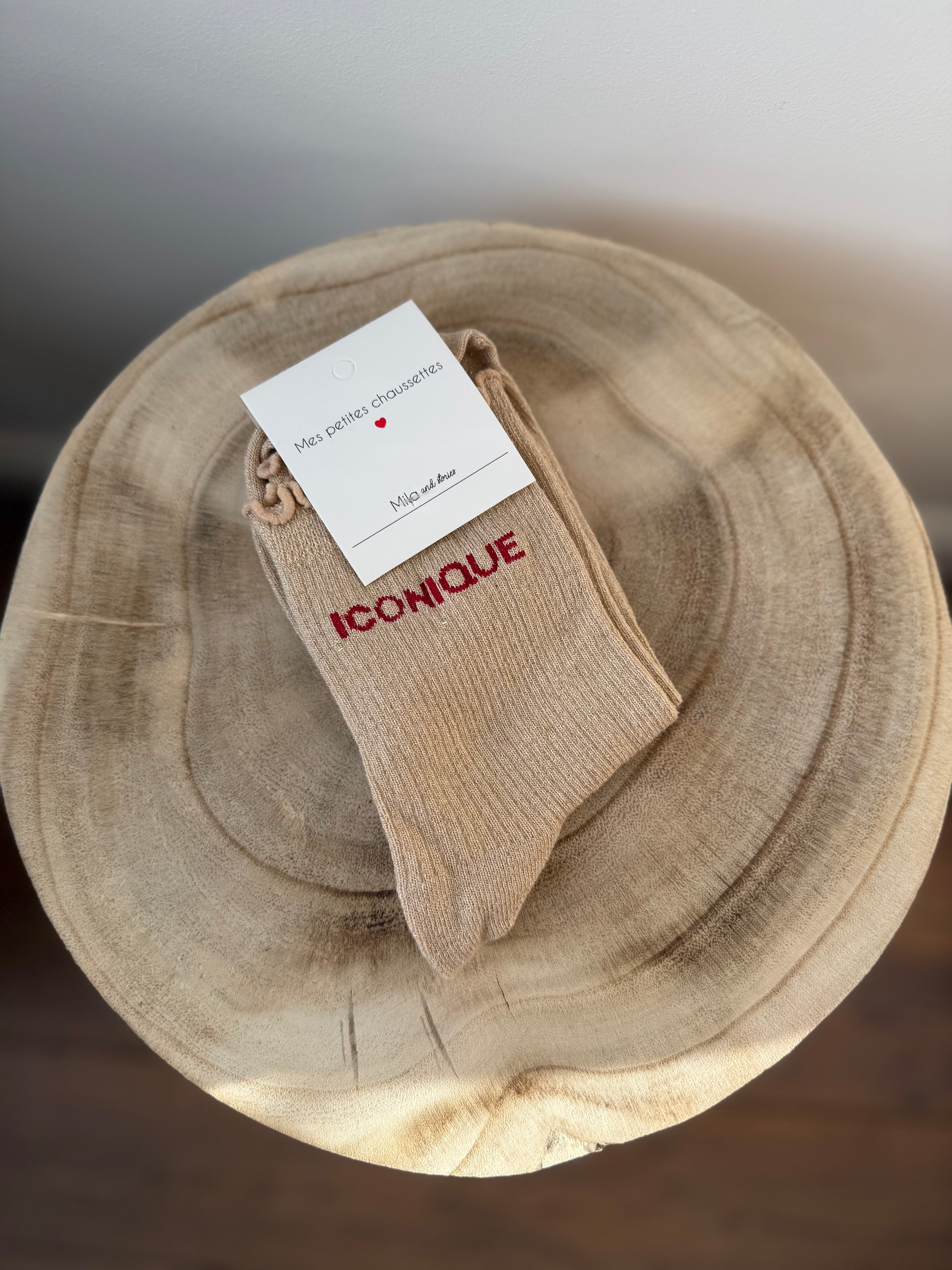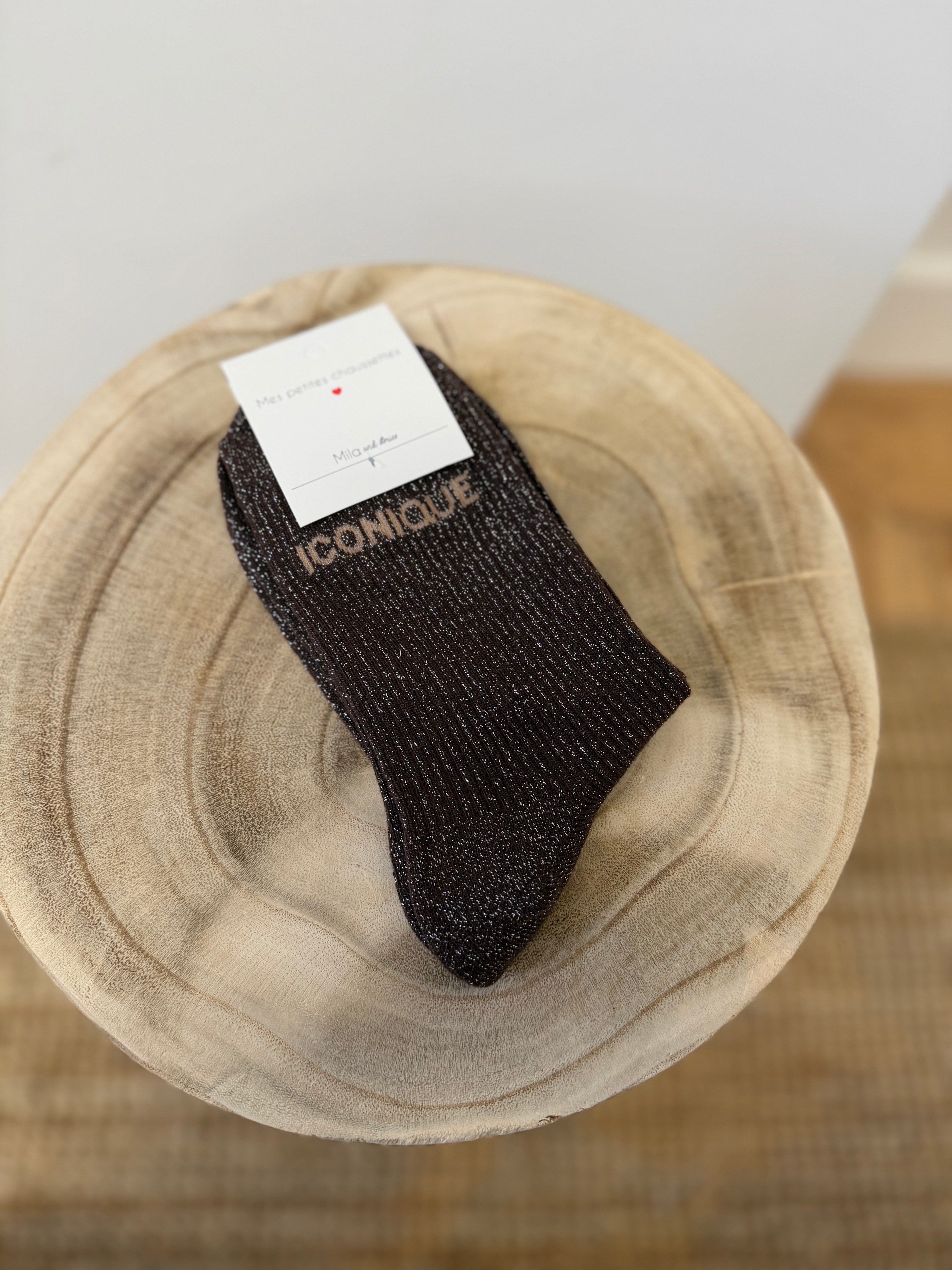 Ces chaussettes scintillantes arborent l’inscription "Iconique" et sont proposées en taille unique, adaptée du 36 au 40. Apportez une touche d’éclat à votre style avec ce modèle incontournable.
