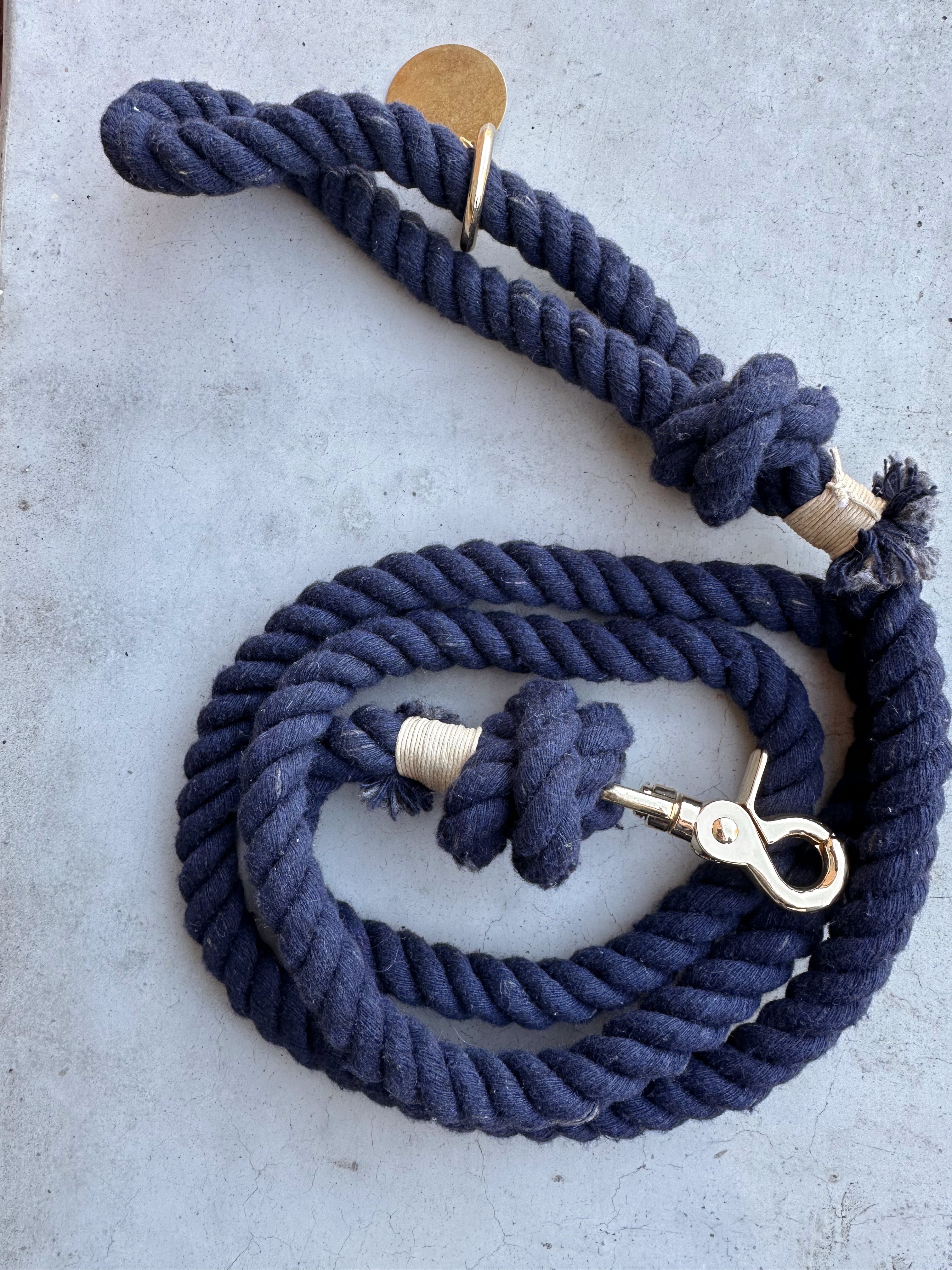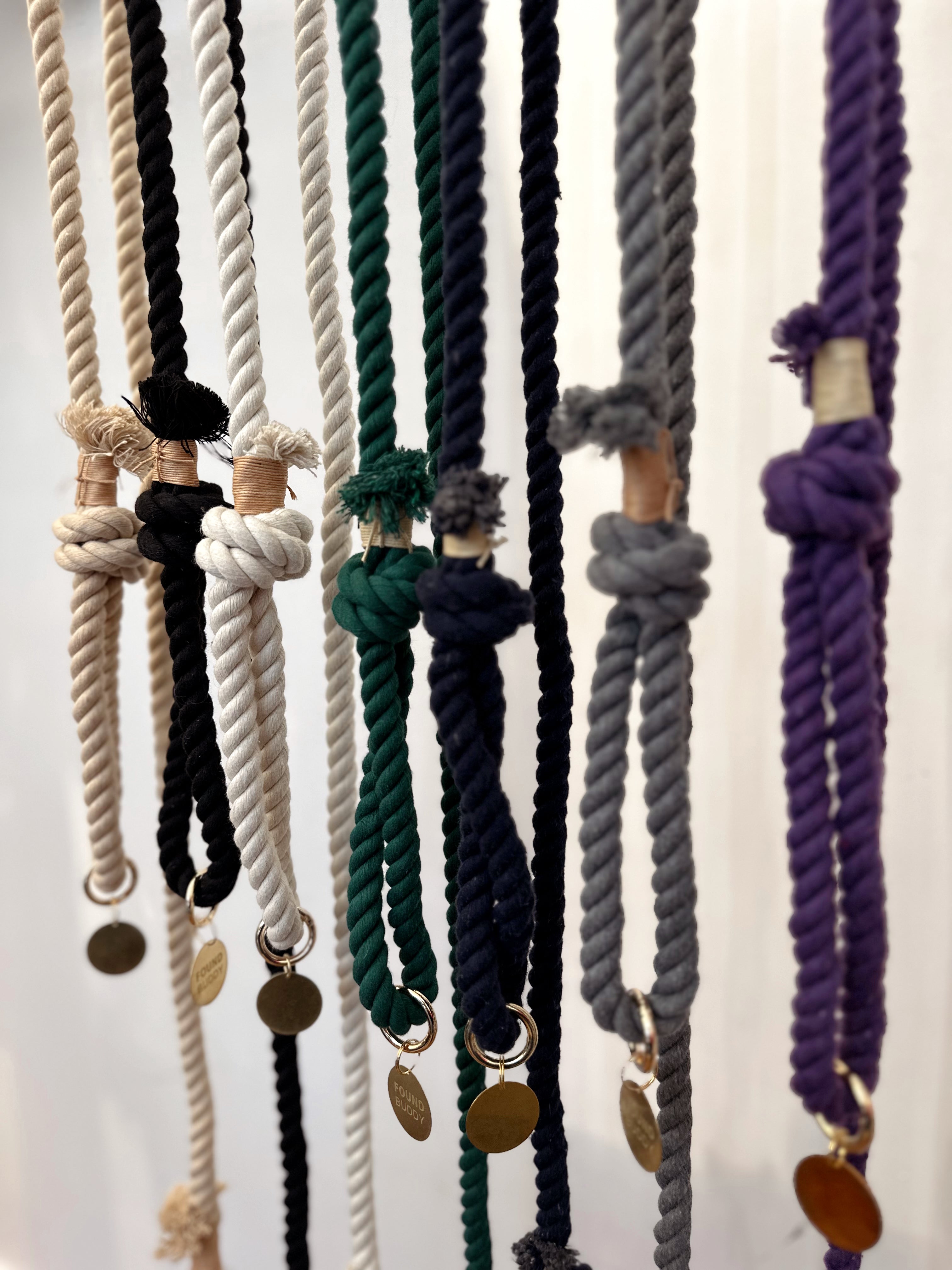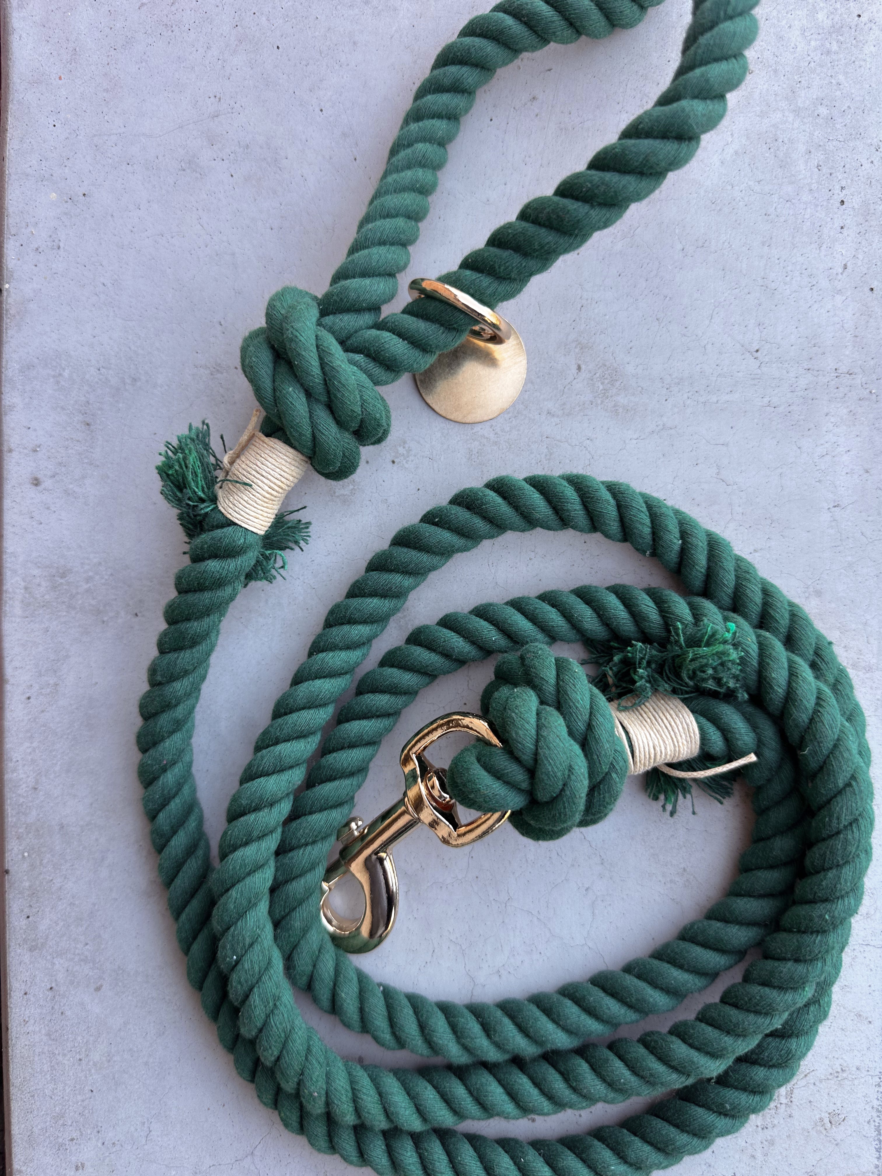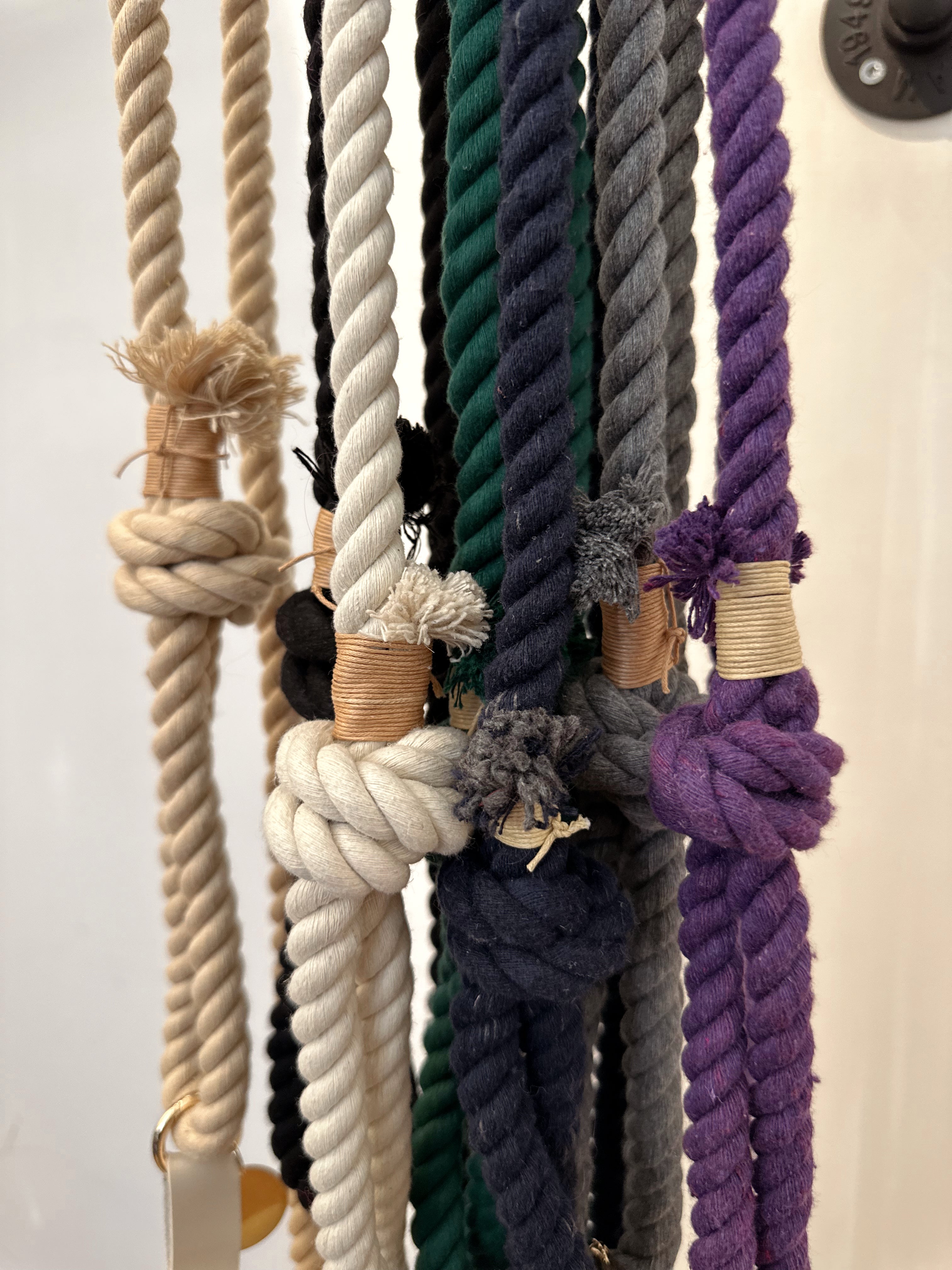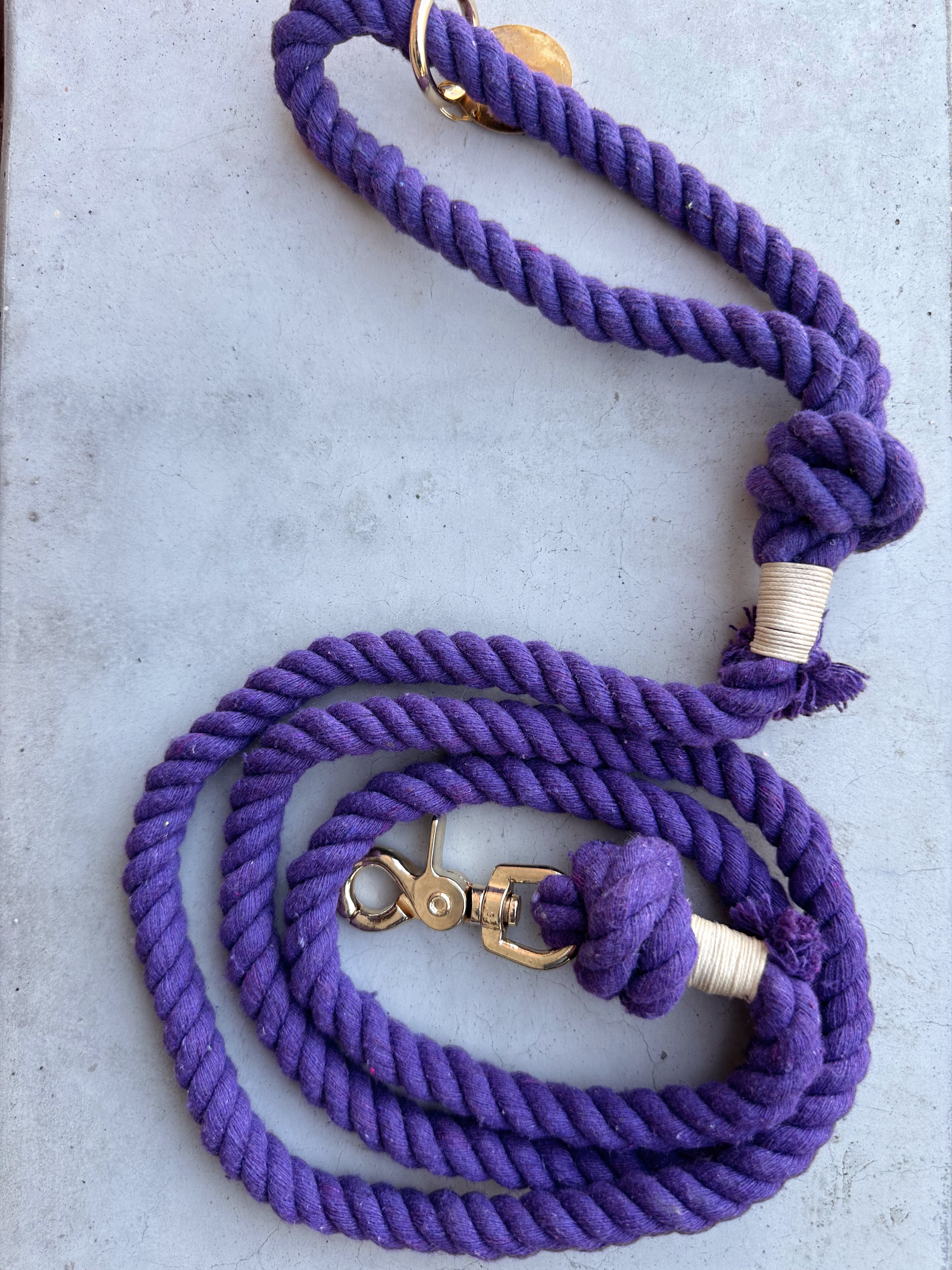 Laisse pour chien disponible en beige, gris, camel, vert, noir, bleu marine et mauve. La fermeture et le mousqueton sont dorés.
