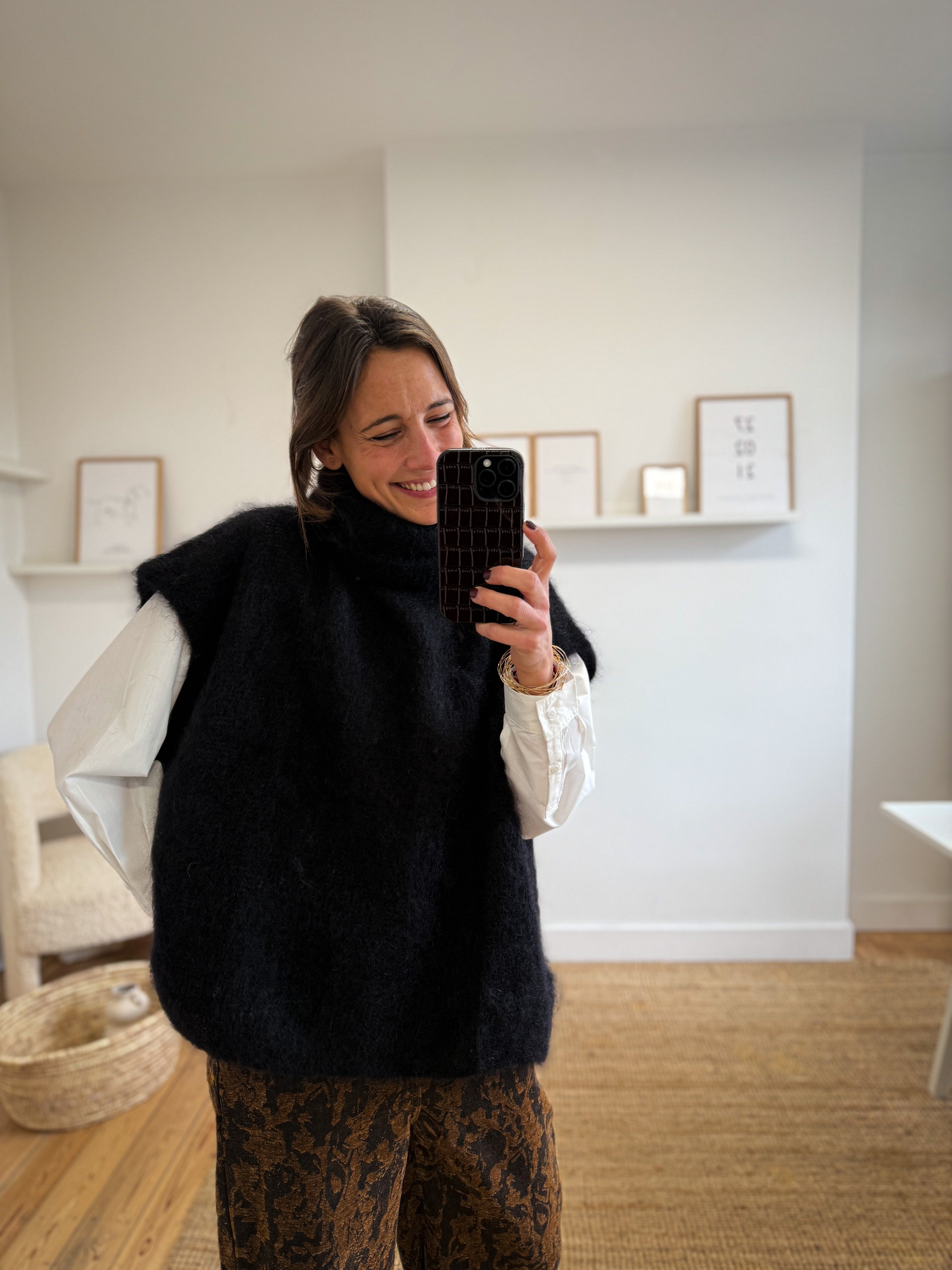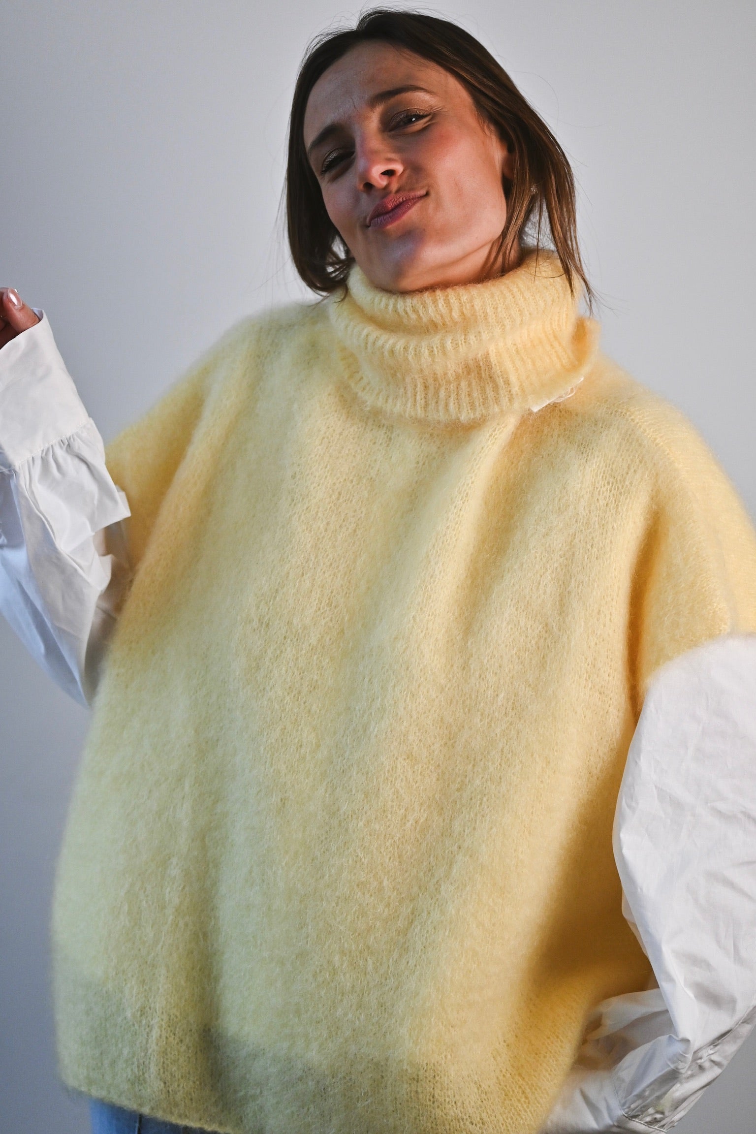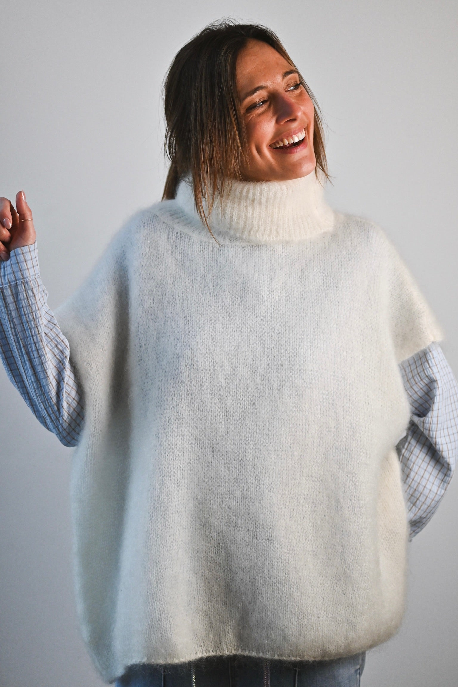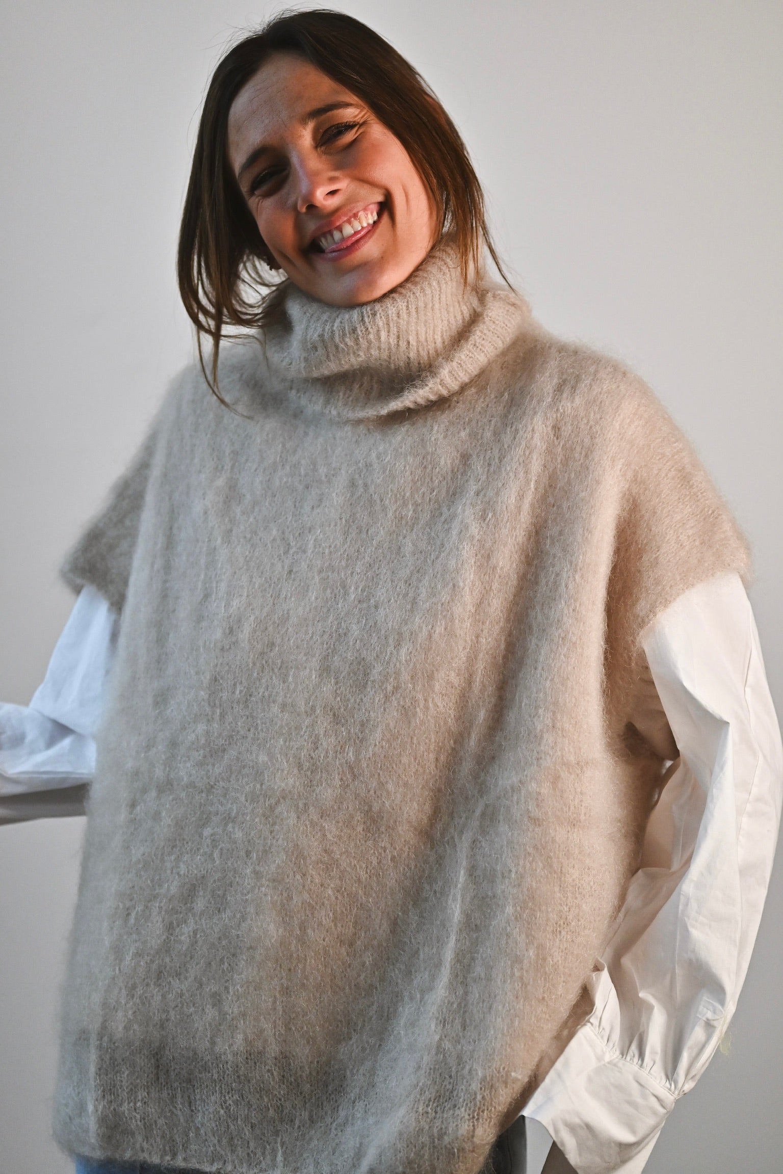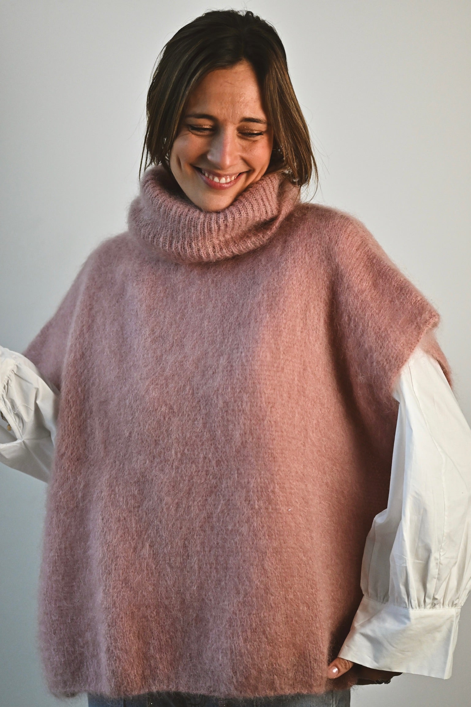 Composition : 80% kid mohair, 17% polyamide et 3% élasthanne. Nous vous conseillons de le laver à la main.