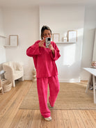 Découvrez l'Ensemble LIMA, le confort ultime en velours doux. Manches longues et pantalon ample avec taille élastiquée pour un ajustement parfait sur toutes les morphologies. Taille unique, plusieurs coloris disponibles. Style intemporel et praticité garantis.