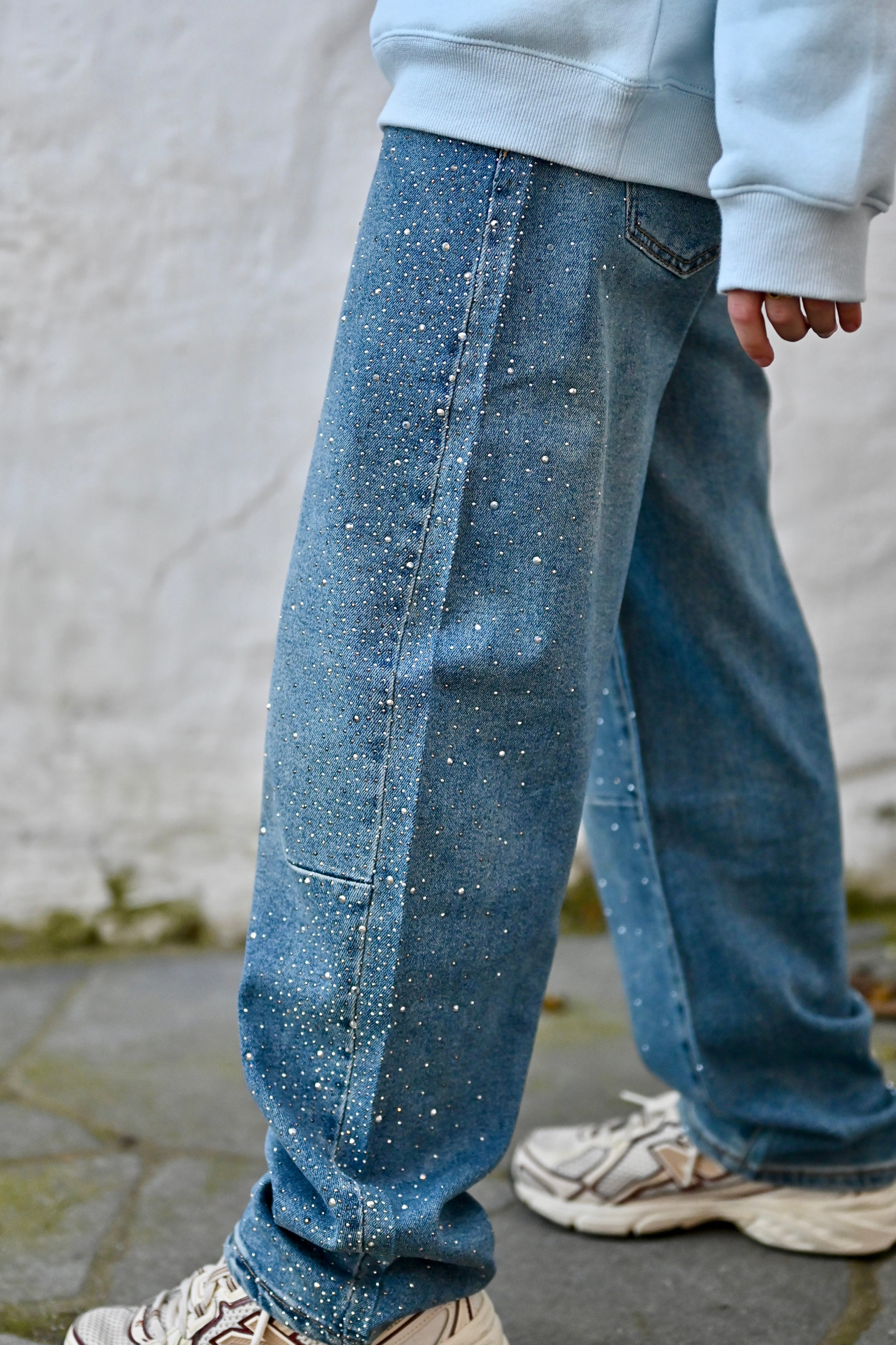 Découvrez le Pantalon mini MANON, le jean barrel parfait pour les enfants qui aiment briller. Avec ses paillettes scintillantes et sa coupe tendance, il plaît aux petits comme aux grands. Disponible de 4 à 14 ans, c'est le basique incontournable de la garde-robe enfant.