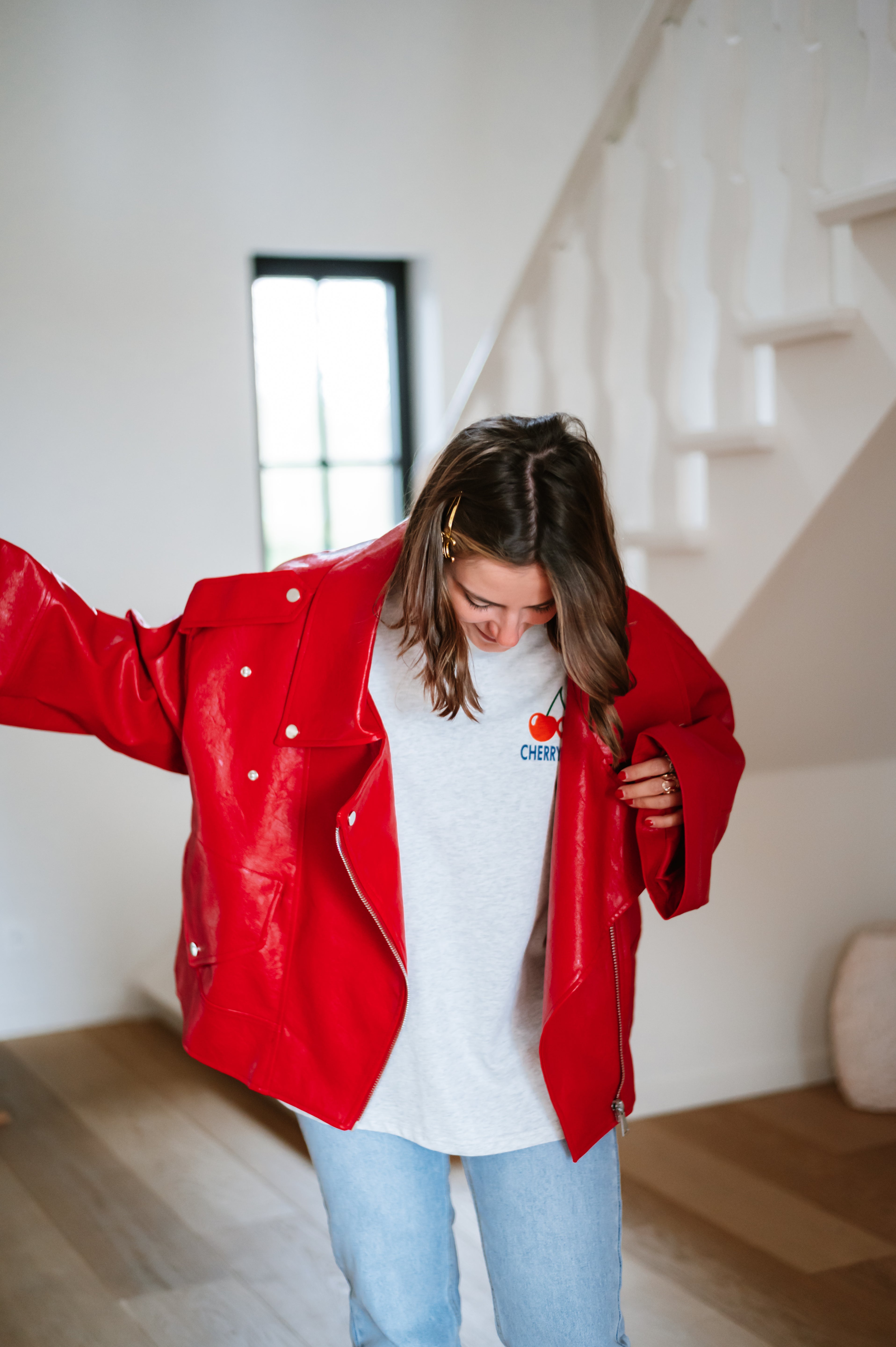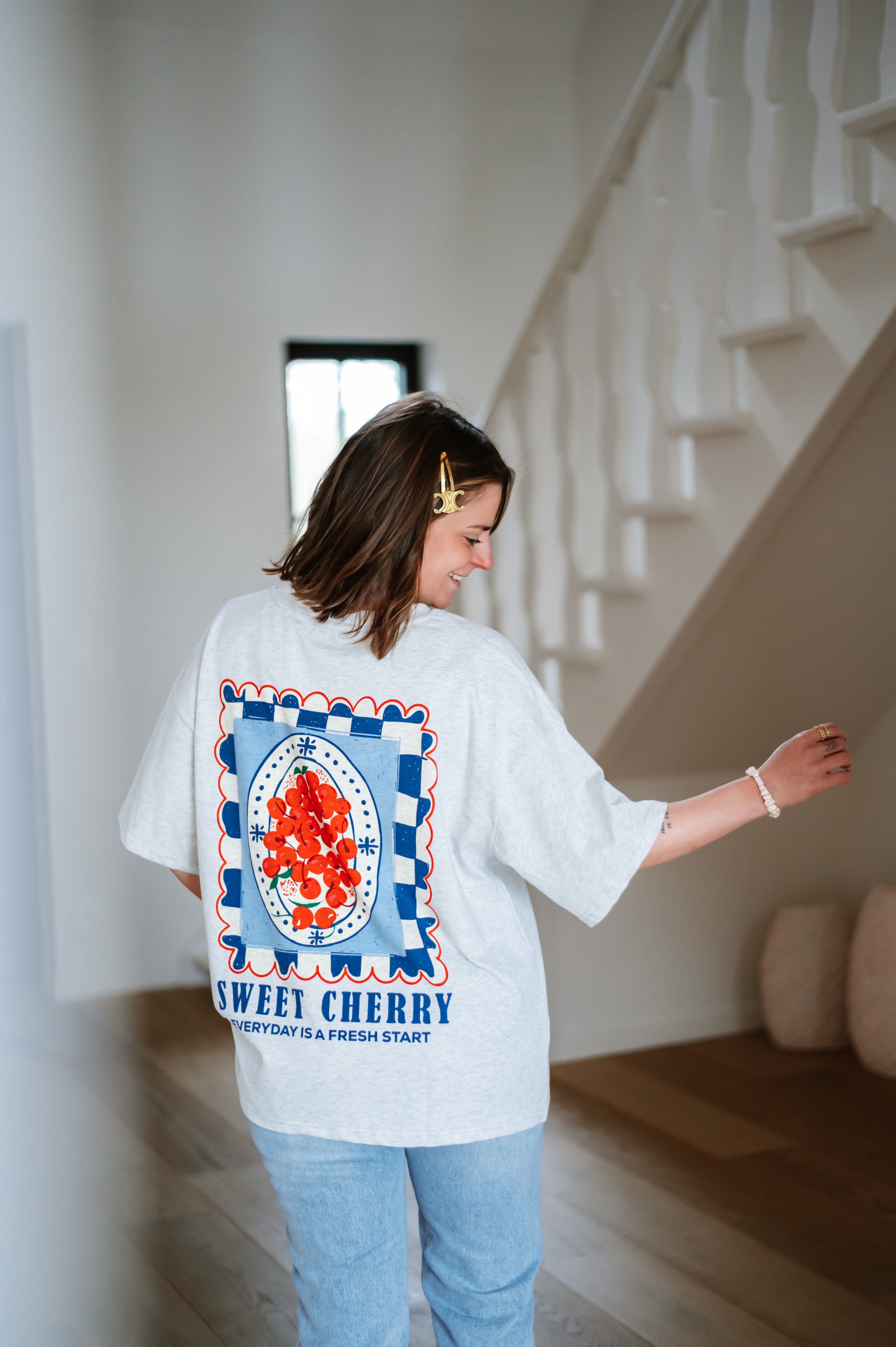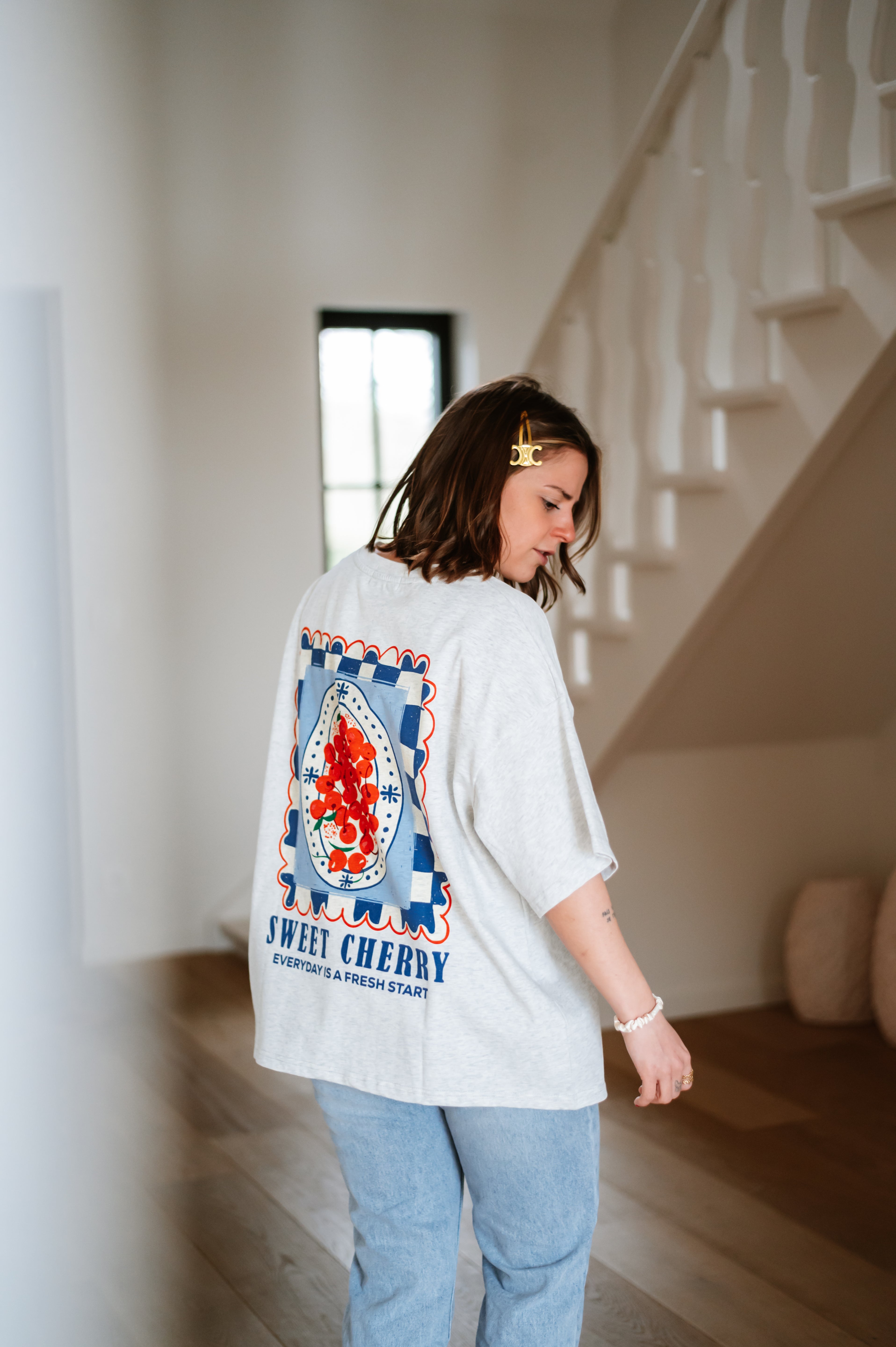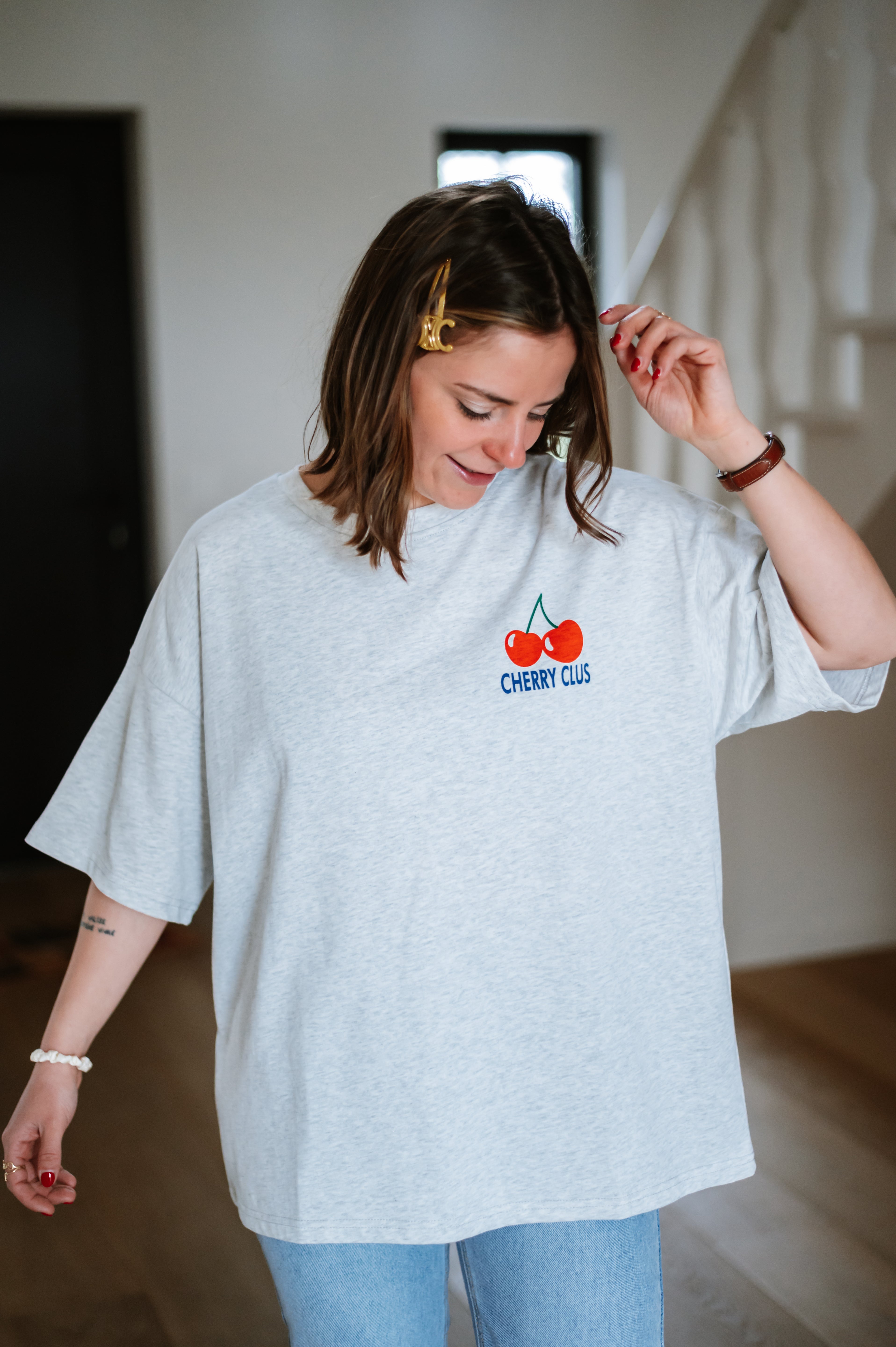 T-shirt gris CHERRY avec design imprimé avant et arrière. Coupe unique, parfait pour un look casual et tendance. Matière confortable pour un port quotidien.