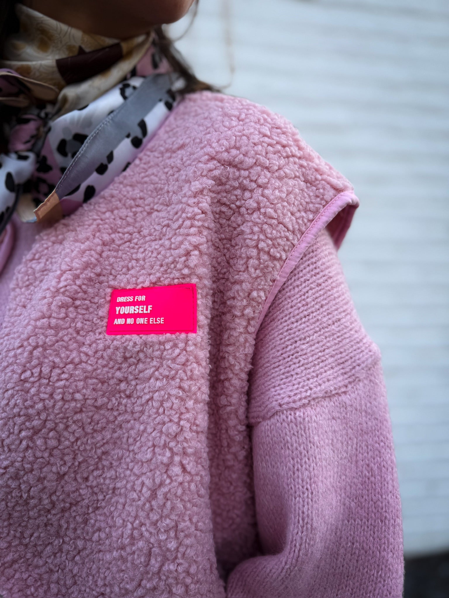 Découvrez la Veste CONSTANCE, votre allié cosy pour les jours frais. Cette polaire sans manche en moumoute rose épousera vos épaules avec douceur et légèreté. Coupe unique adaptée à tous, elle se glisse facilement sur vos tenues préférées pour un confort immédiat. L'accessoire parfait pour rester au chaud sans surcharger votre silhouette.