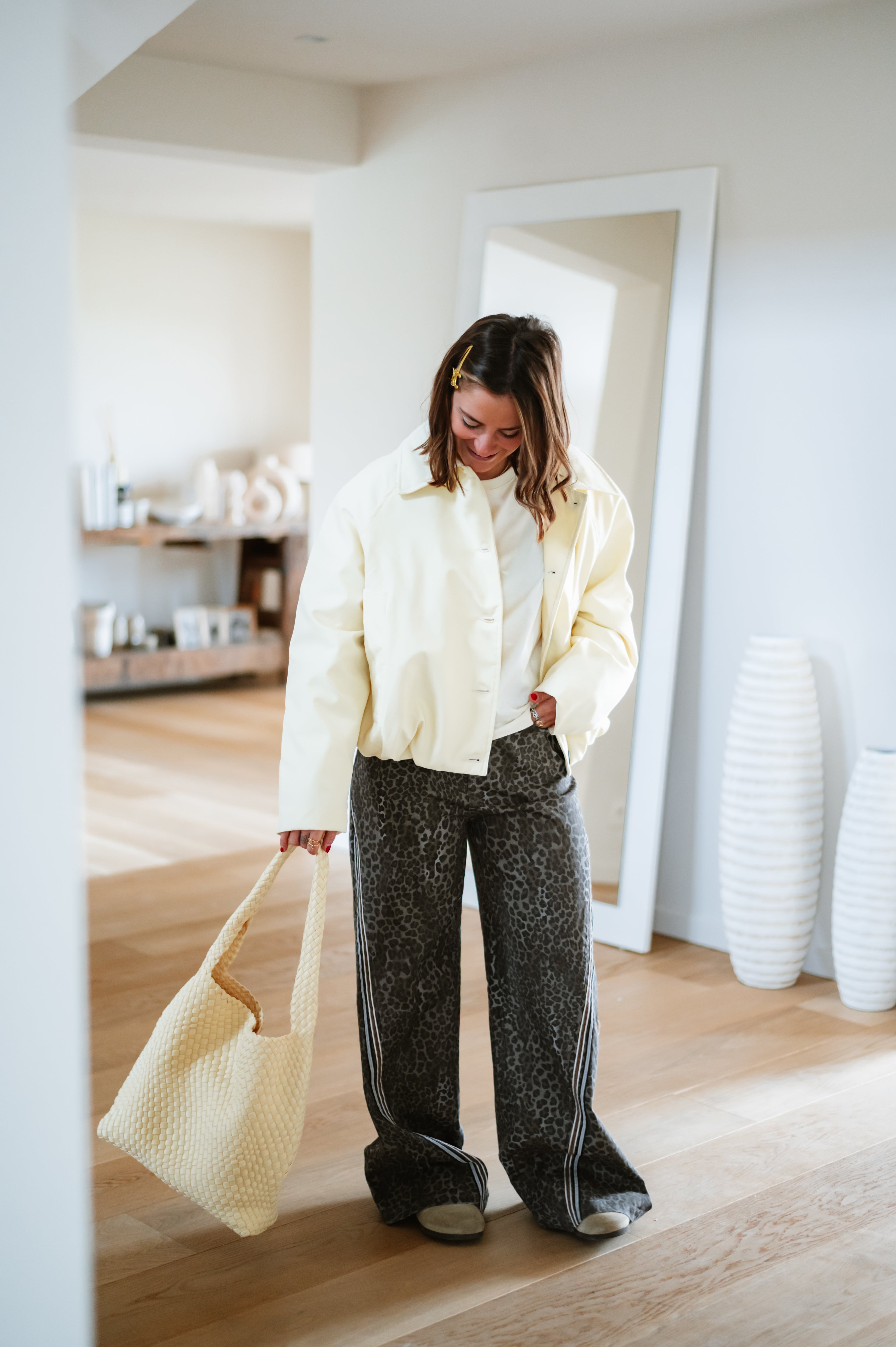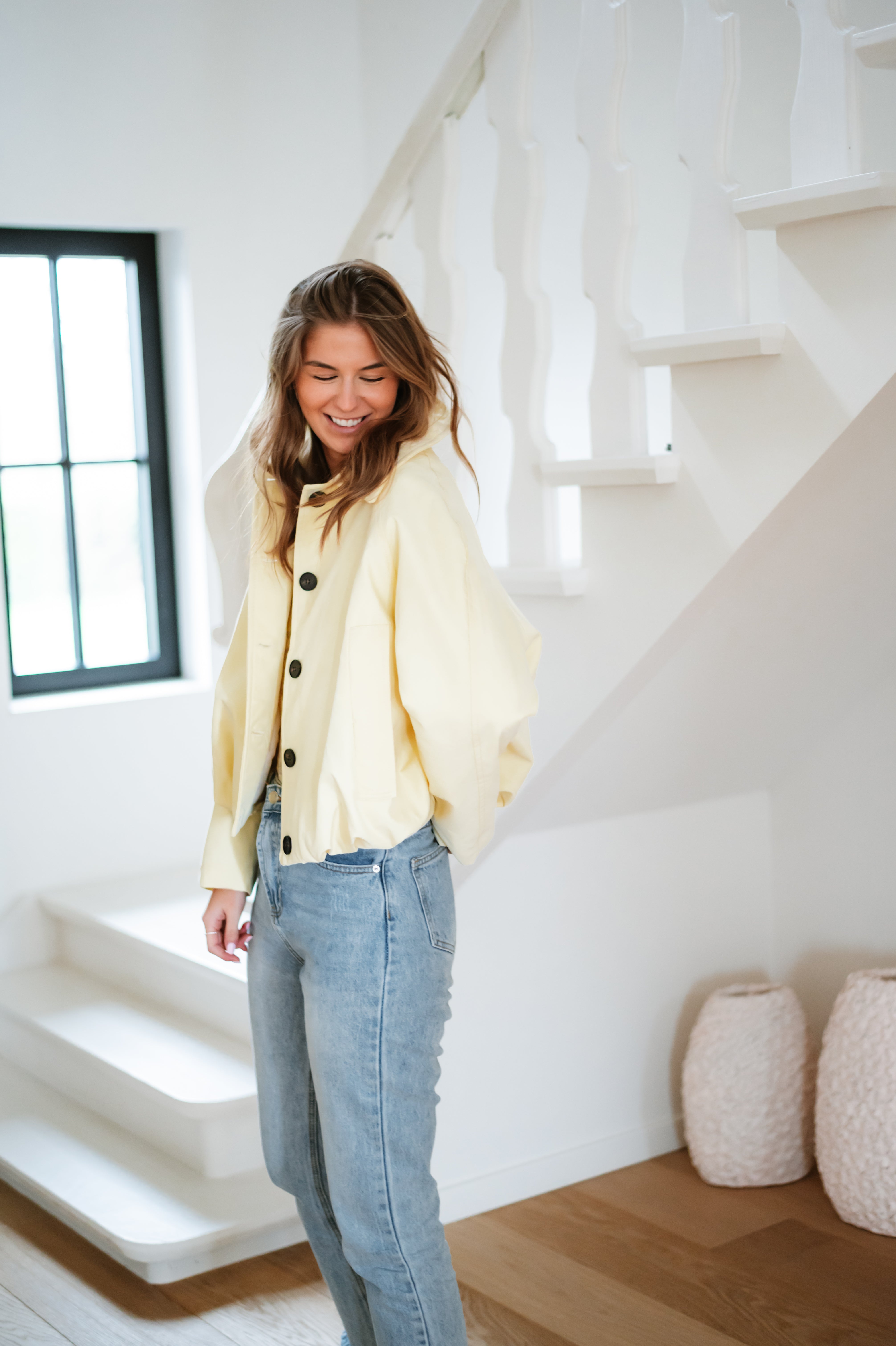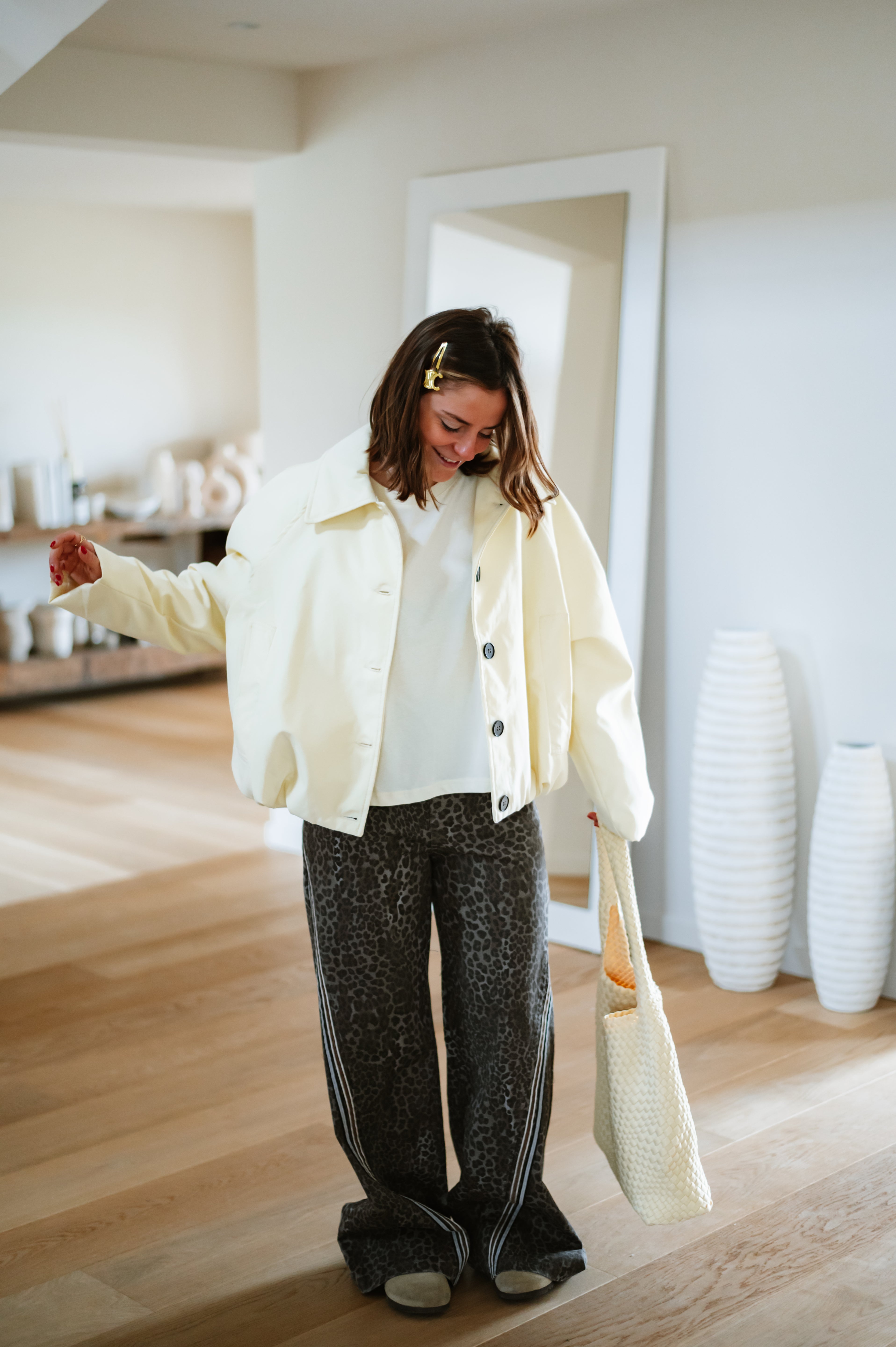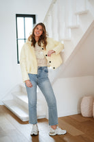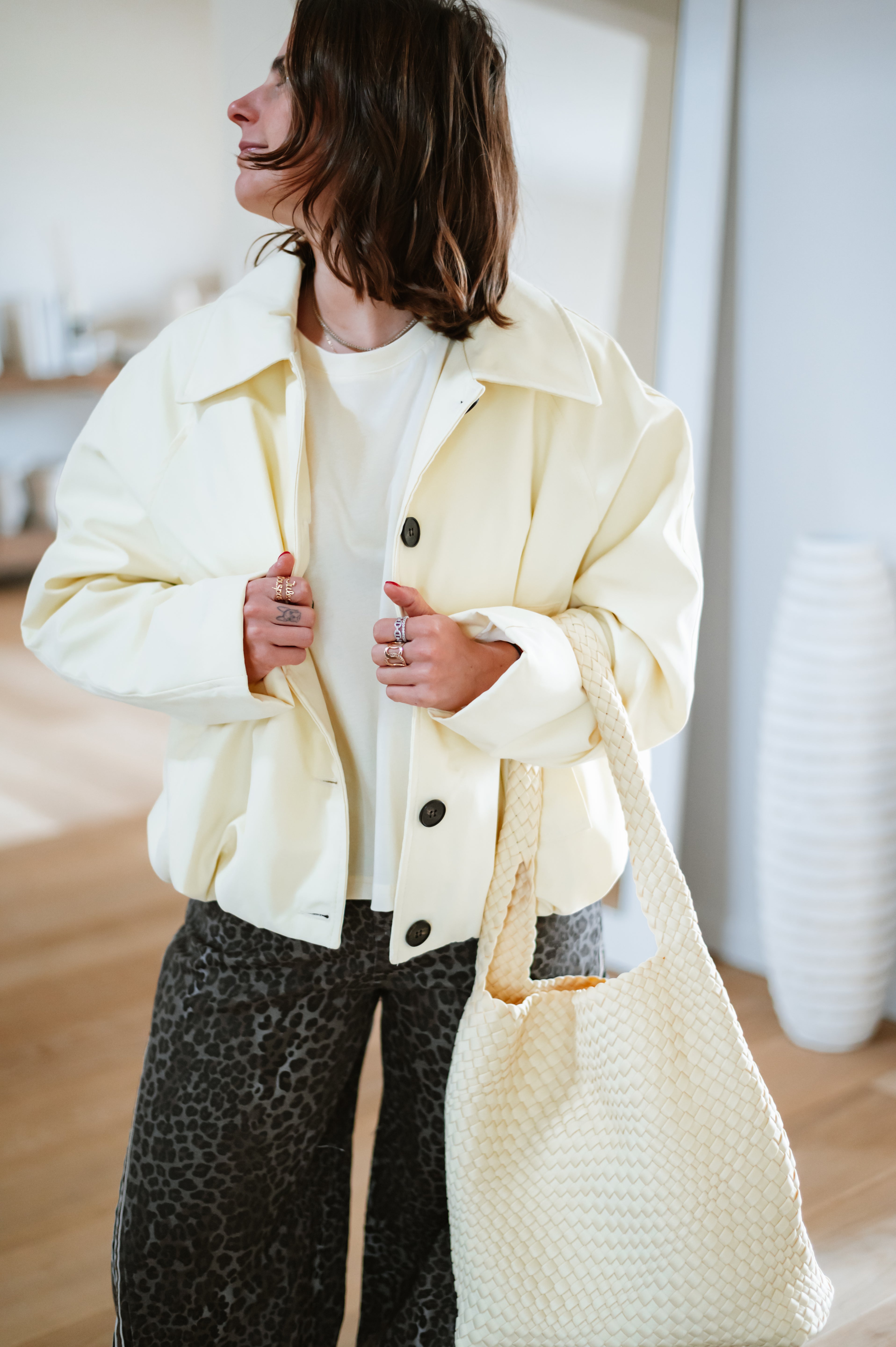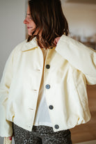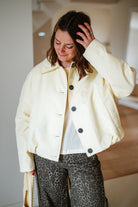 Veste JESS courte et élégante avec silhouette ballon flatteuse. Dotée de boutons noirs contrastants et d'un col structuré, elle apporte une touche de sophistication à vos tenues. Disponible en taille unique, cette pièce incontournable se porte facilement au quotidien ou pour des occasions plus habillées. Parfait pour créer des looks modernes et intemporels.