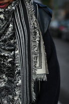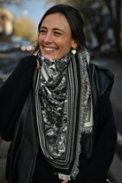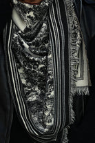 Découvrez l'élégance intemporelle de cette écharpe beige ornée de motifs noirs éclatants. Un accessoire raffiné qui ajoute une touche de sophistication à chaque tenue, parfait pour sublimer votre style au quotidien.