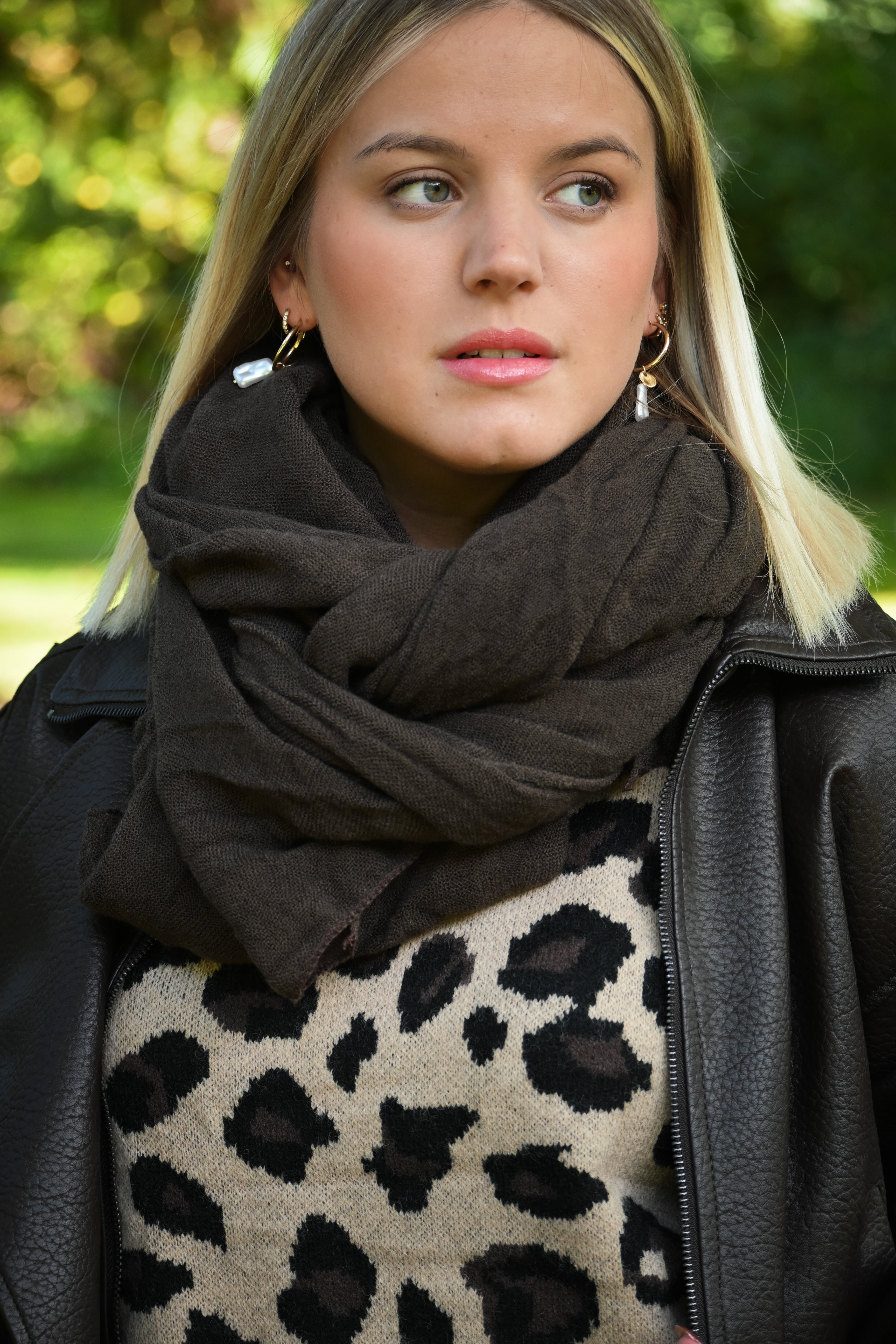 Cette écharpe en maille ultra douce se décline en noir, kaki, chocolat et bleu marine pour compléter élégamment toutes vos tenues.