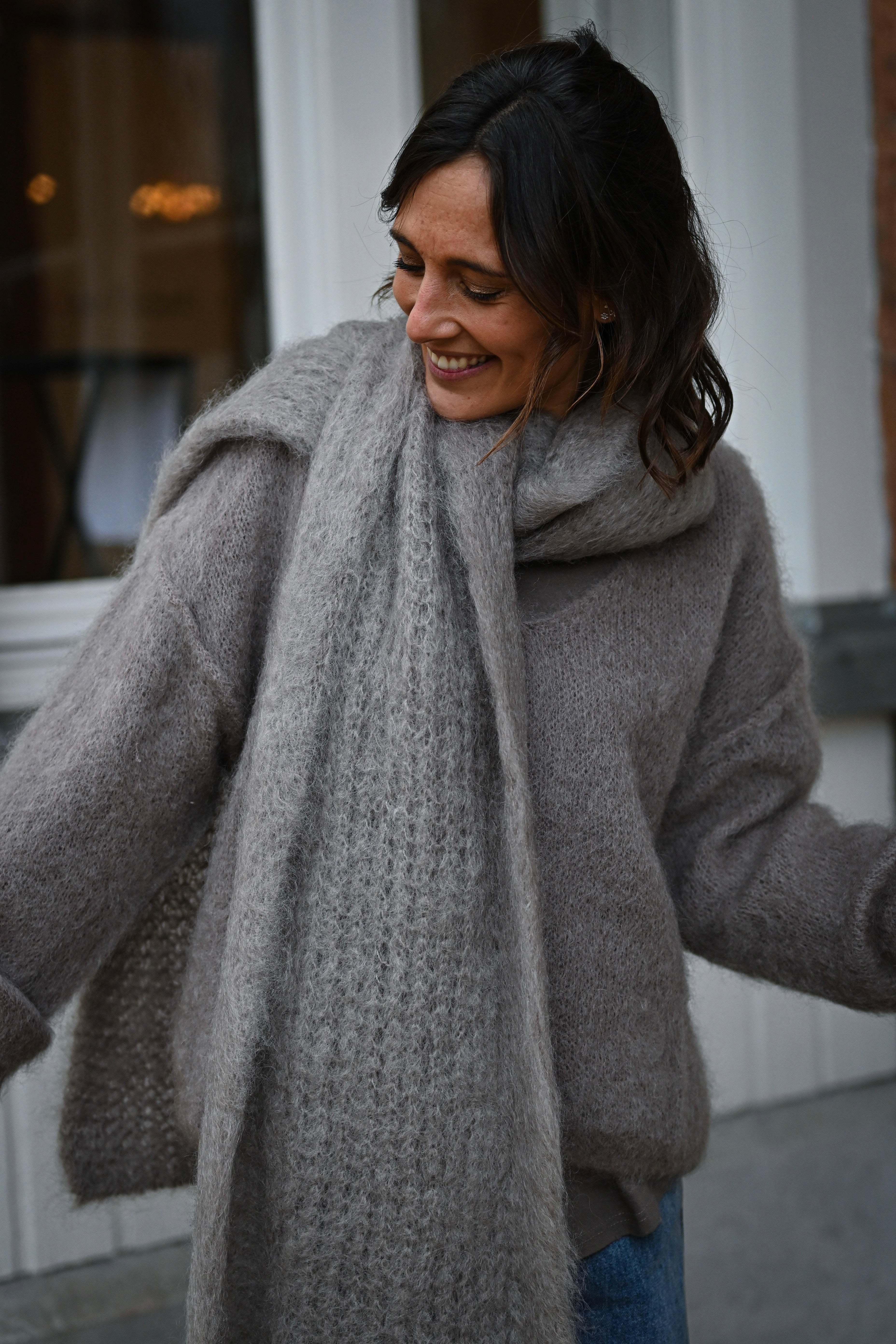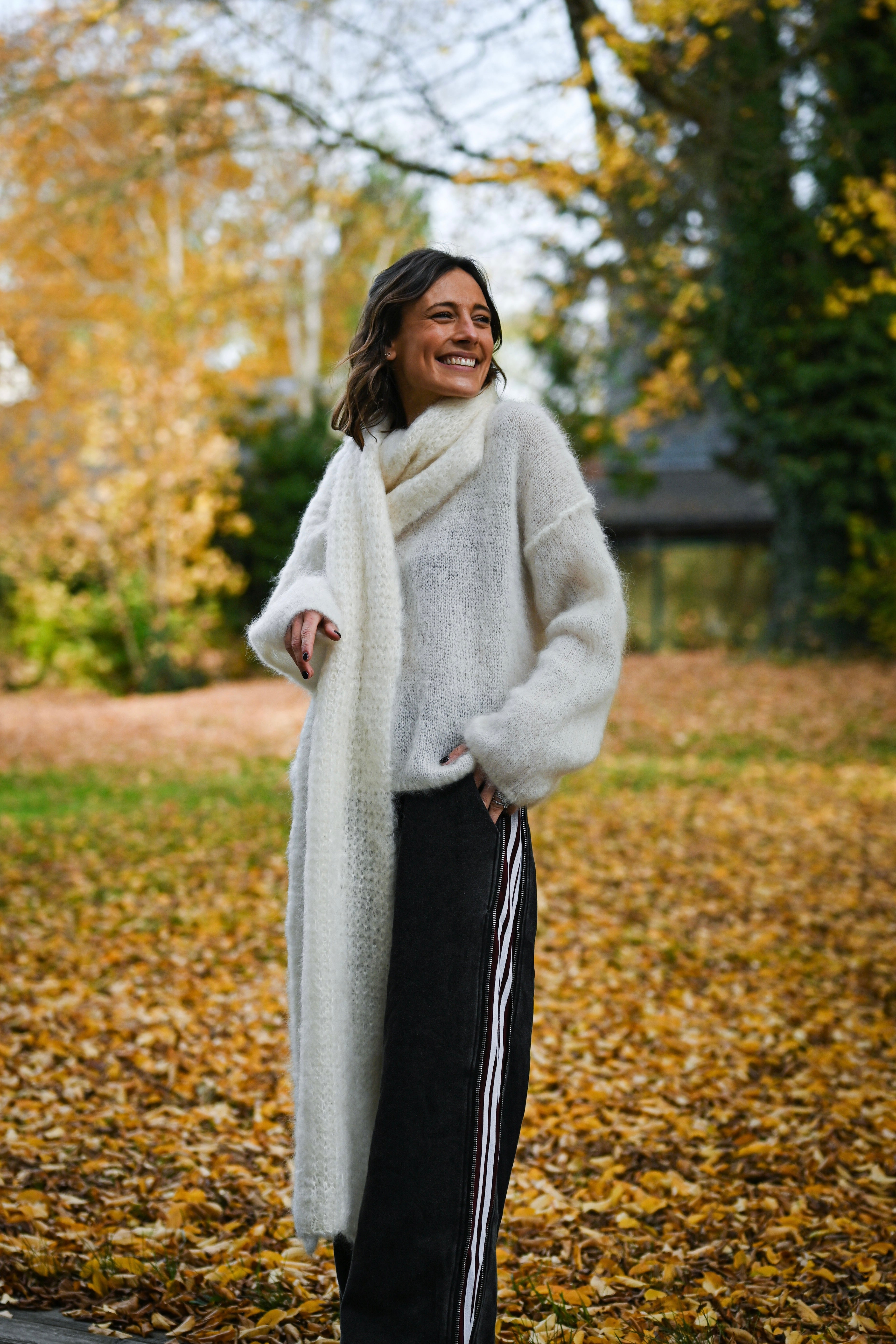 Enveloppez-vous de luxe avec cette écharpe généreuse en mohair soyeux. Sa longueur généreuse vous offre une polyvalence infinie : drapez-la élégamment autour de vos épaules, nouez-la avec style ou portez-la en double tour pour plus de chaleur. Le mohair, réputé pour sa douceur incomparable et sa légèreté, crée une sensation de confort absolue contre la peau. Parfaite pour sublimer vos tenues hivernales avec une touche de sophistication intemporelle.