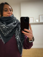 Découvrez le foulard LAURA maxi, un accessoire incontournable alliant style et confort. Son motif bandana intemporel se marie avec une composition noble : acrylique, modal, laine et alpaga pour une douceur incomparable. Épais et généreux, il vous tiendra chaud tout en ajoutant une touche d'élégance à vos tenues. Entretien facile à 30 degrés.