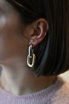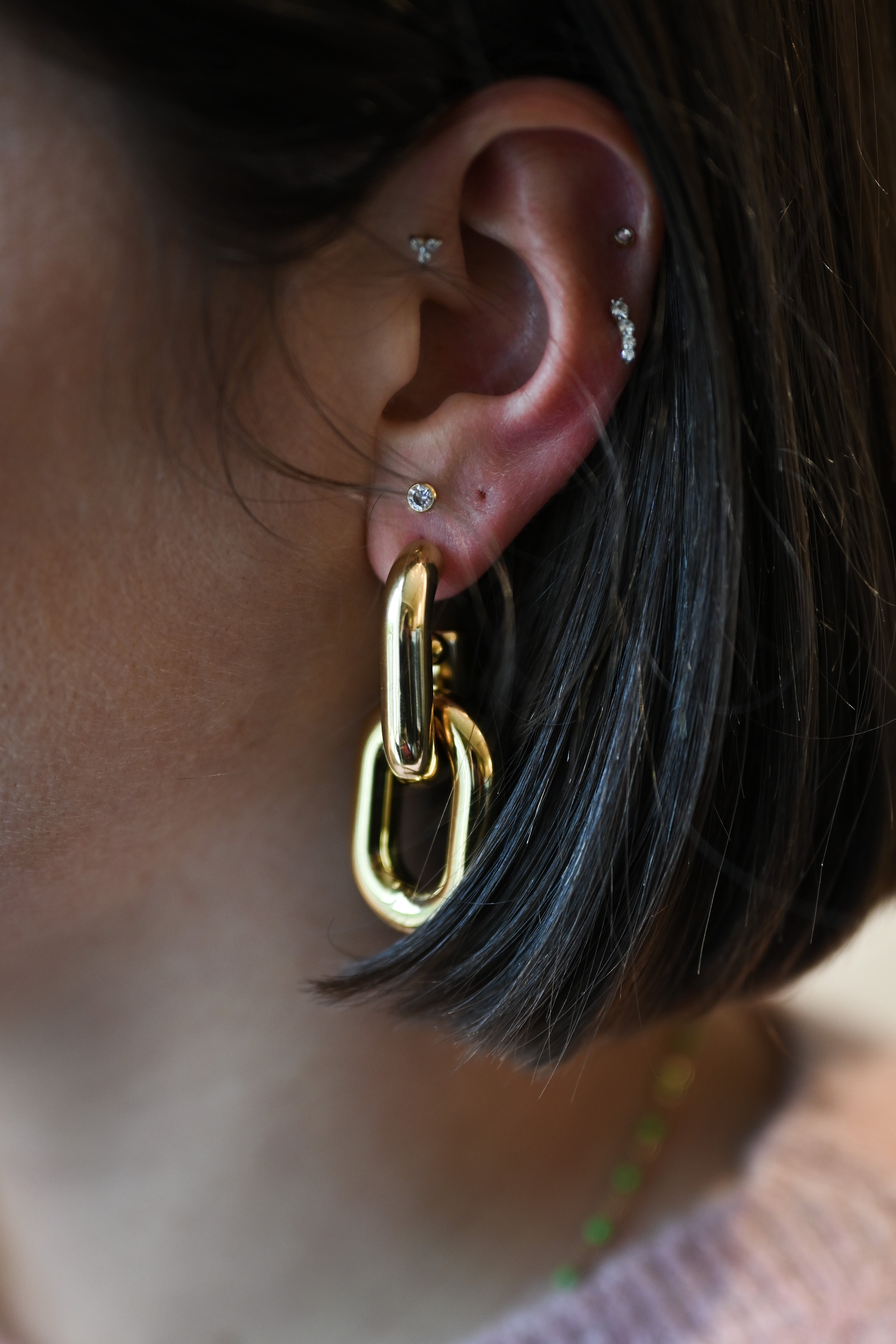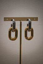Cette paire de boucles d’oreilles IRIS, au format assez imposant, se décline en acier inoxydable avec une finition entièrement dorée ou bicolore argenté et doré, parfaite pour sublimer votre style.