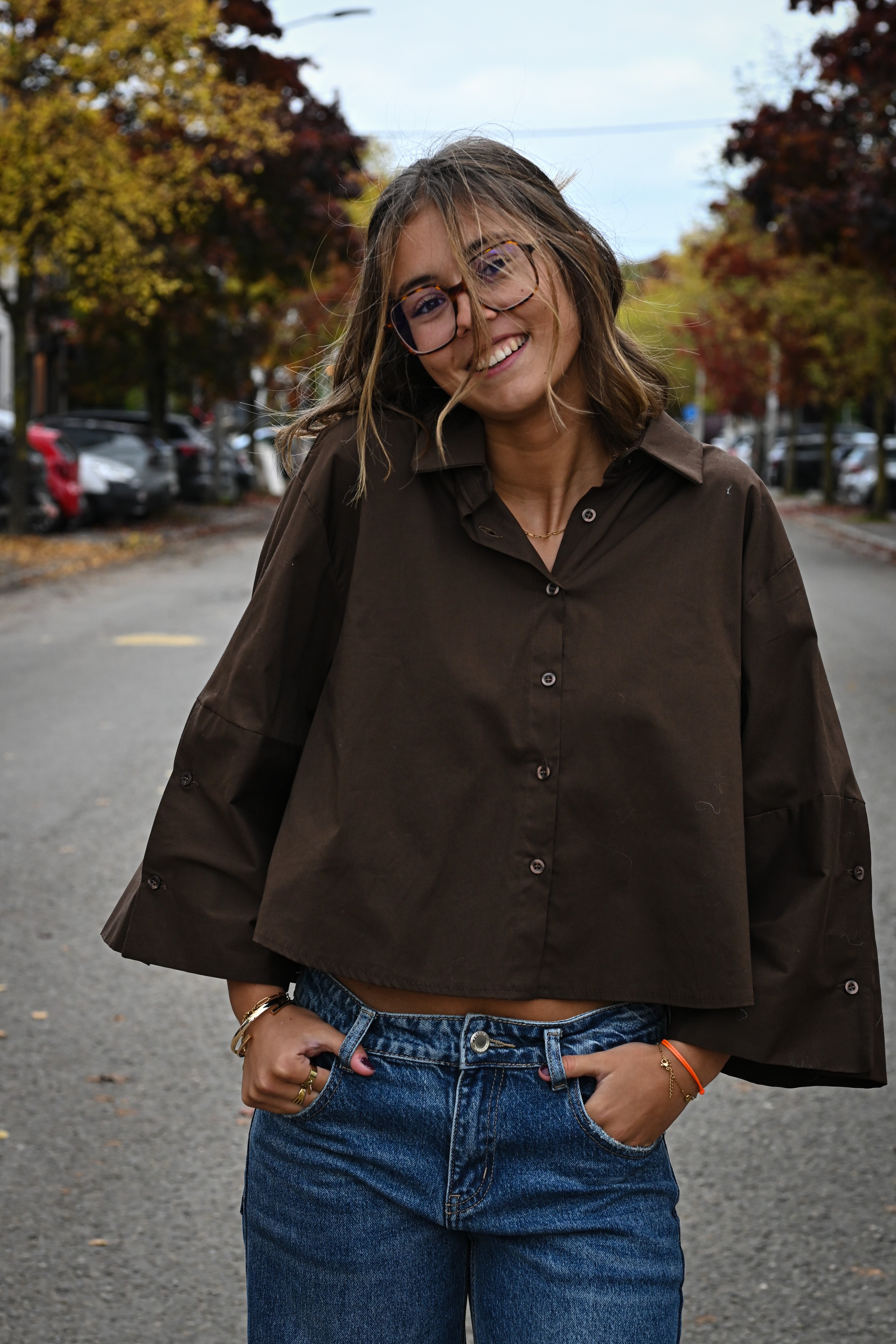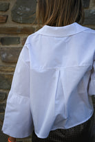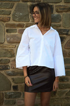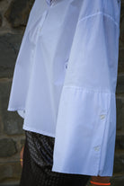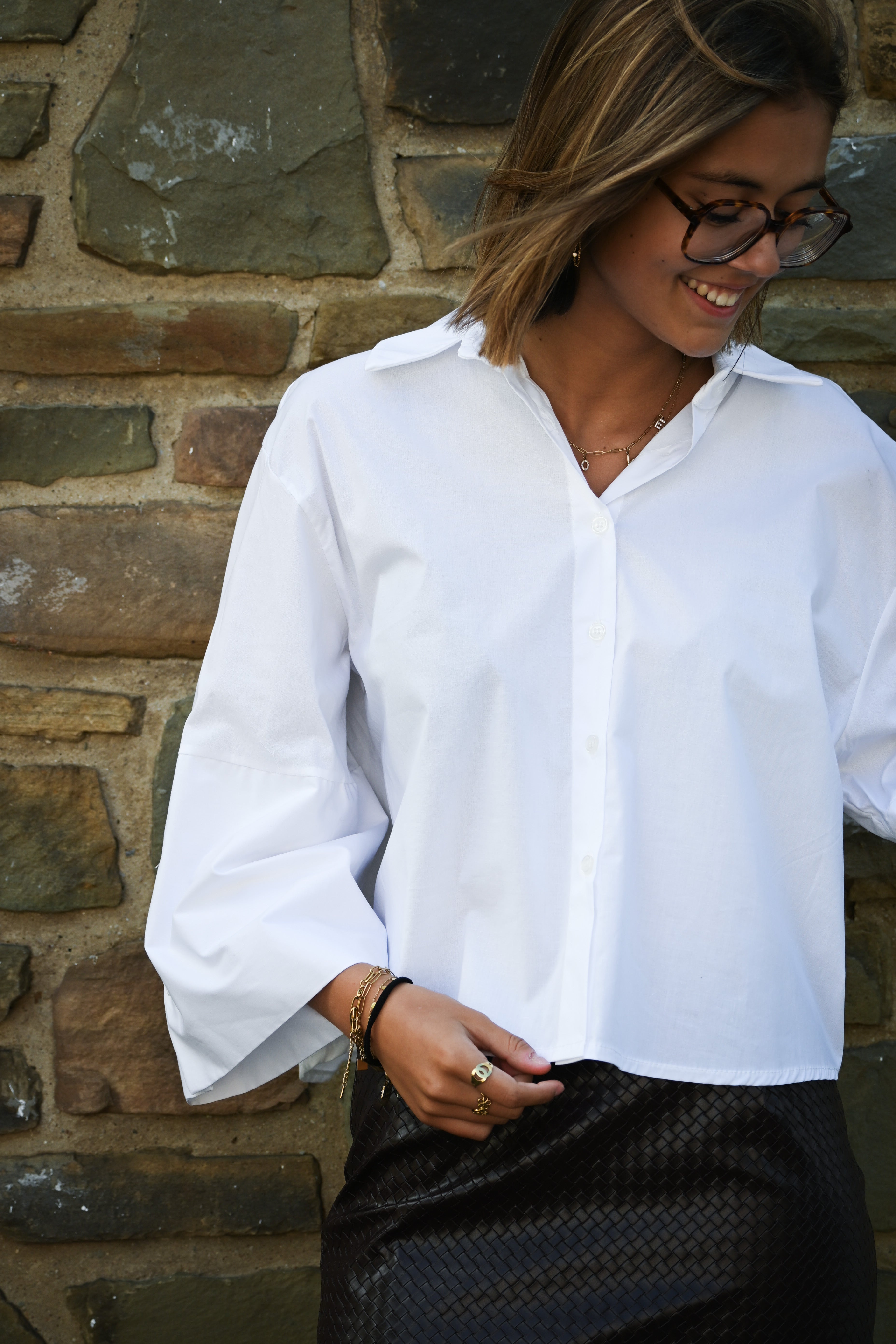 Cette chemise blanche courte se distingue par ses manches longues et largement évasées. Proposée en taille unique, elle convient parfaitement à toutes les morphologies pour un style impeccable.