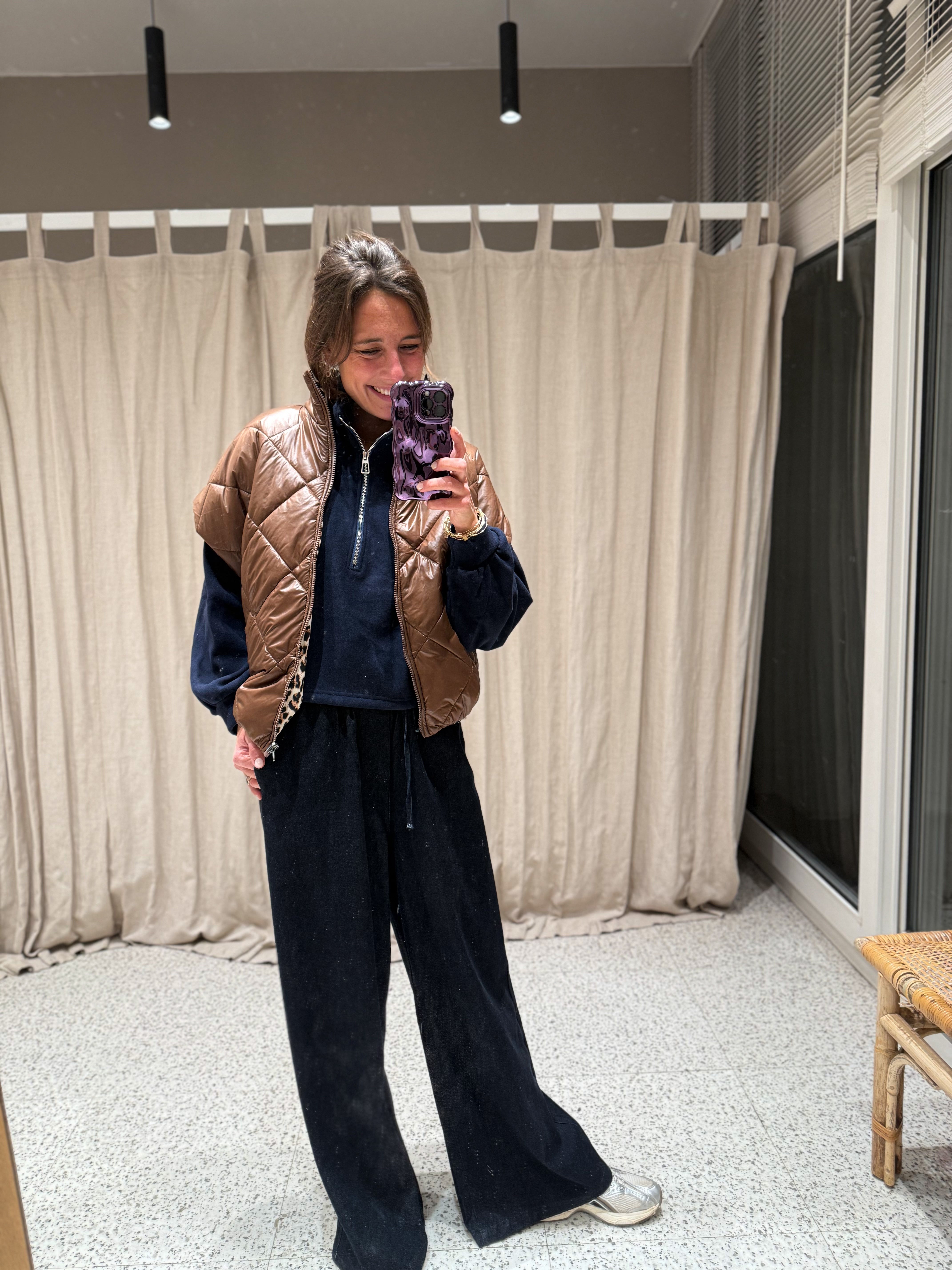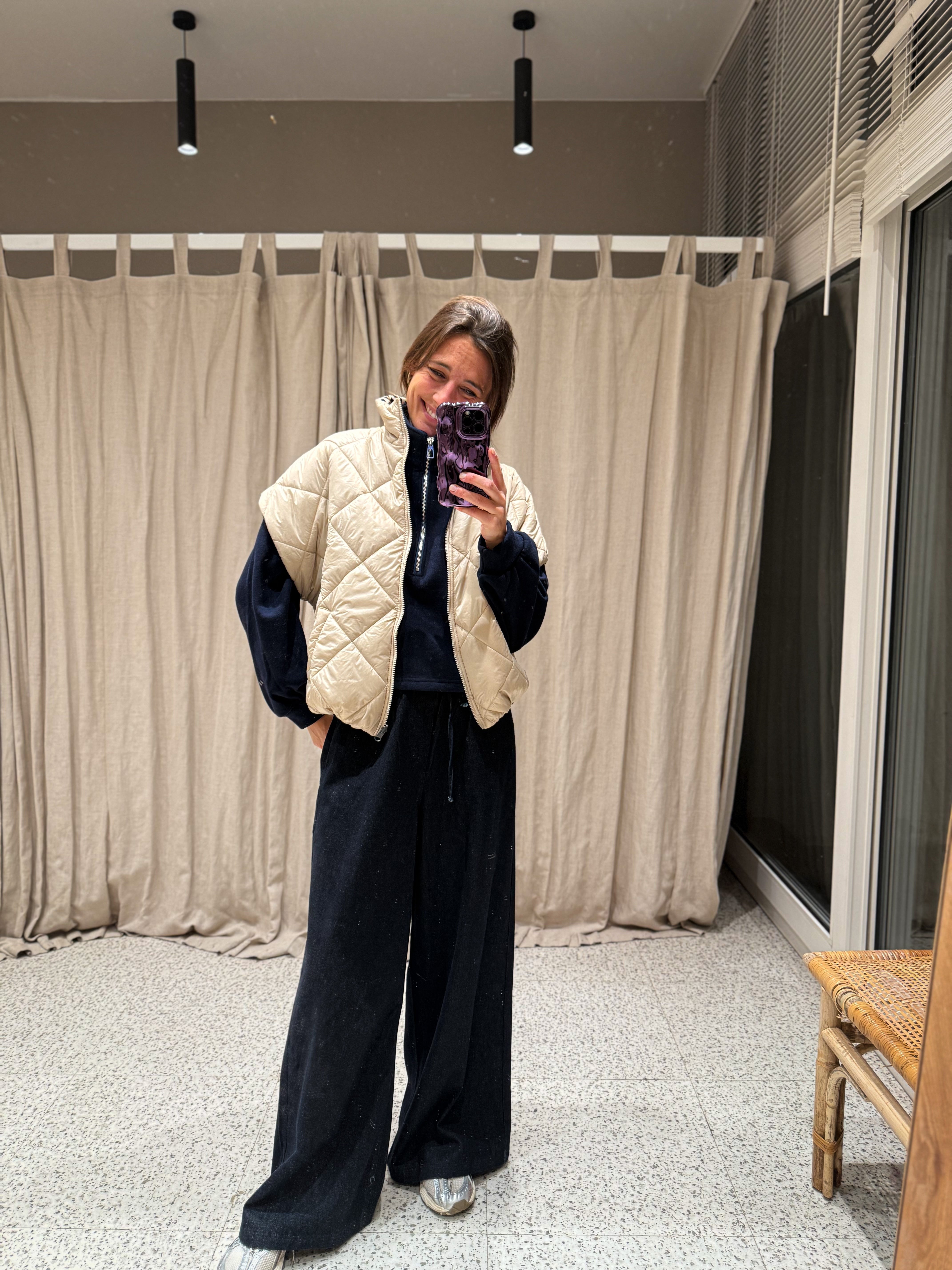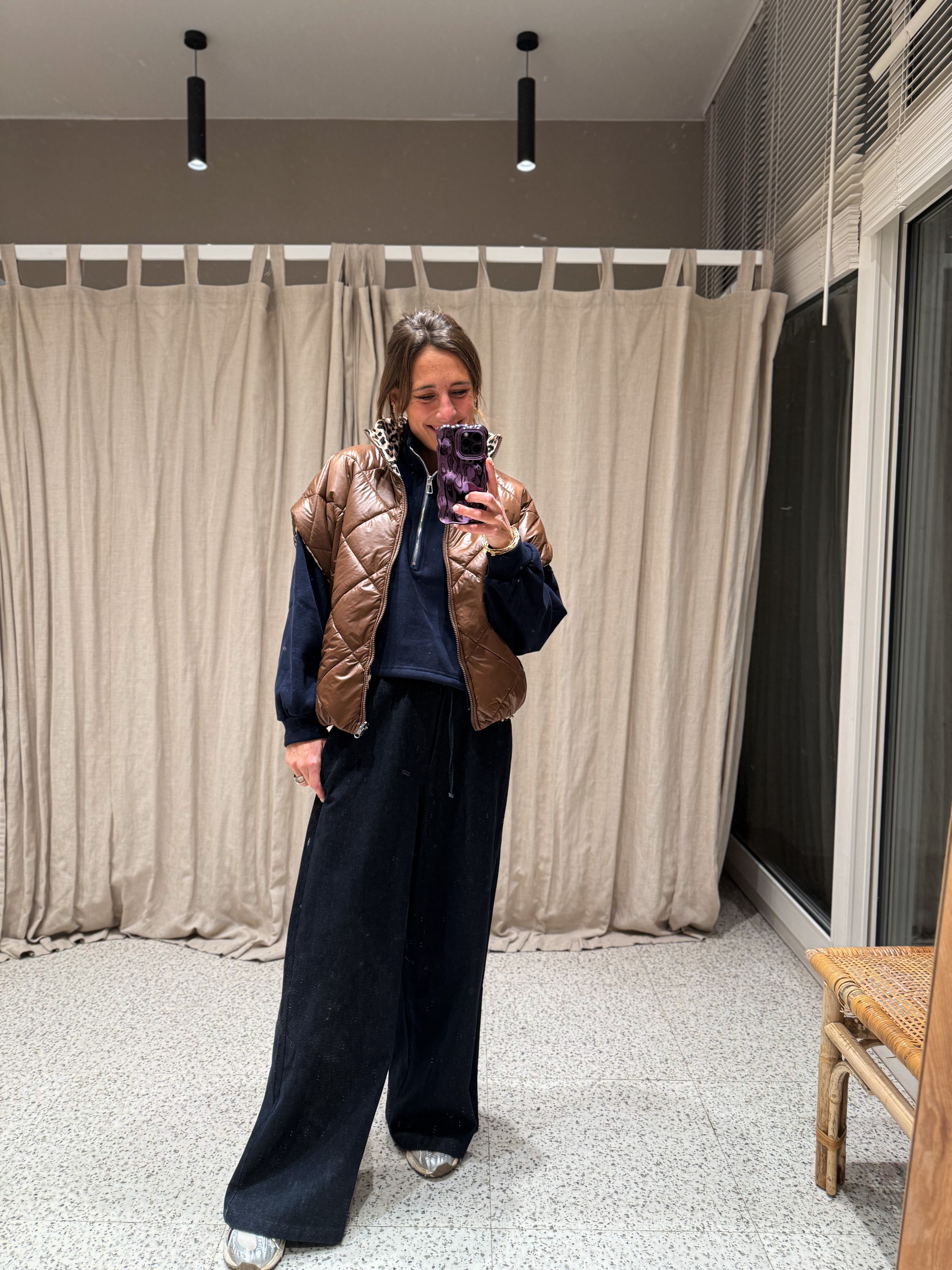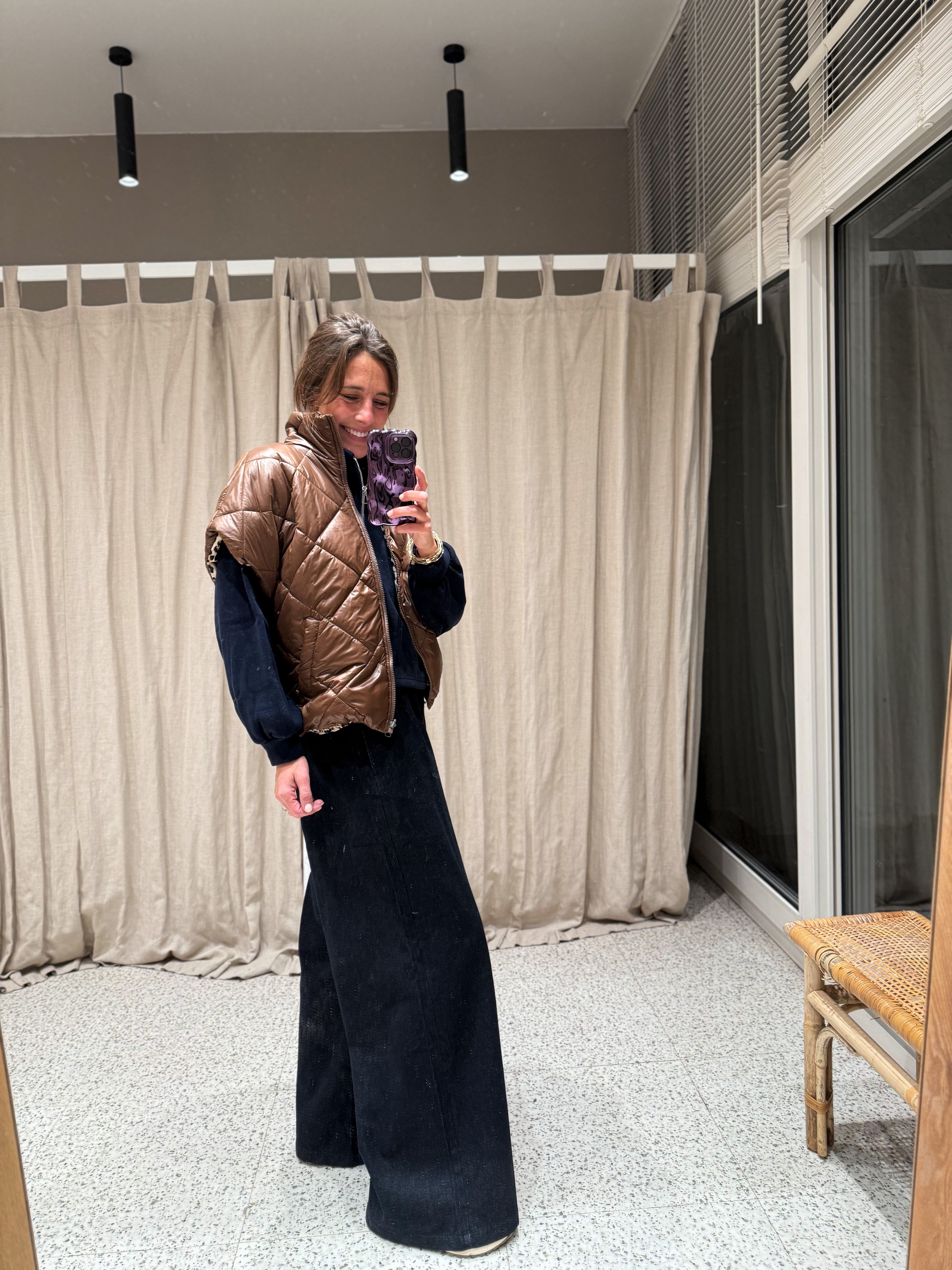 Jeans fluide en jeans bleu foncé doté d’une taille élastiquée. Disponible en taille unique, ce pantalon s’ajuste parfaitement pour offrir un confort optimal.