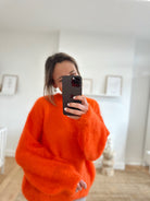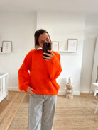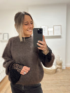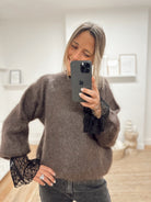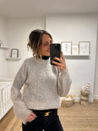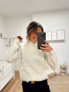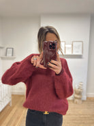 Pull col rond couleur chocolat. Il ne pique pas et est hyper chaud.