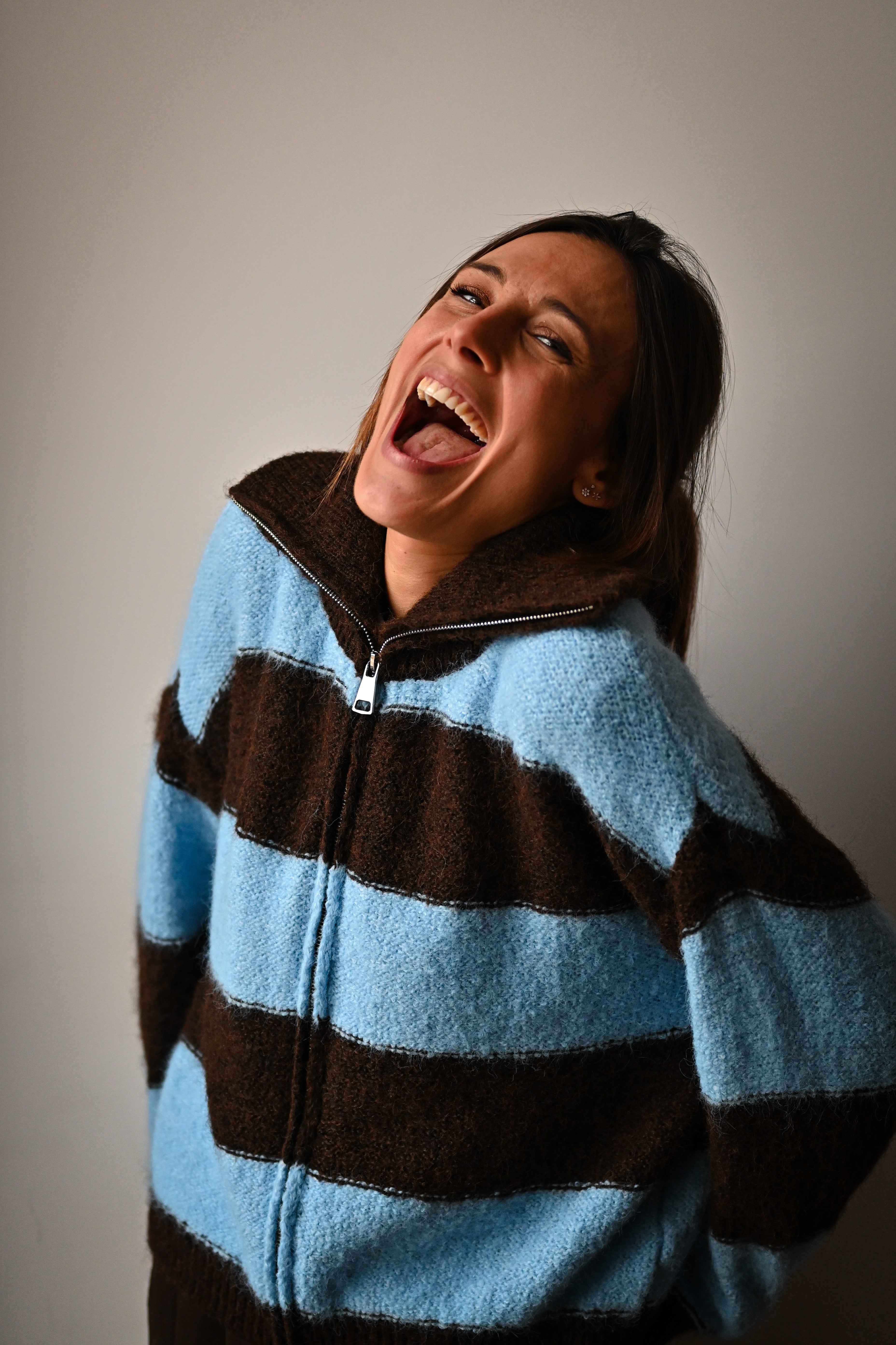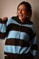 Découvrez le Pull MISI, un incontournable en laine pure alliant style et confort. Son col montant distinctif et sa tirette pratique en font une pièce polyvalente, sublimée par les contrastes bleu ciel et chocolat. Taille unique pour tous.