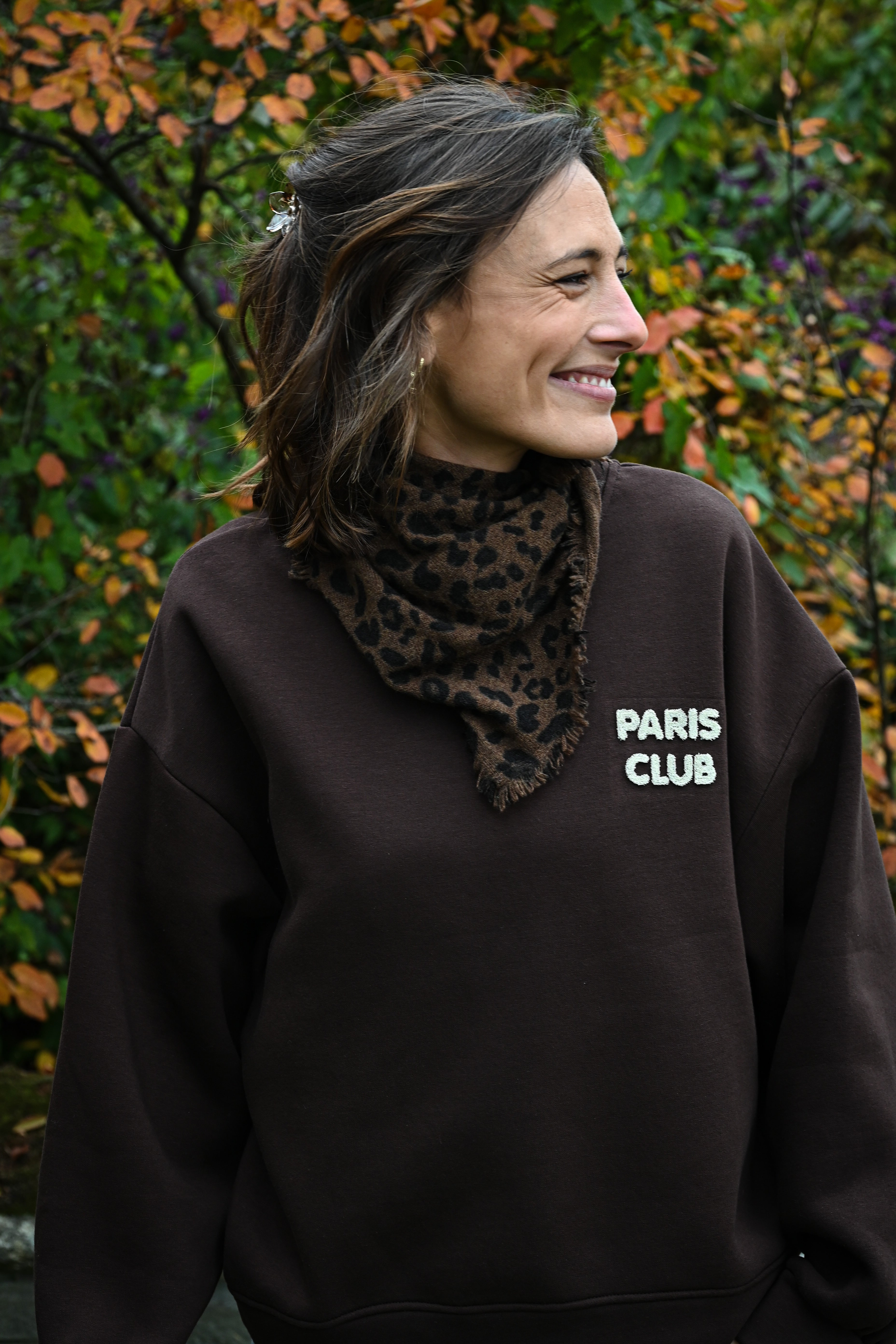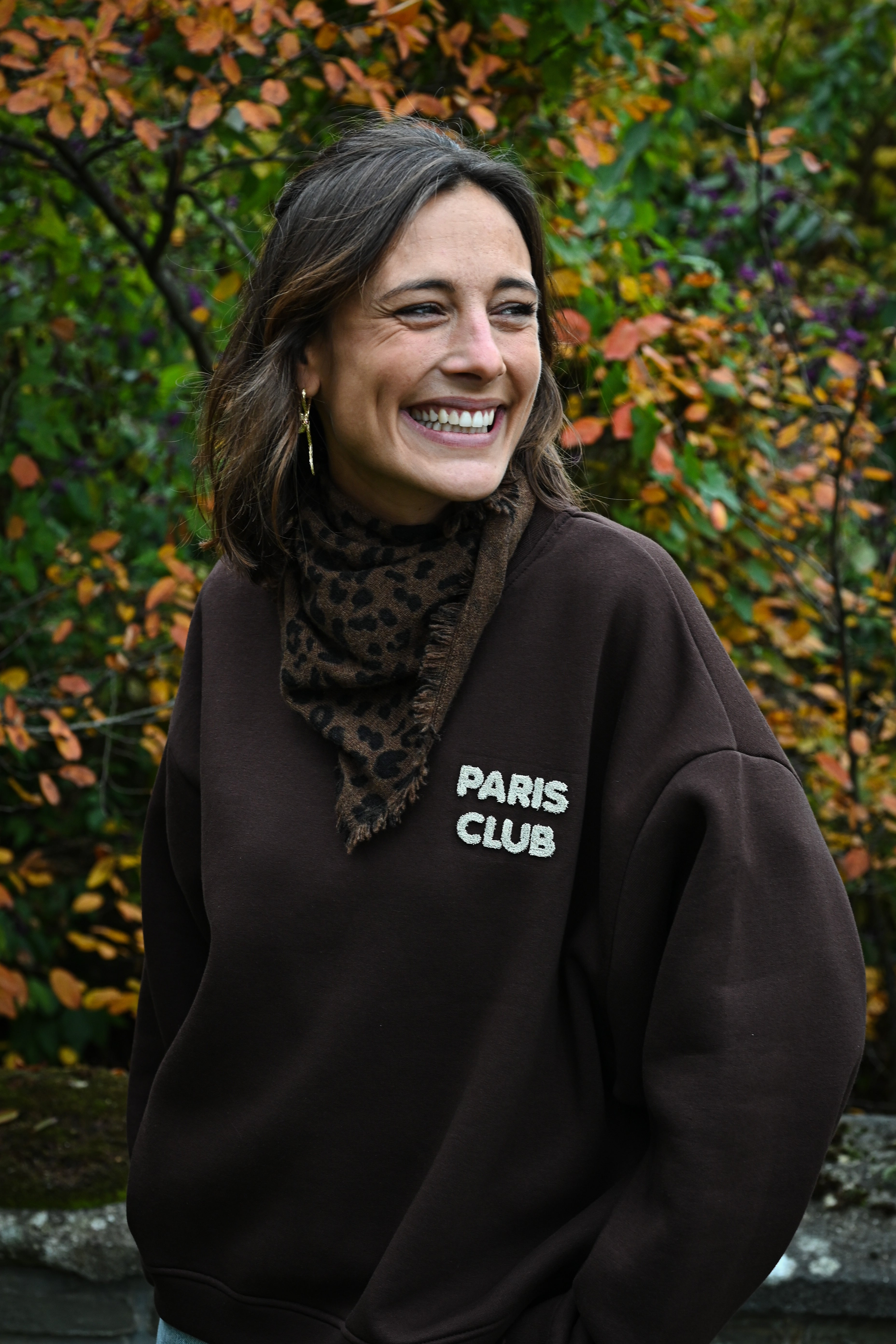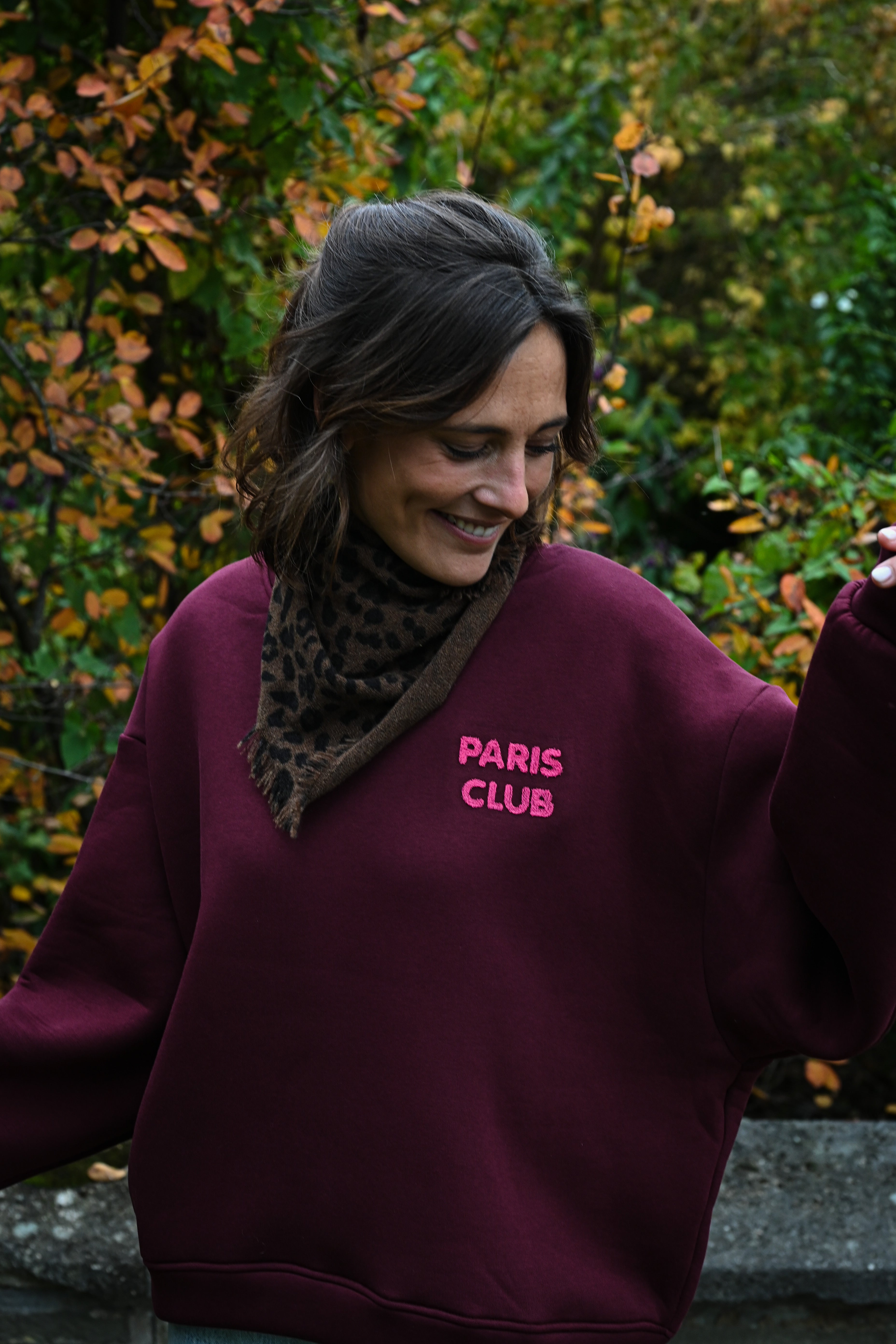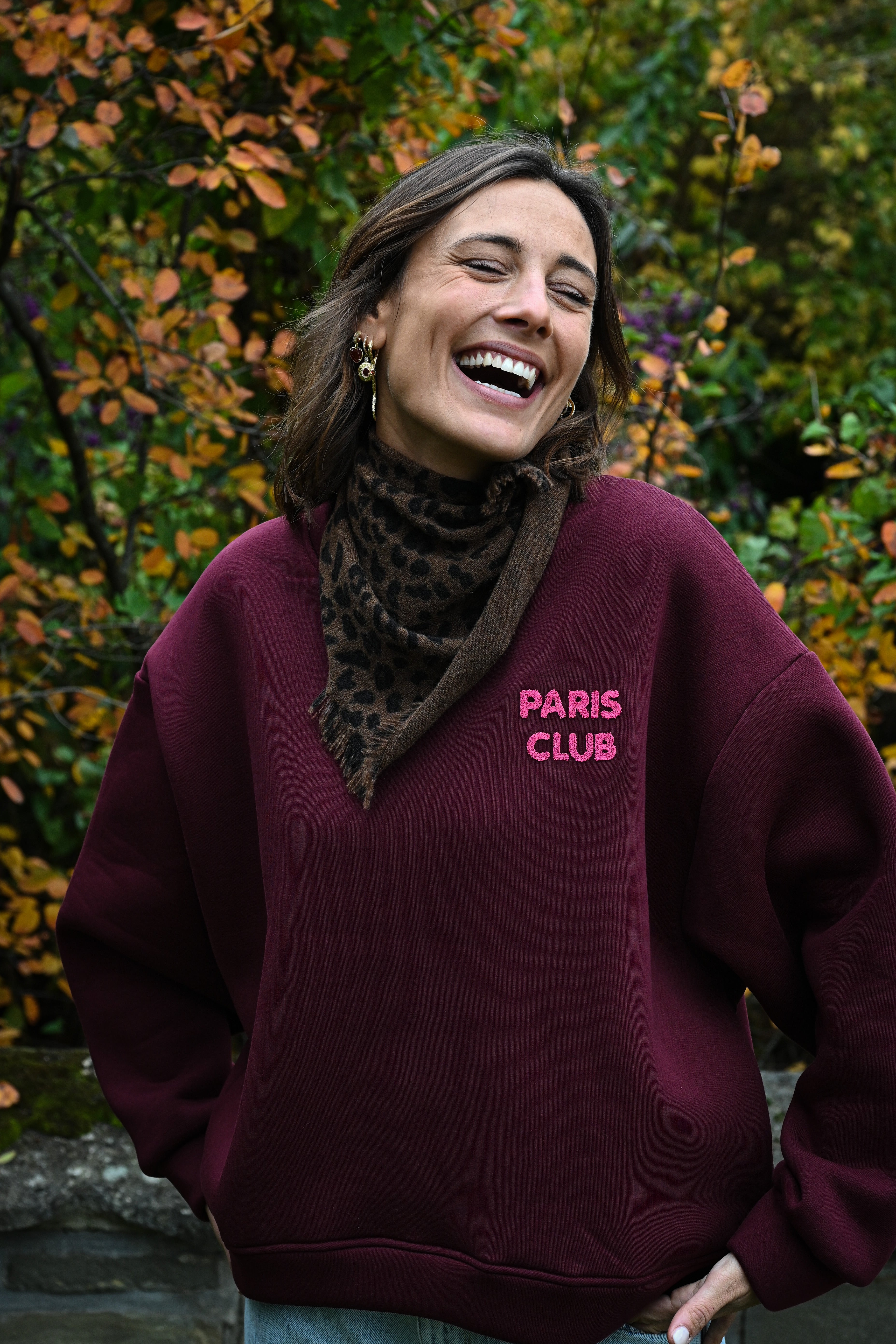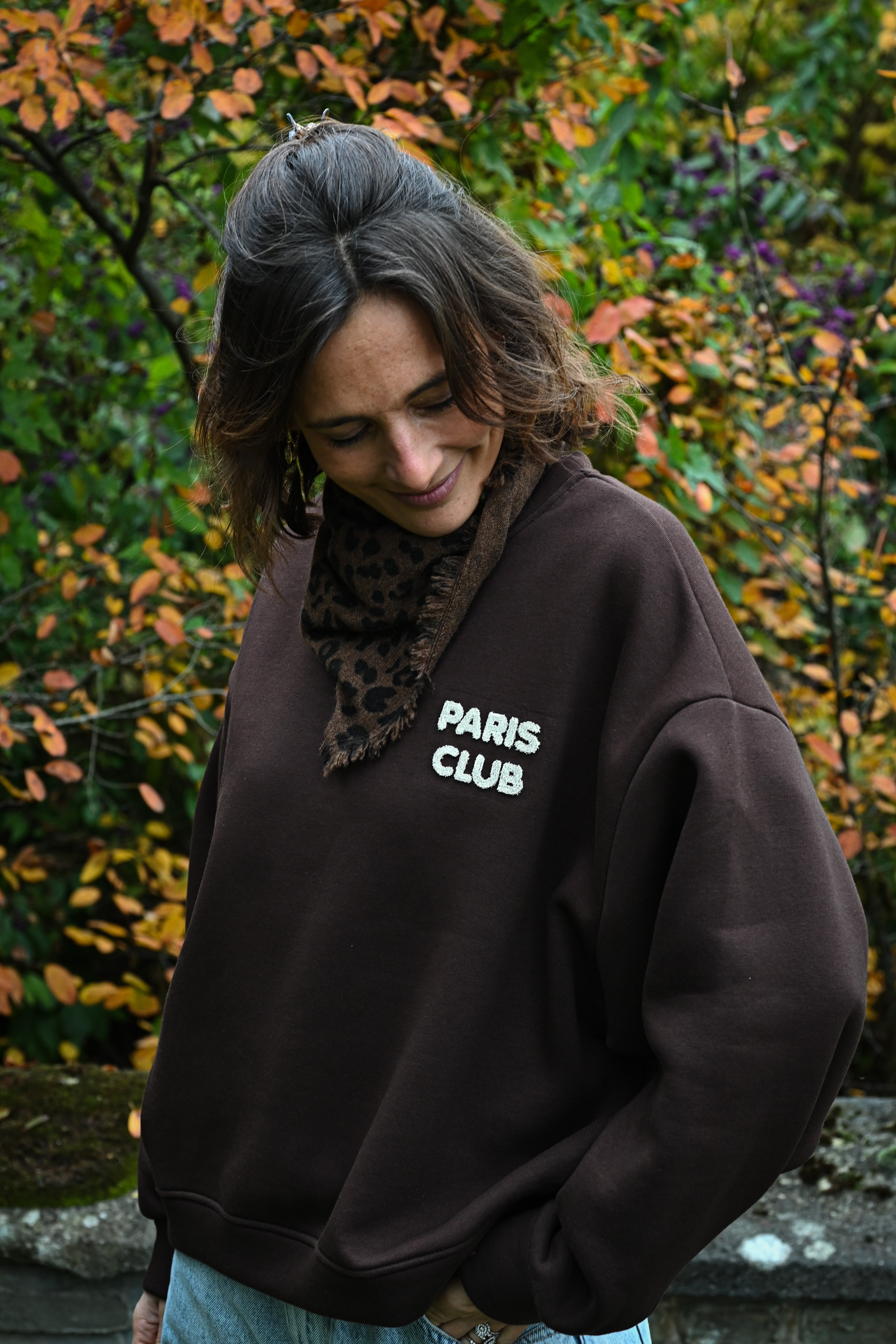 Ce sweat ample se décline en chocolat clair, chocolat foncé et bordeaux. Disponible en taille unique, il s'ajuste aisément pour un confort sans compromis.