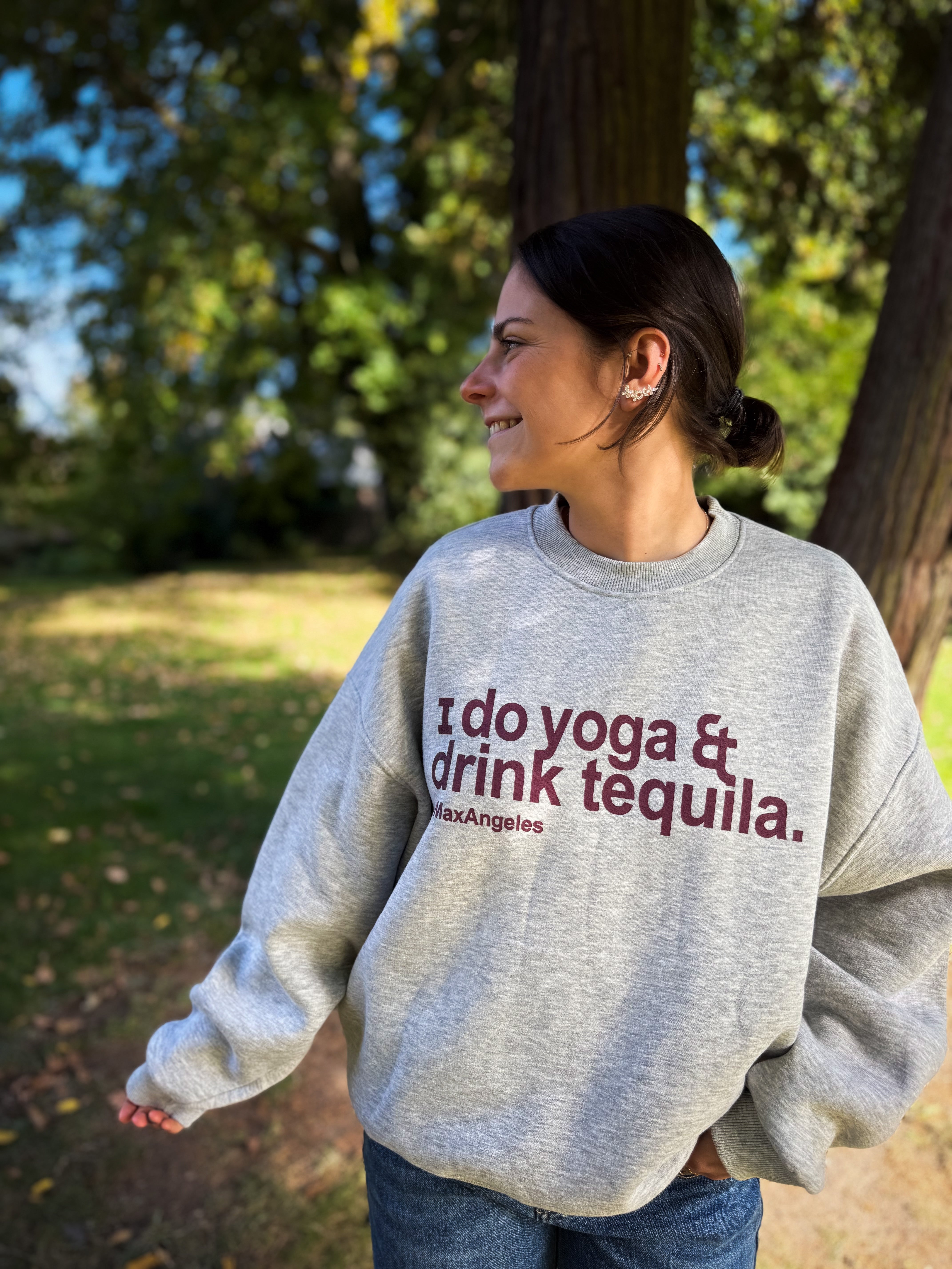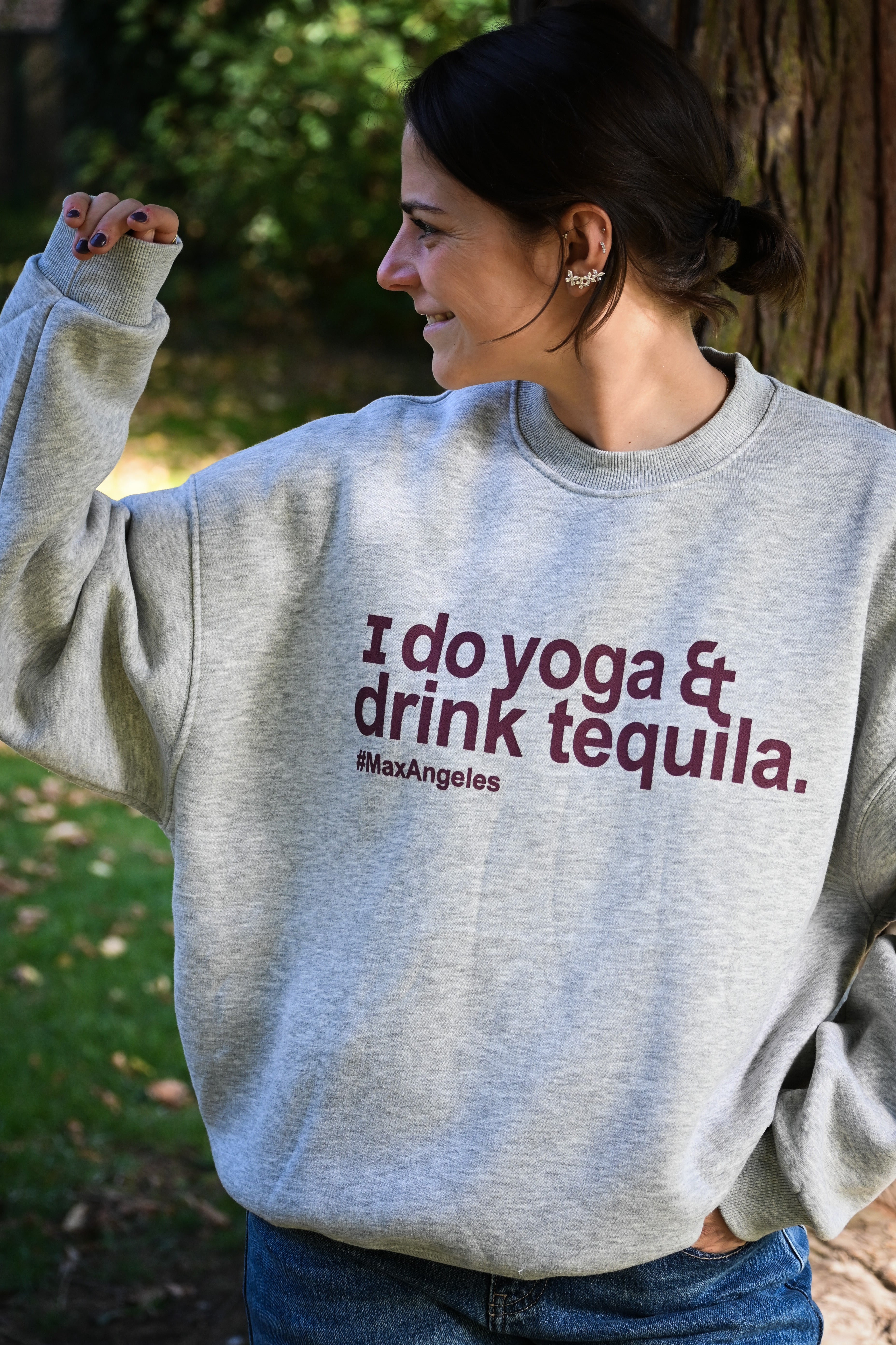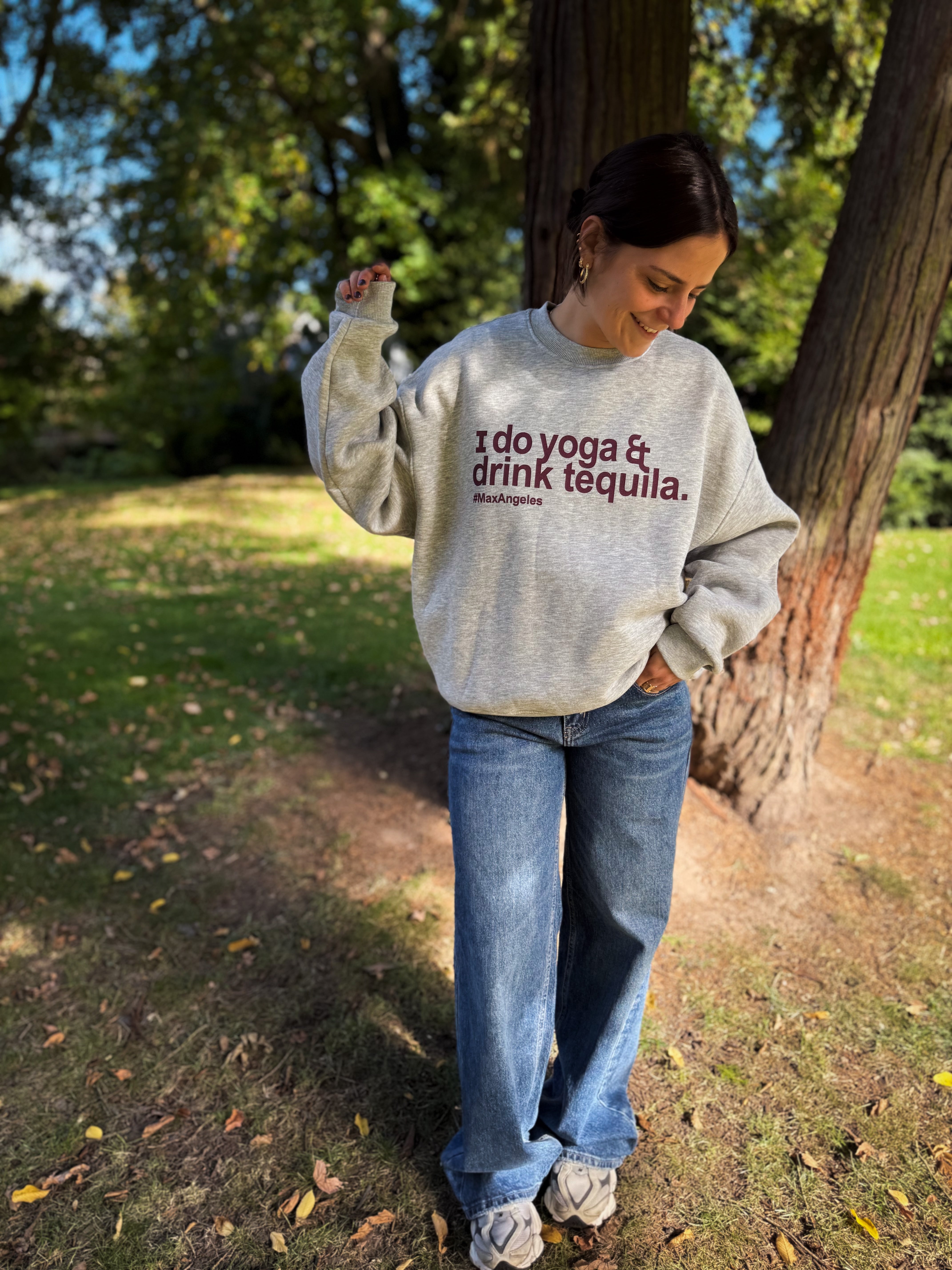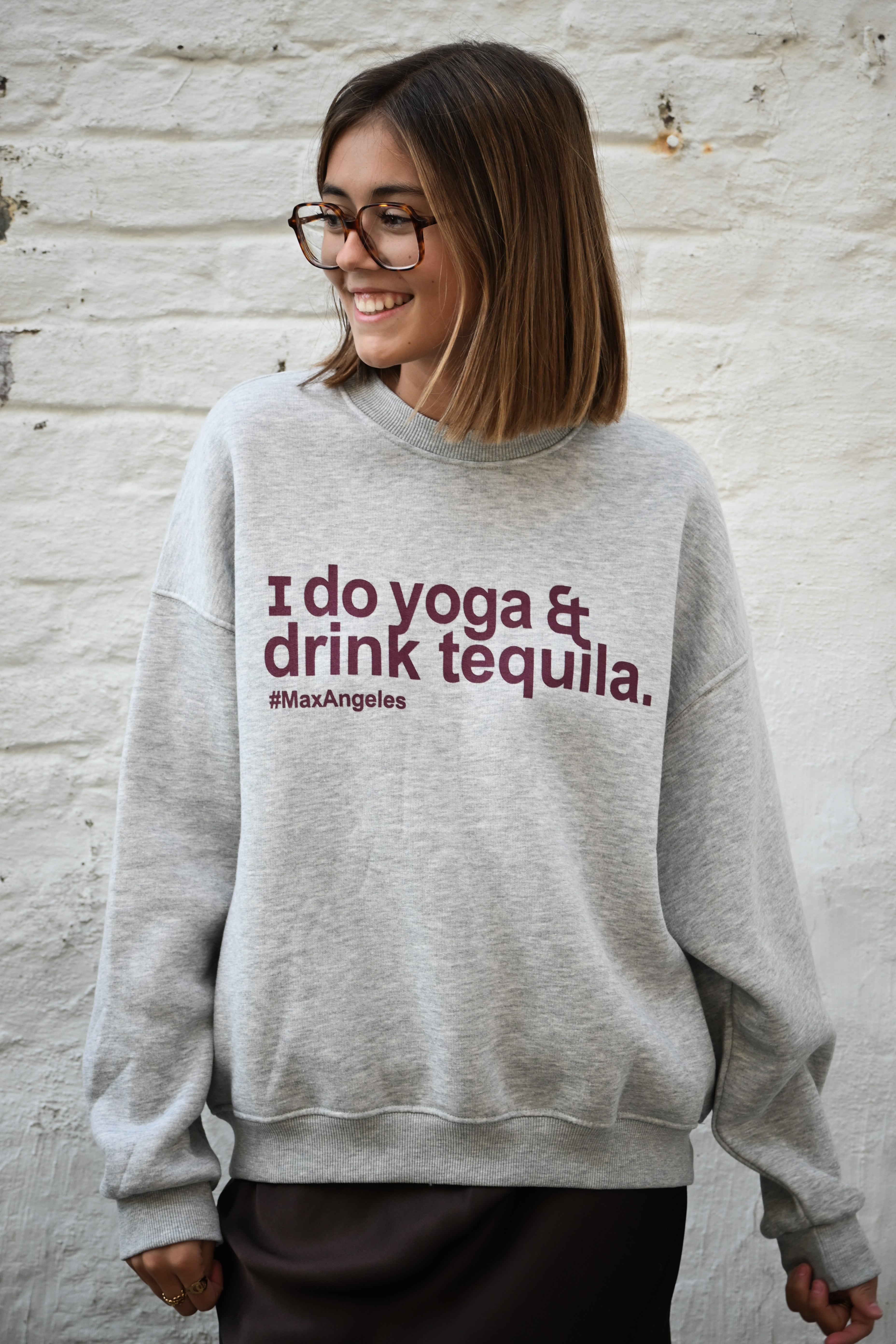 Ce sweat ample gris à manches longues se distingue par une inscription en bordeaux sur le devant. Doublé d’une matière très douce, il offre un confort optimal. Disponible en taille unique, il allie style et douceur pour vos moments de détente.