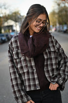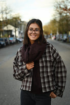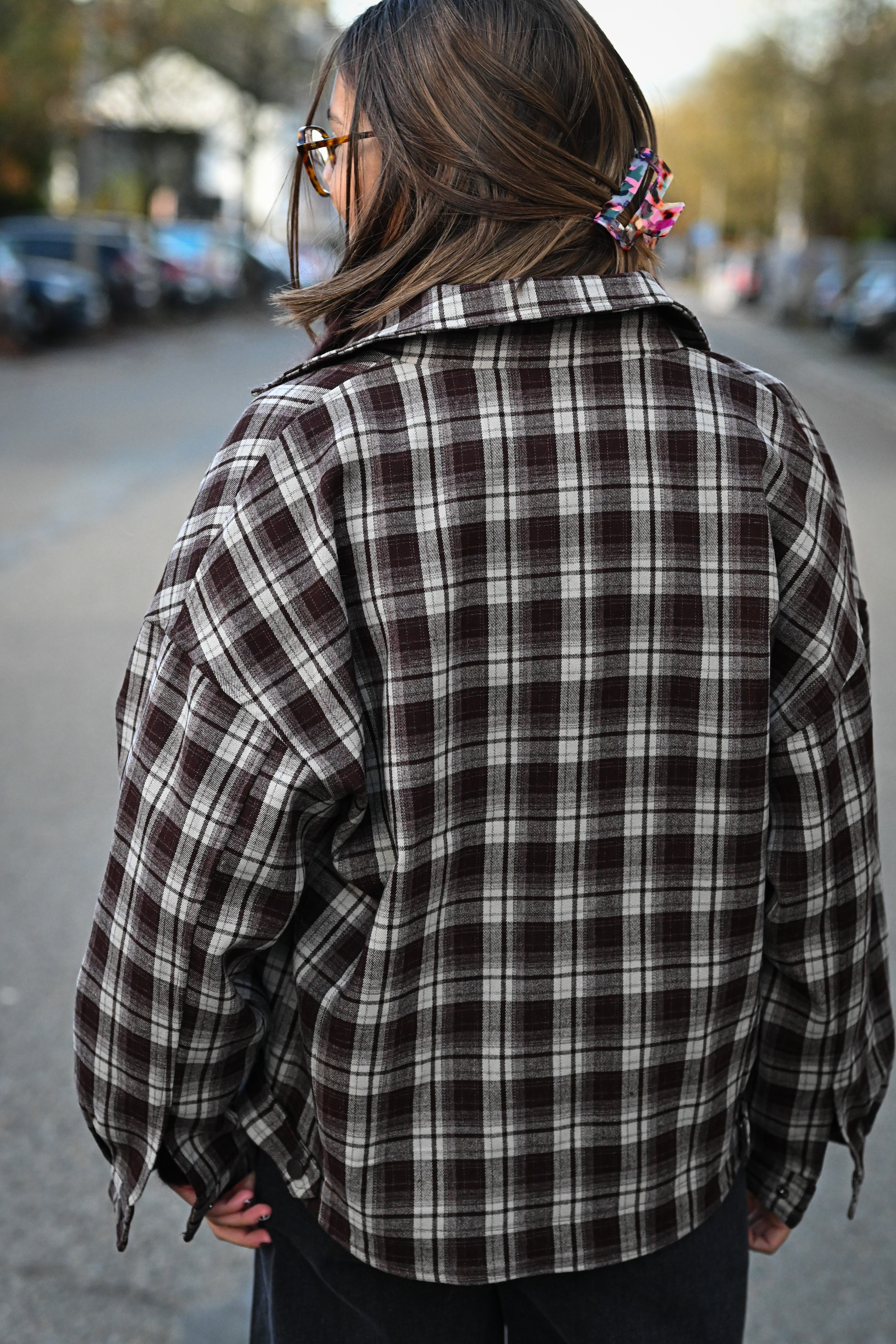 Découvrez la Veste ELINA, une pièce incontournable aux motifs carreaux subtils qui mélangent élégamment le chocolat et le taupe. Dotée de poches pratiques à l'avant, elle offre à la fois style et fonctionnalité. Conçue en taille unique, cette veste épouse harmonieusement votre silhouette pour un confort optimal. Un basique polyvalent qui s'intègre sans effort à votre garde-robe.