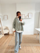 Ces jeans en denim bleu offrent une coupe légèrement décontractée avec une taille haute pour un style à la fois moderne et confortable.