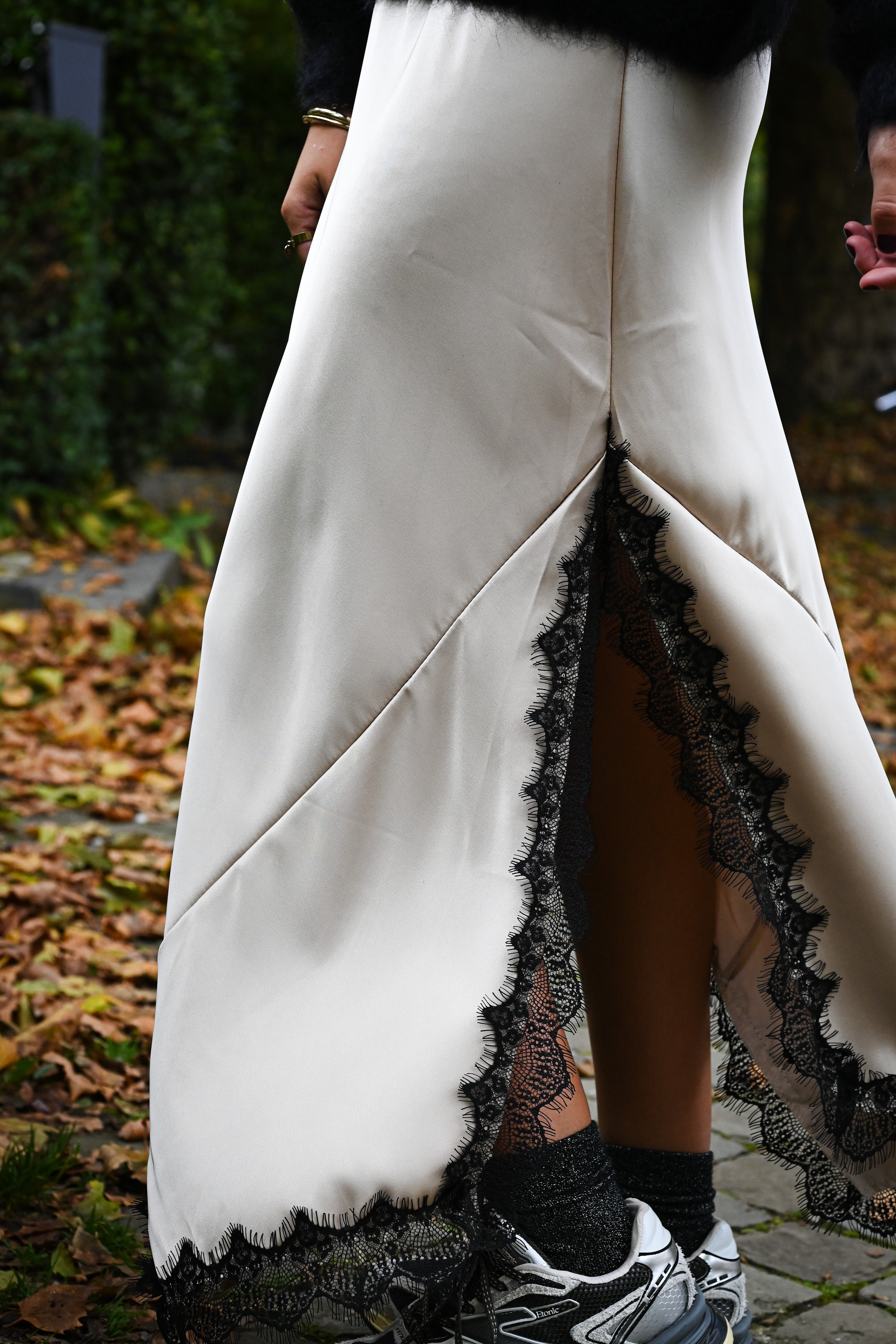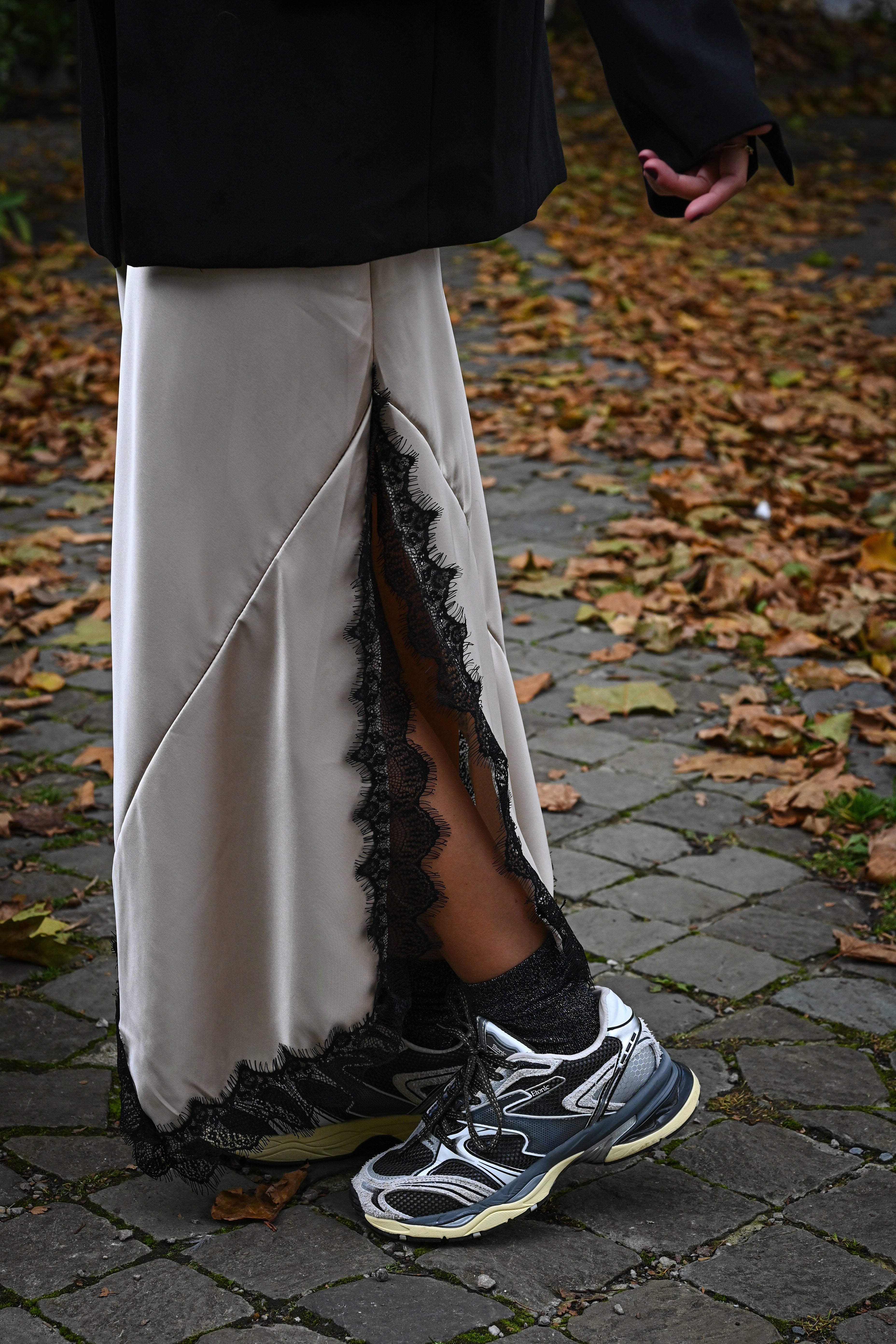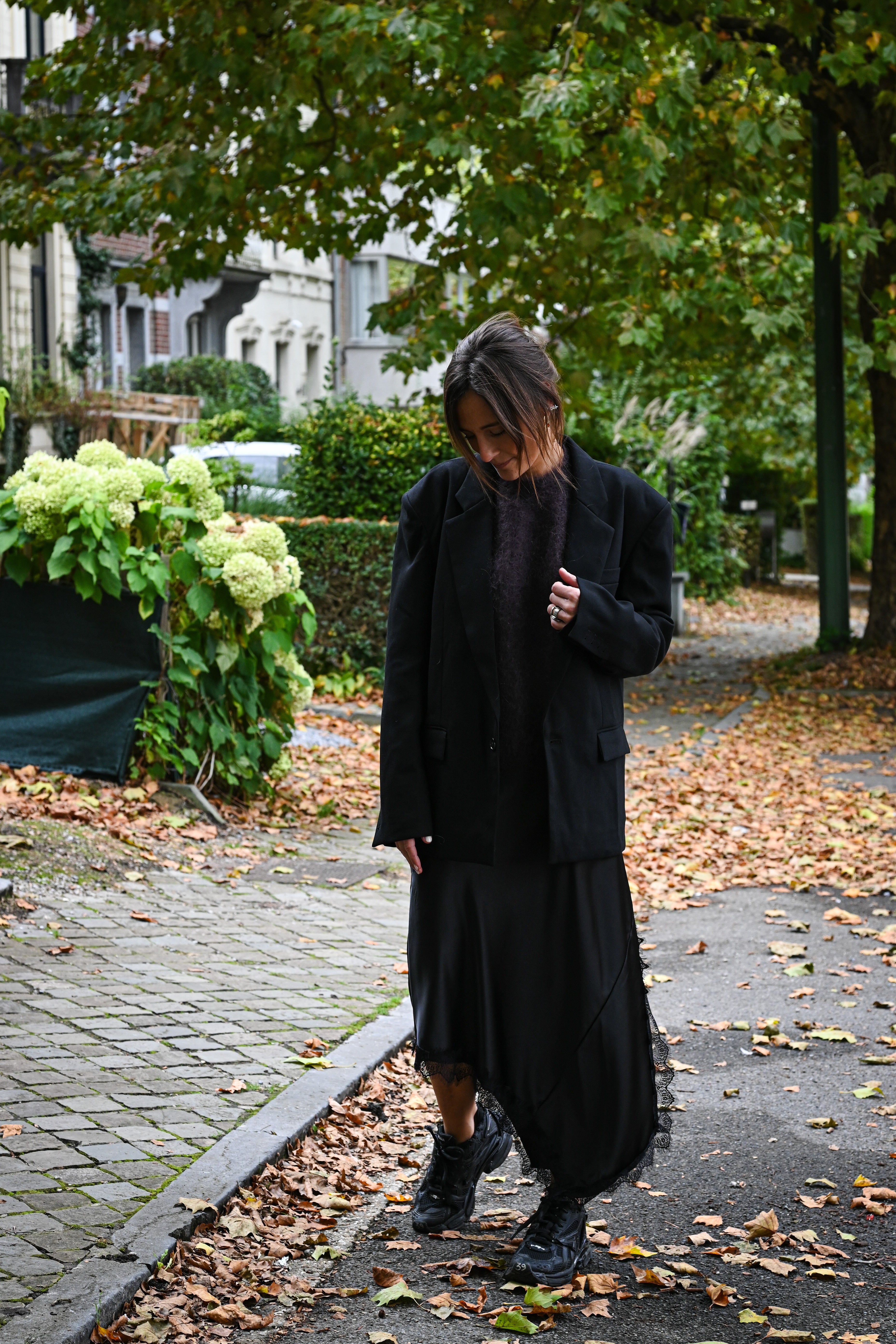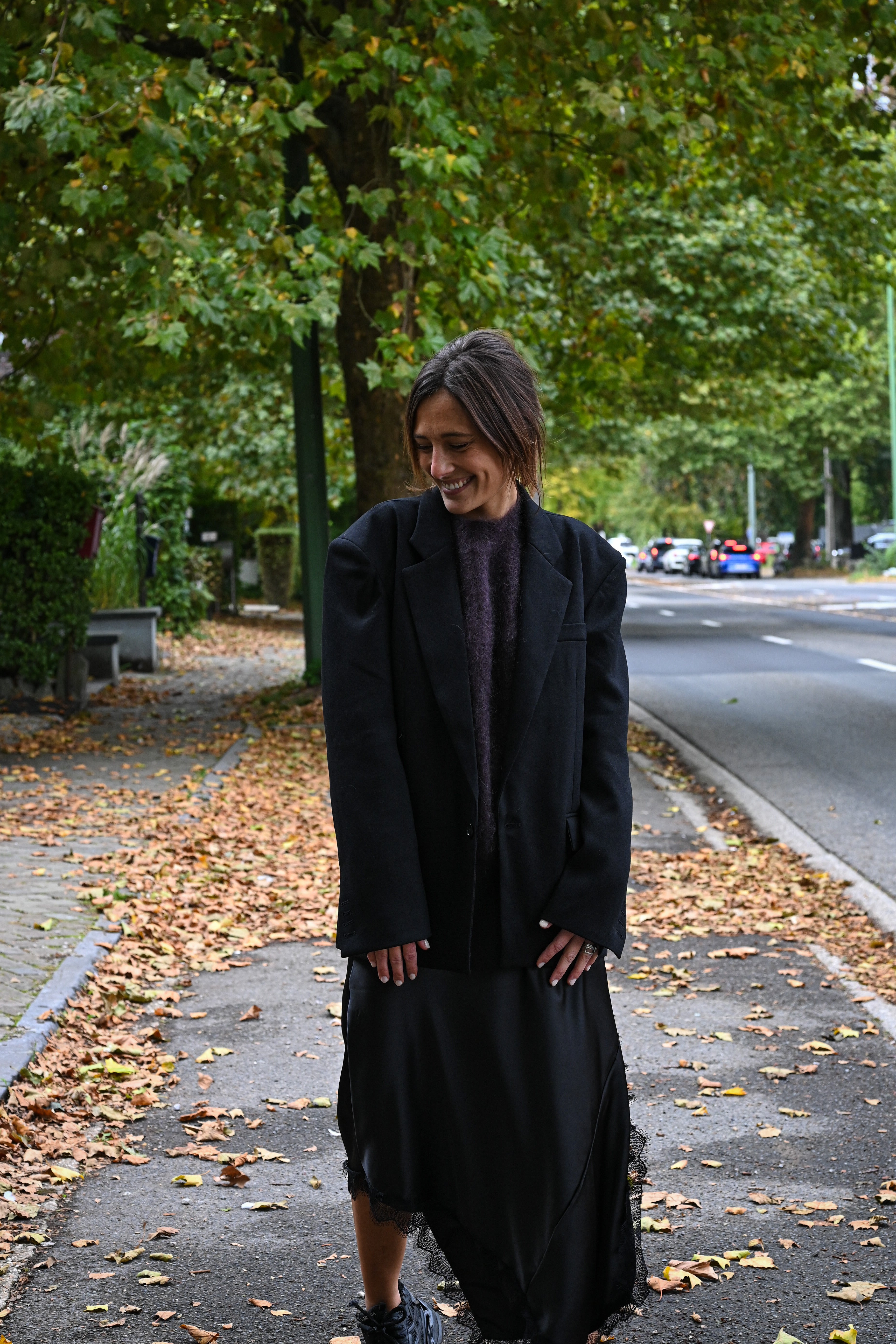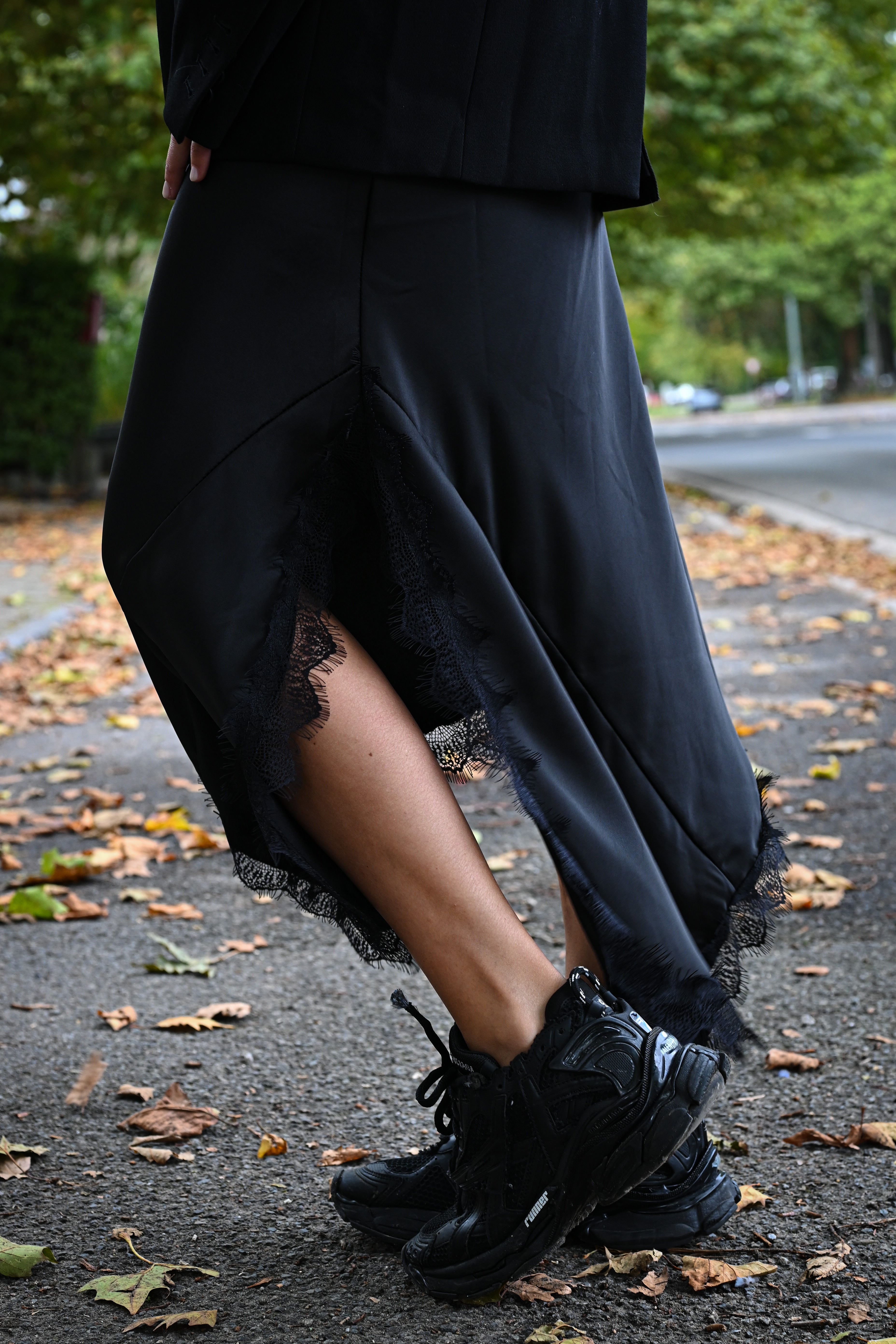 Jupe longue en satin avec une coupe asymétrique élégante, ornée de détails en dentelle. Dotée d’une taille élastiquée, elle s’adapte parfaitement en taille unique. Disponible en beige, chocolat, noir et bordeaux pour une allure raffinée et versatile.