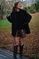 Découvrez la Jupe ZELIE, une pièce aux motifs léopard sophistiqués. Confectionnée en satin doux et fluide, cette jupe courte épouse élégamment vos formes. Disponible en tailles S, M et L pour un ajustement parfait. Un basique tendance qui transforme instantanément votre silhouette.