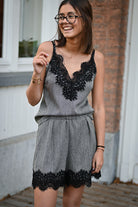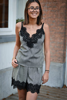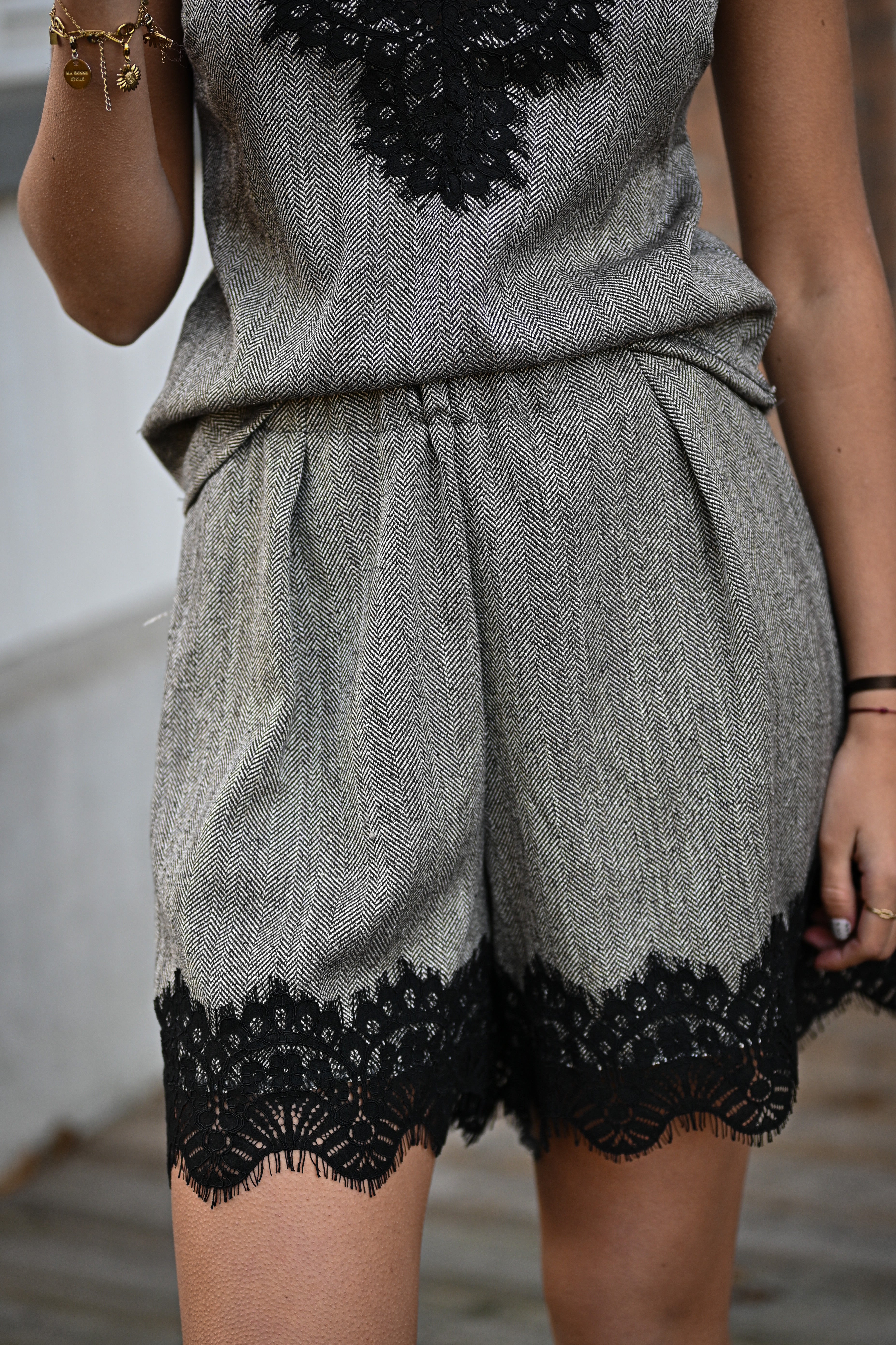 Découvrez le Short ESMEE, l'allié de votre garde-robe. Son élégant motif pied de poule associé à une délicate dentelle en bas crée une silhouette raffinée. Ceinture élastiquée pour un port sans effort, disponible en taille unique.