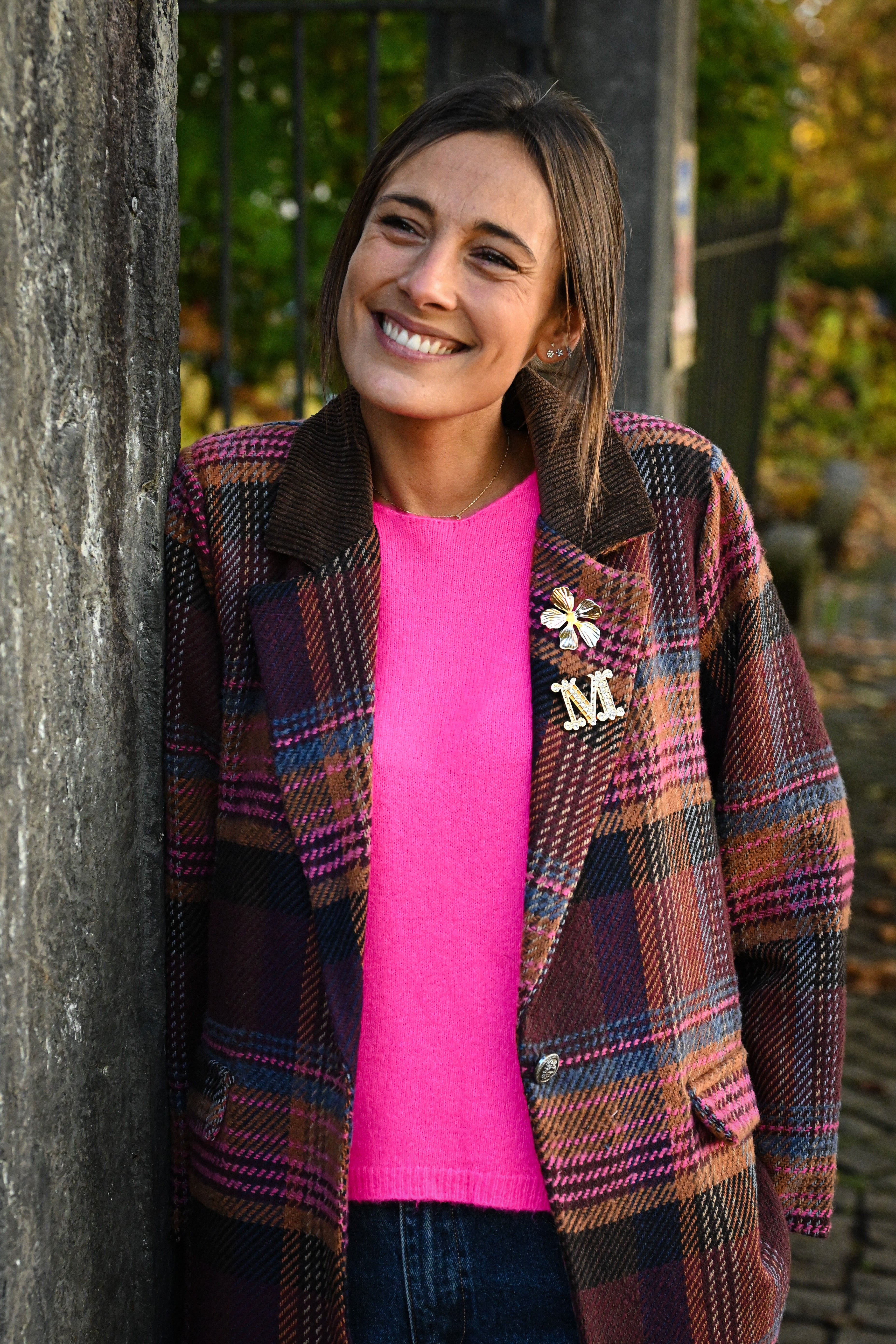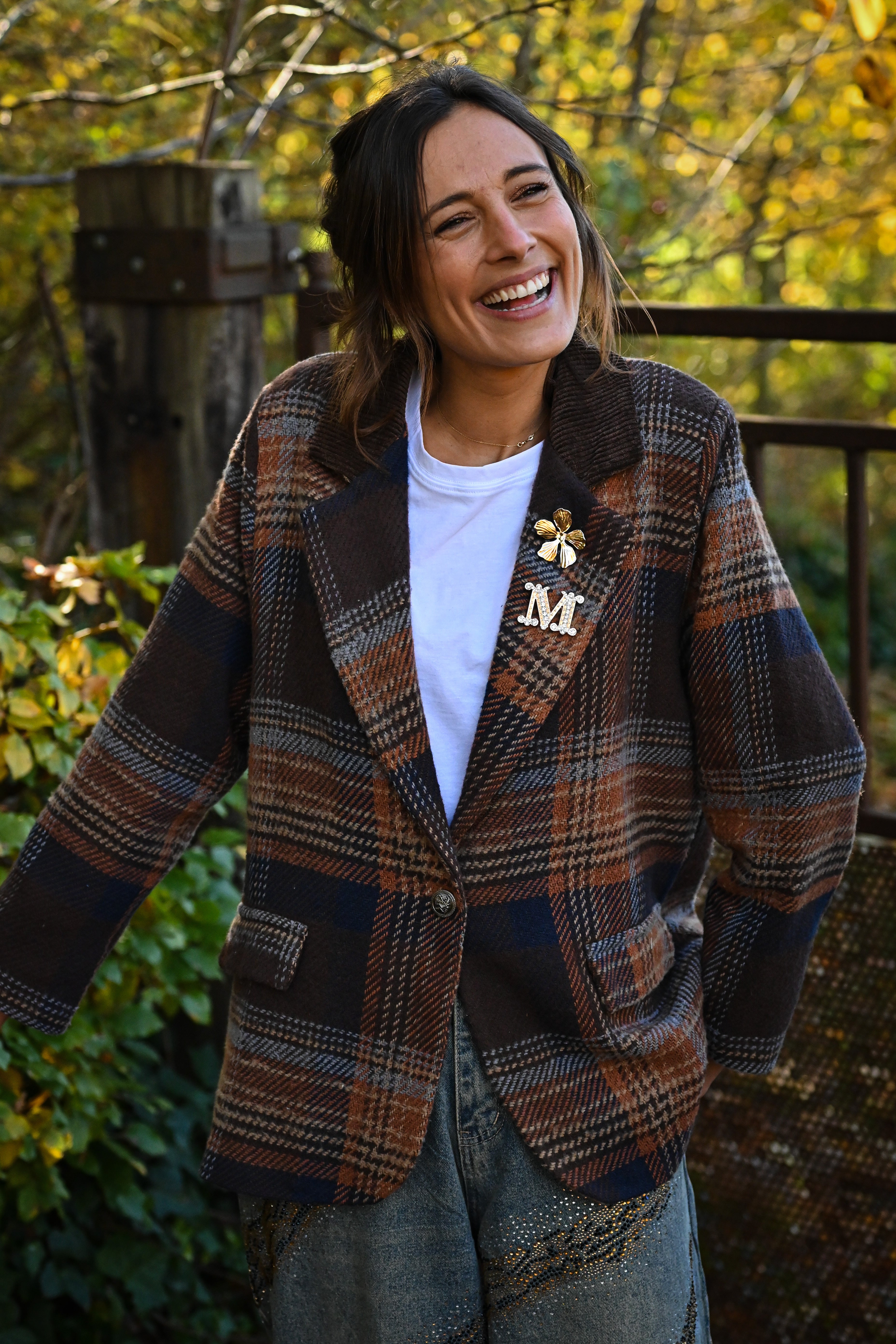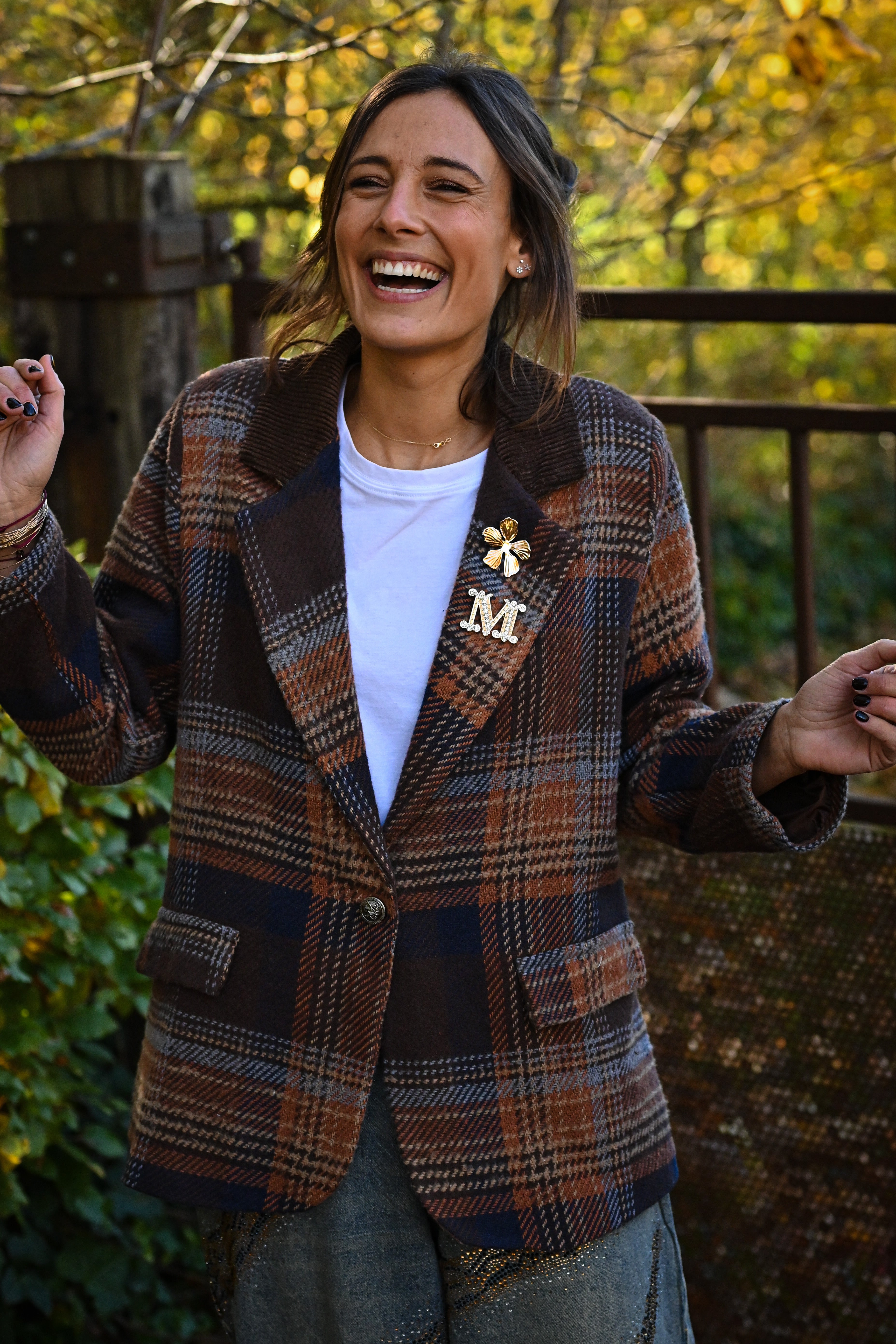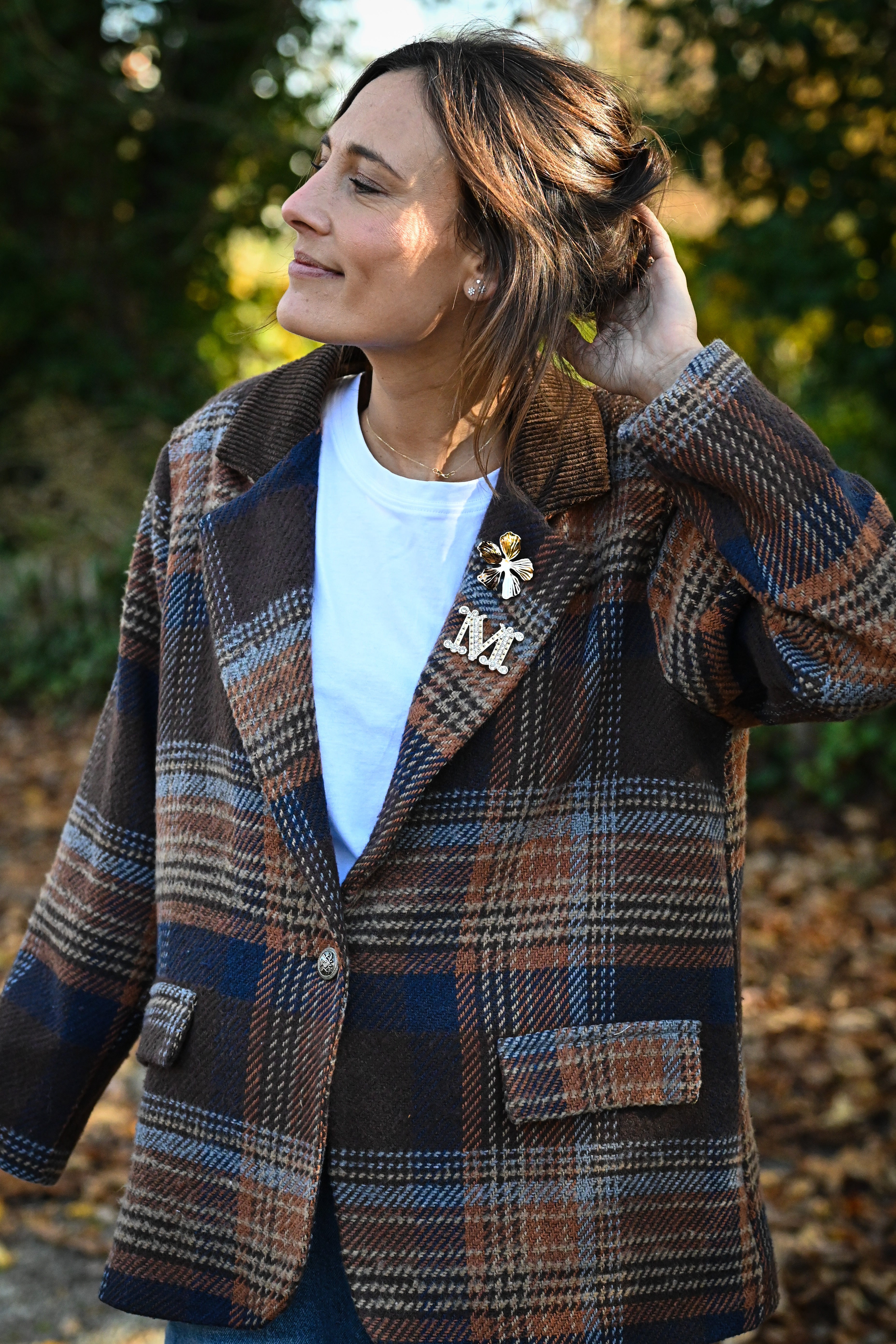 Découvrez le Blazer LUCIE, une pièce incontournable qui allie élégance et polyvalence. Ses manches longues et son motif à carreaux subtil dans une palette de rose, chocolat, bleu, bordeaux et camel en font un basique sophistiqué. Deux broches assorties complètent ce look raffiné, parfait pour transformer vos tenues du jour au soir. Une veste à avoir absolument dans votre garde-robe.