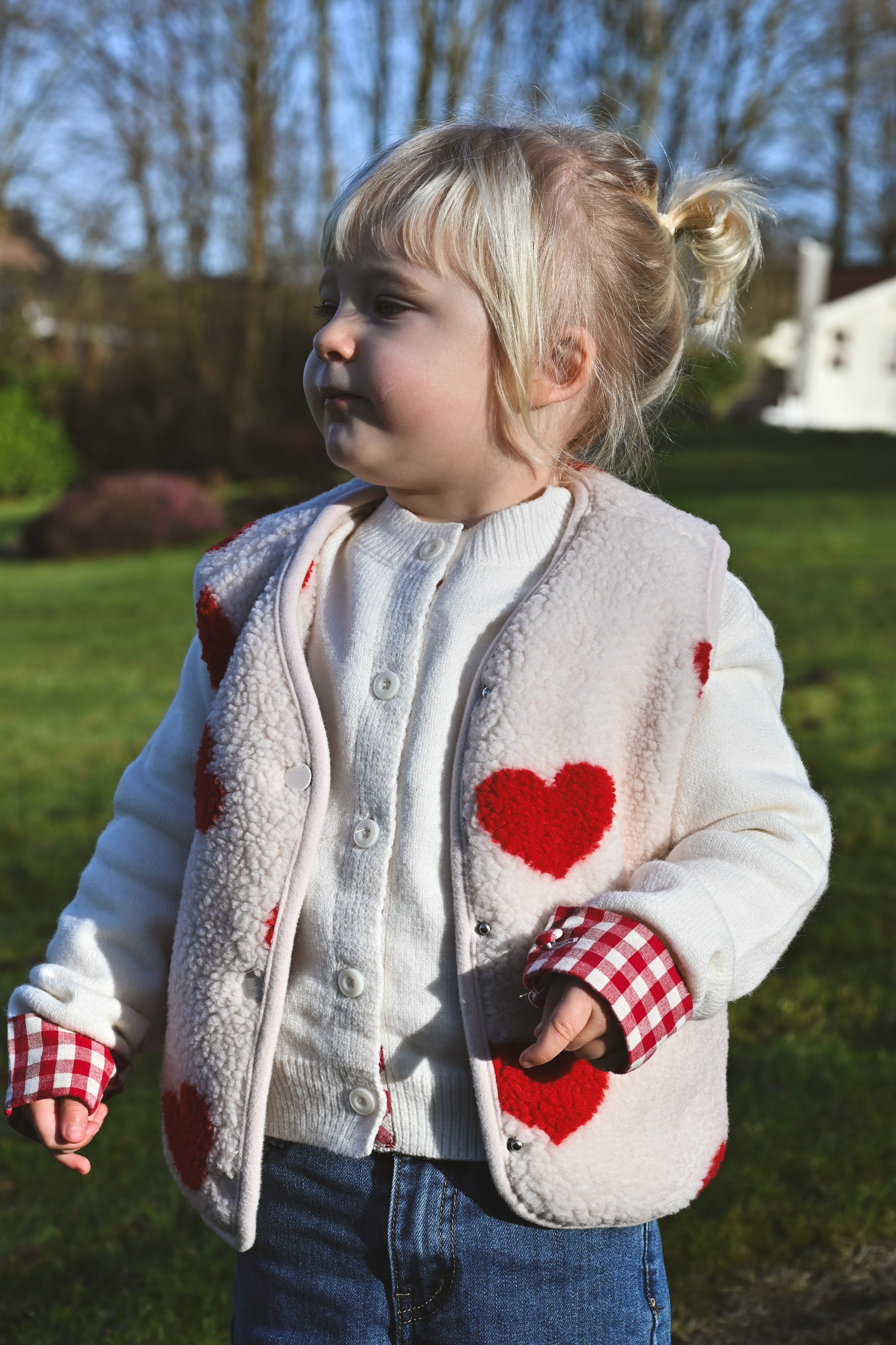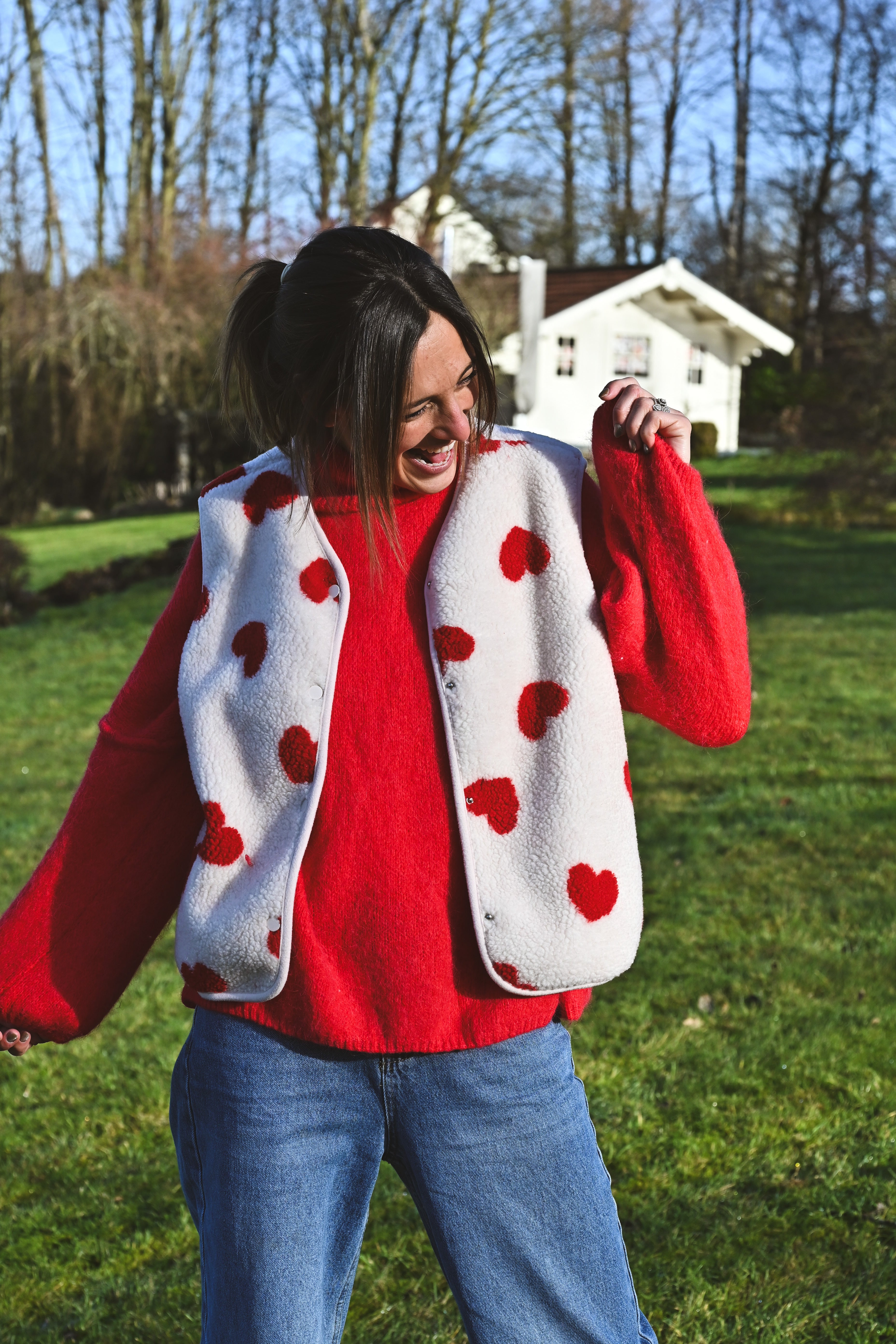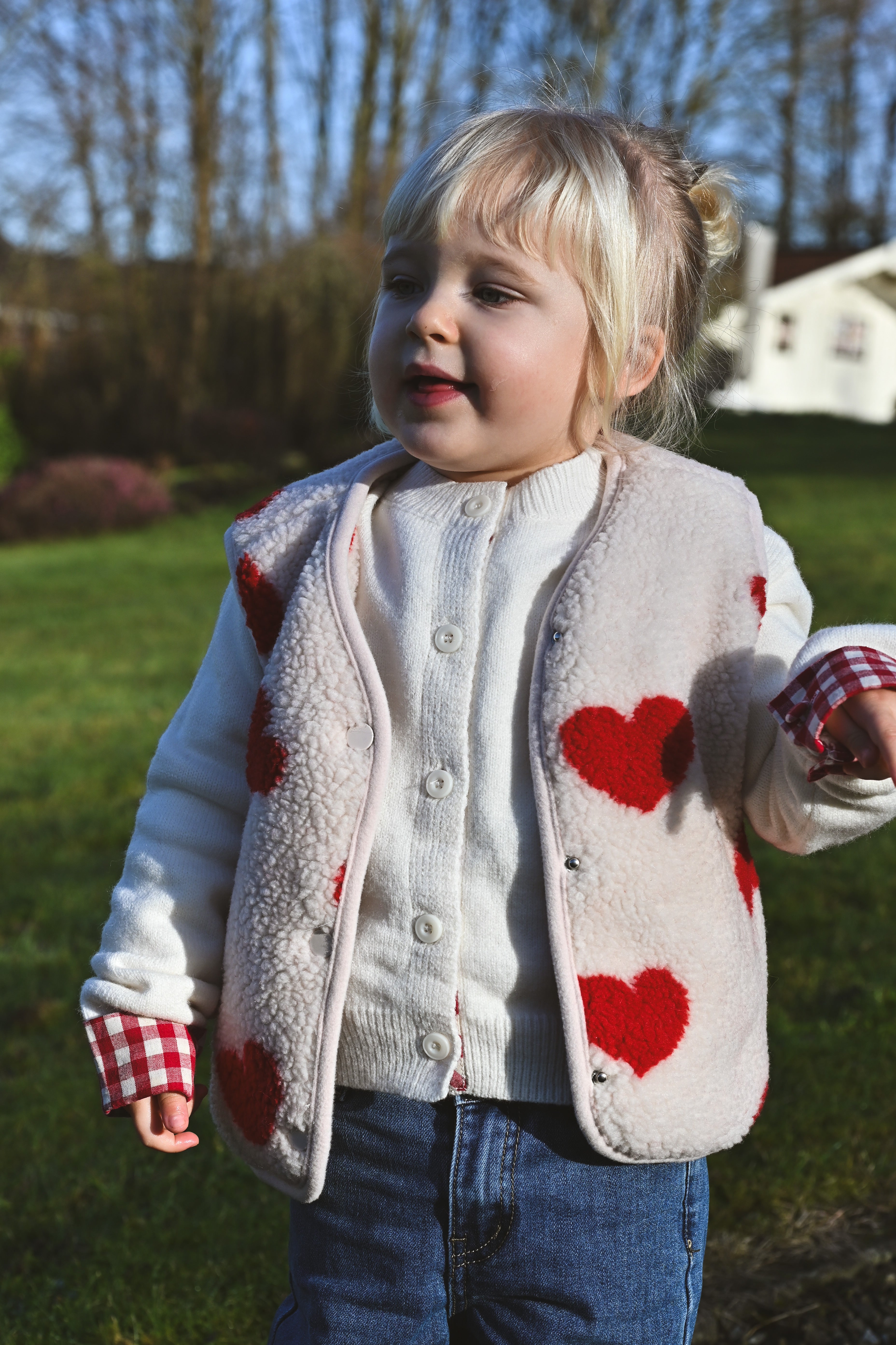 Craquez pour cette veste sans manche ultra-douce en moumoute beige ornée de cœurs rouges. Parfaite pour les enfants et les mamans qui veulent assortir leurs looks ! Confortable et tendance, elle devient l'incontournable de la garde-robe hivernale en duo.