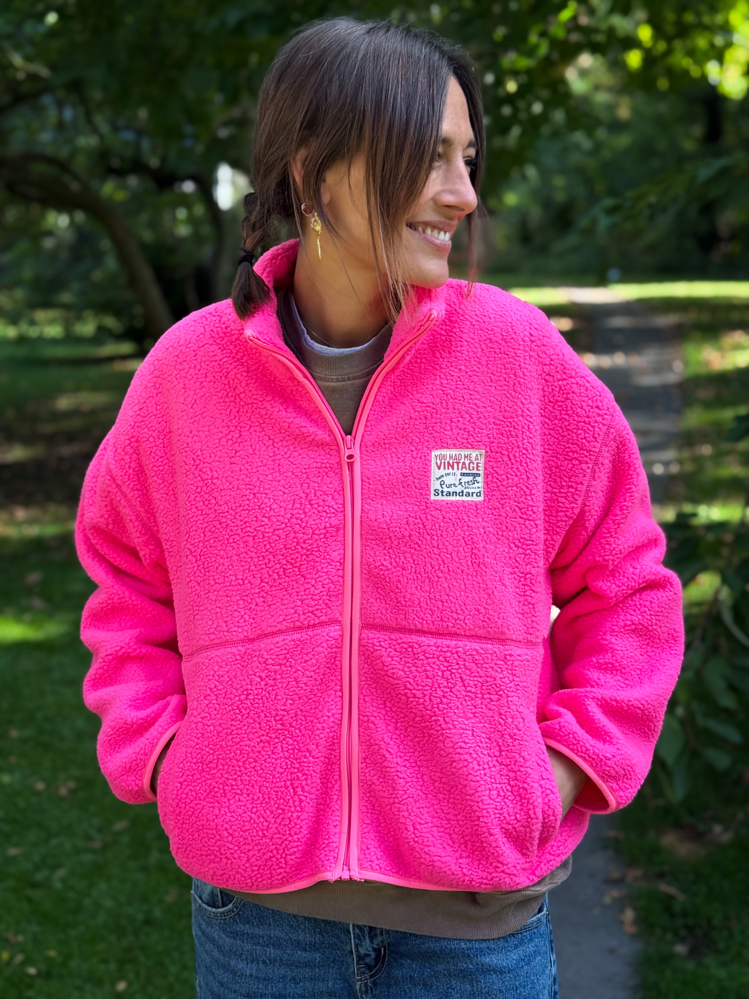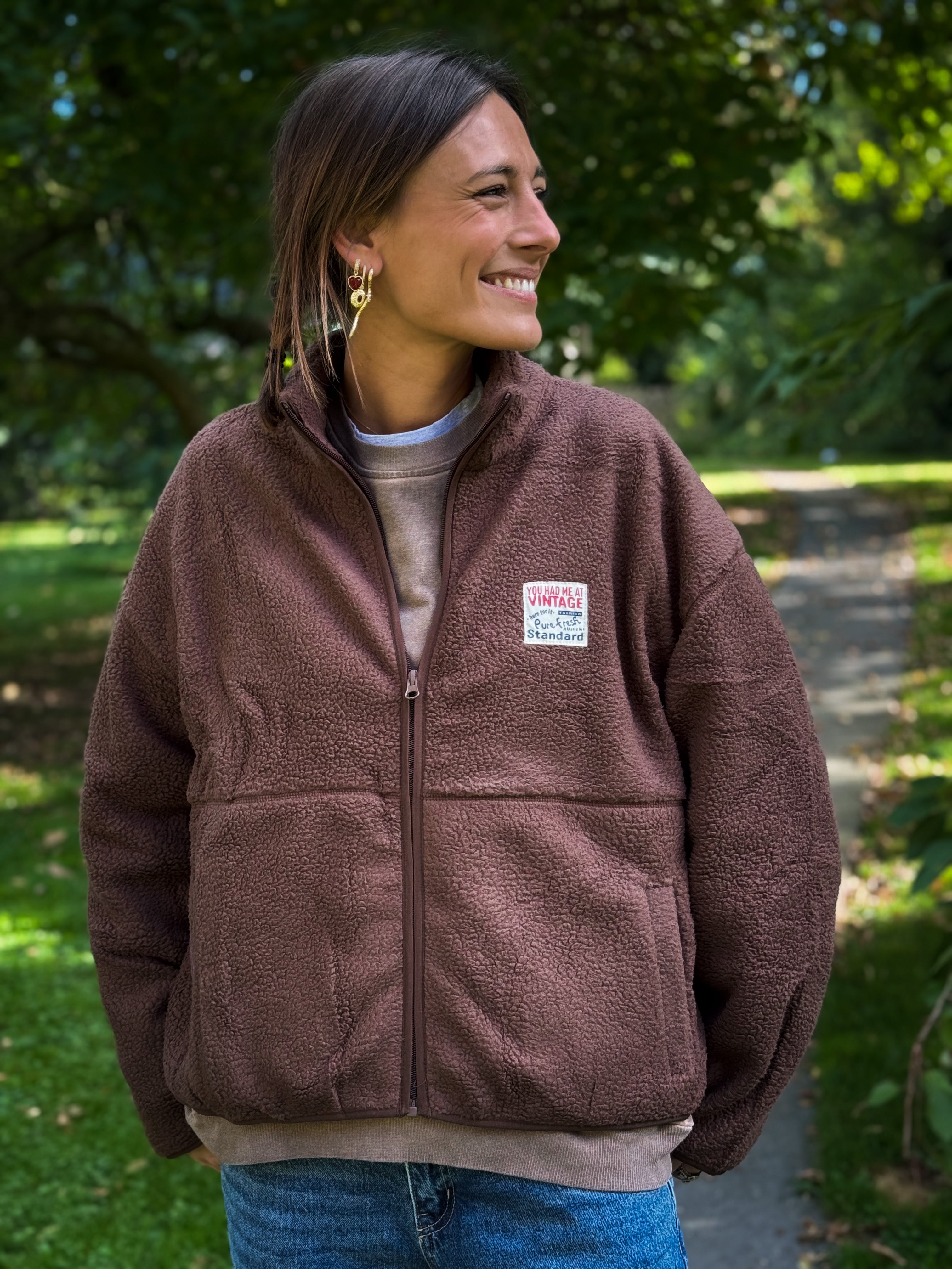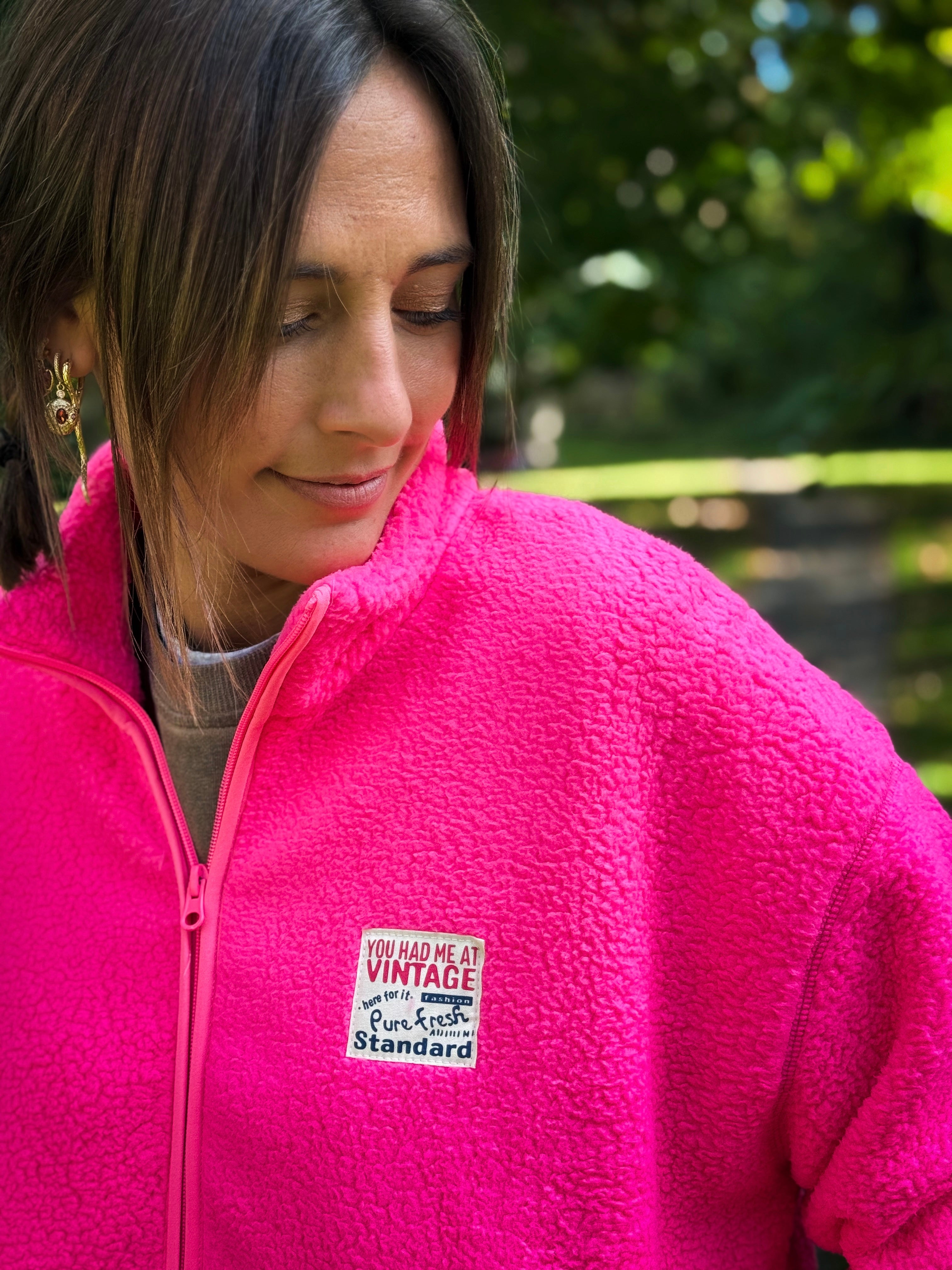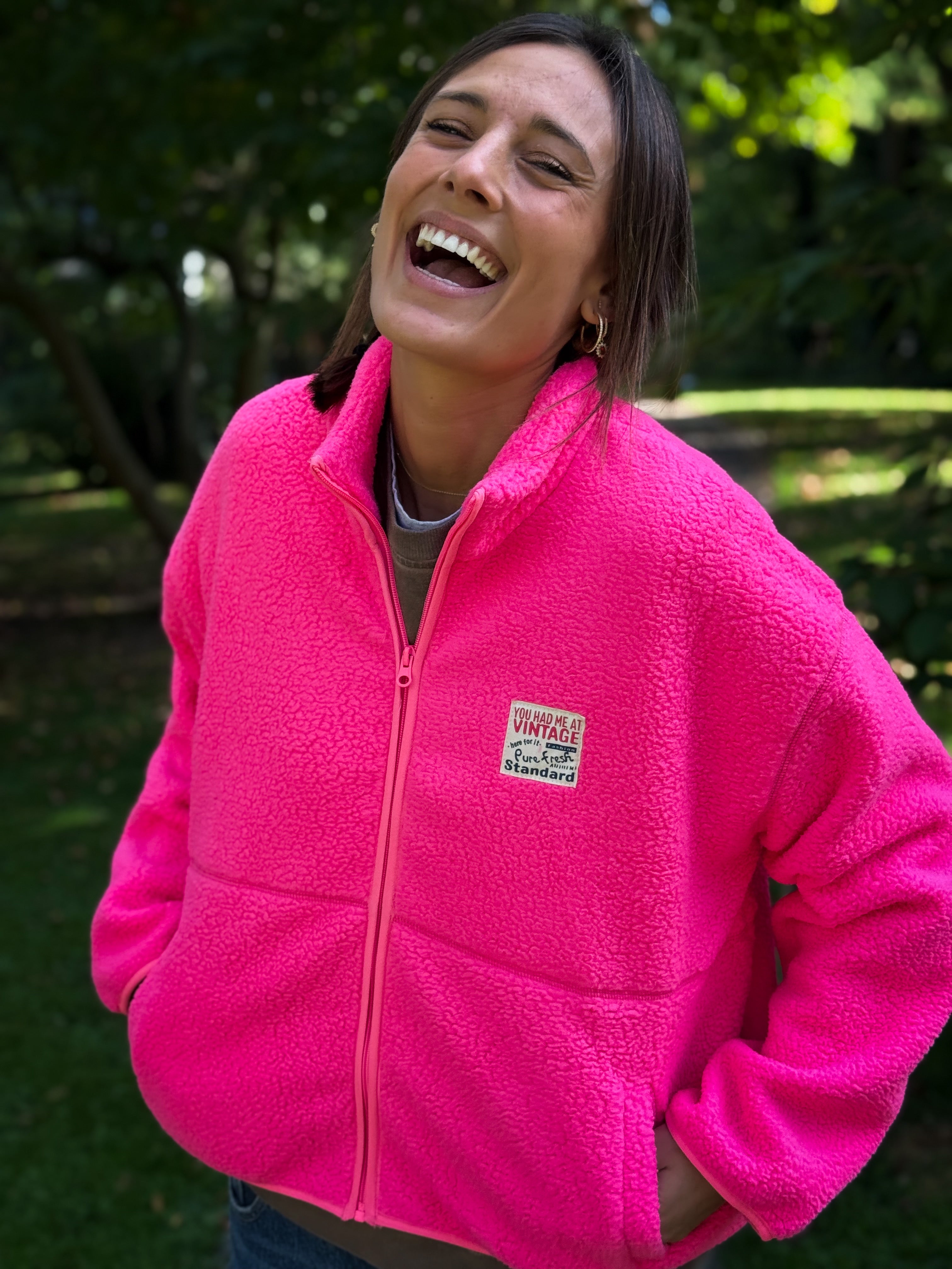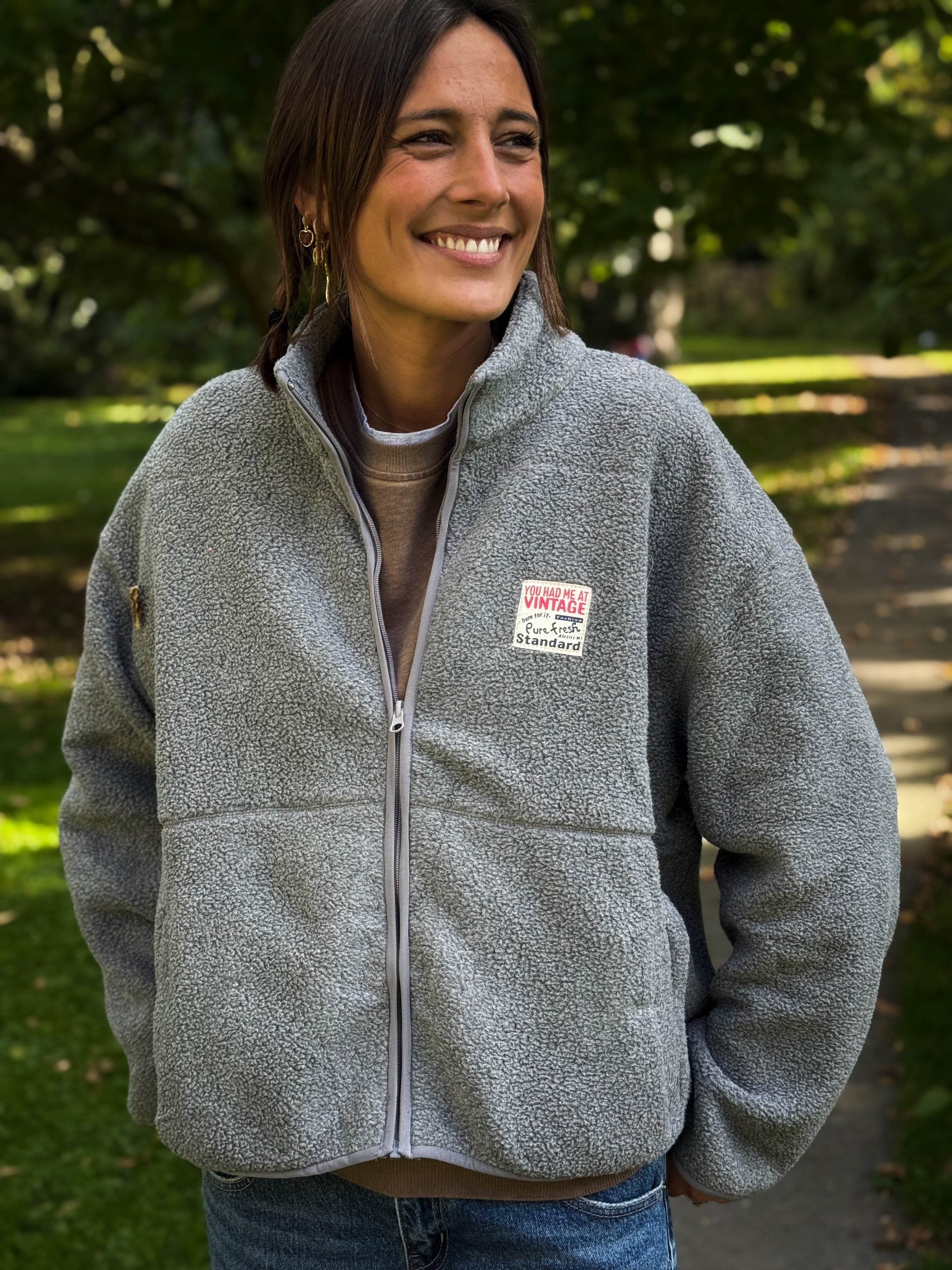 Ce pull en moumoute, doté d'une fermeture éclair et d'un col montant, comprend deux poches pratiques et des manches longues. Il est disponible en tailles S/M et M/L, alliant confort et style pour vos journées fraîches.