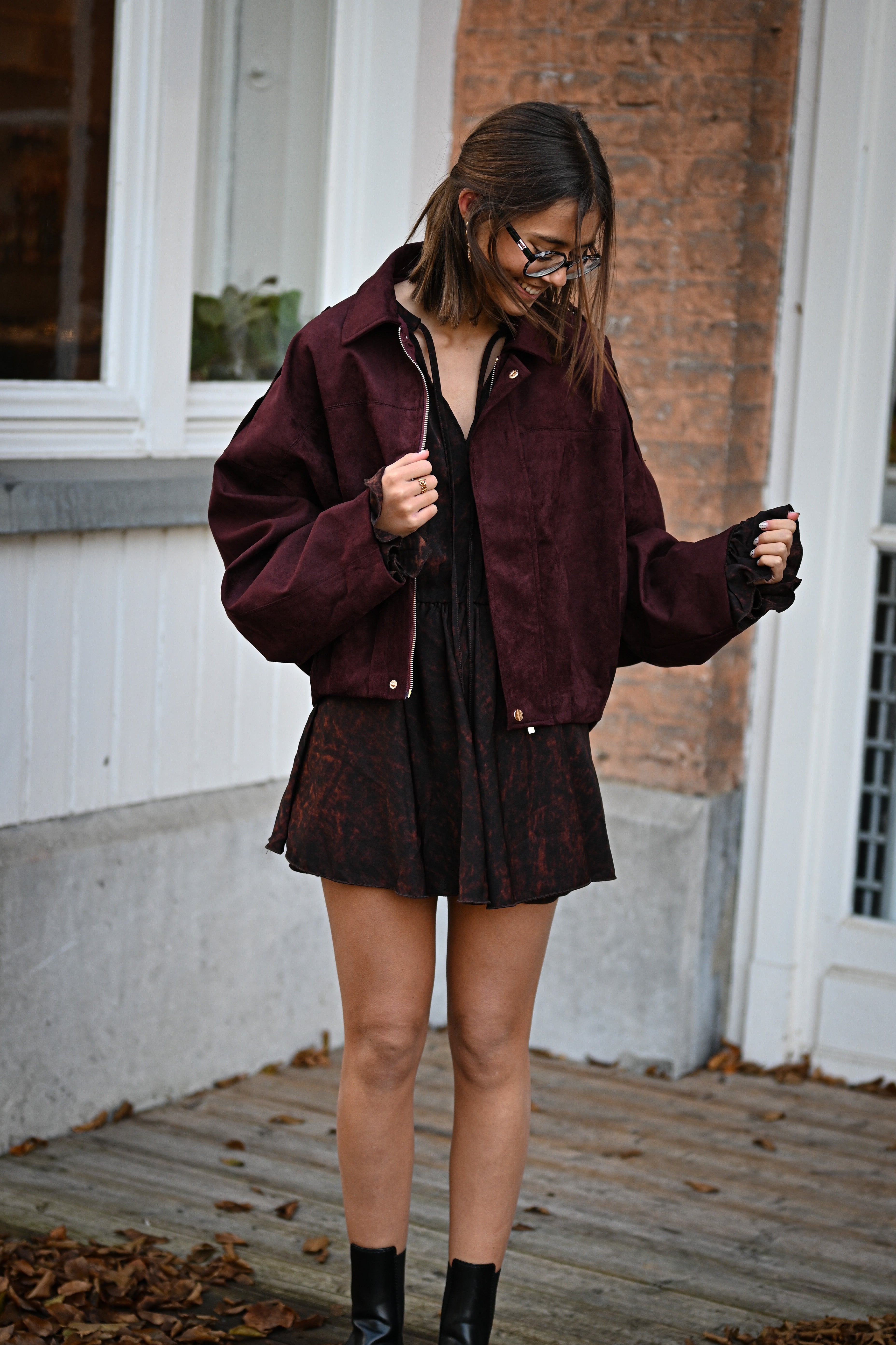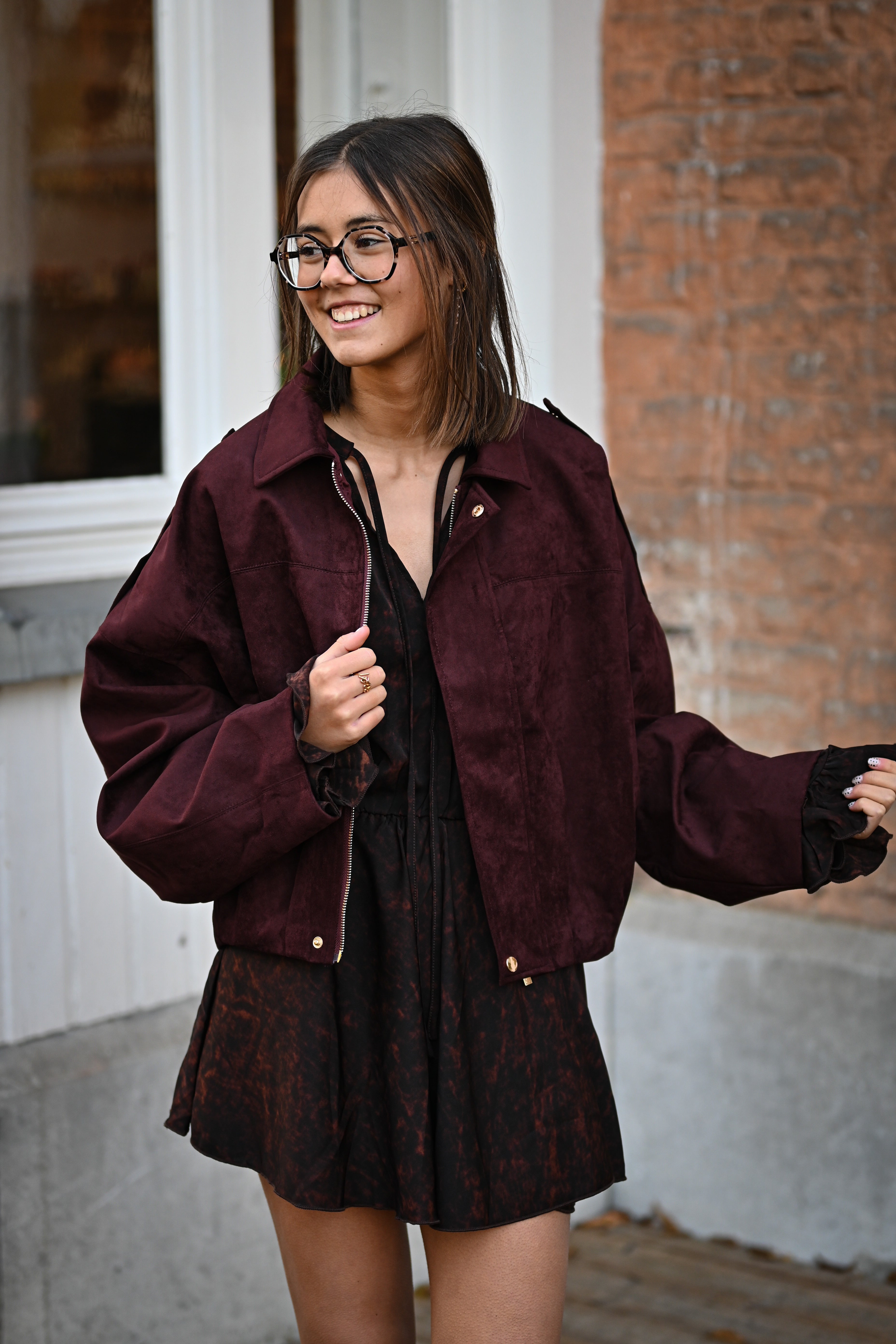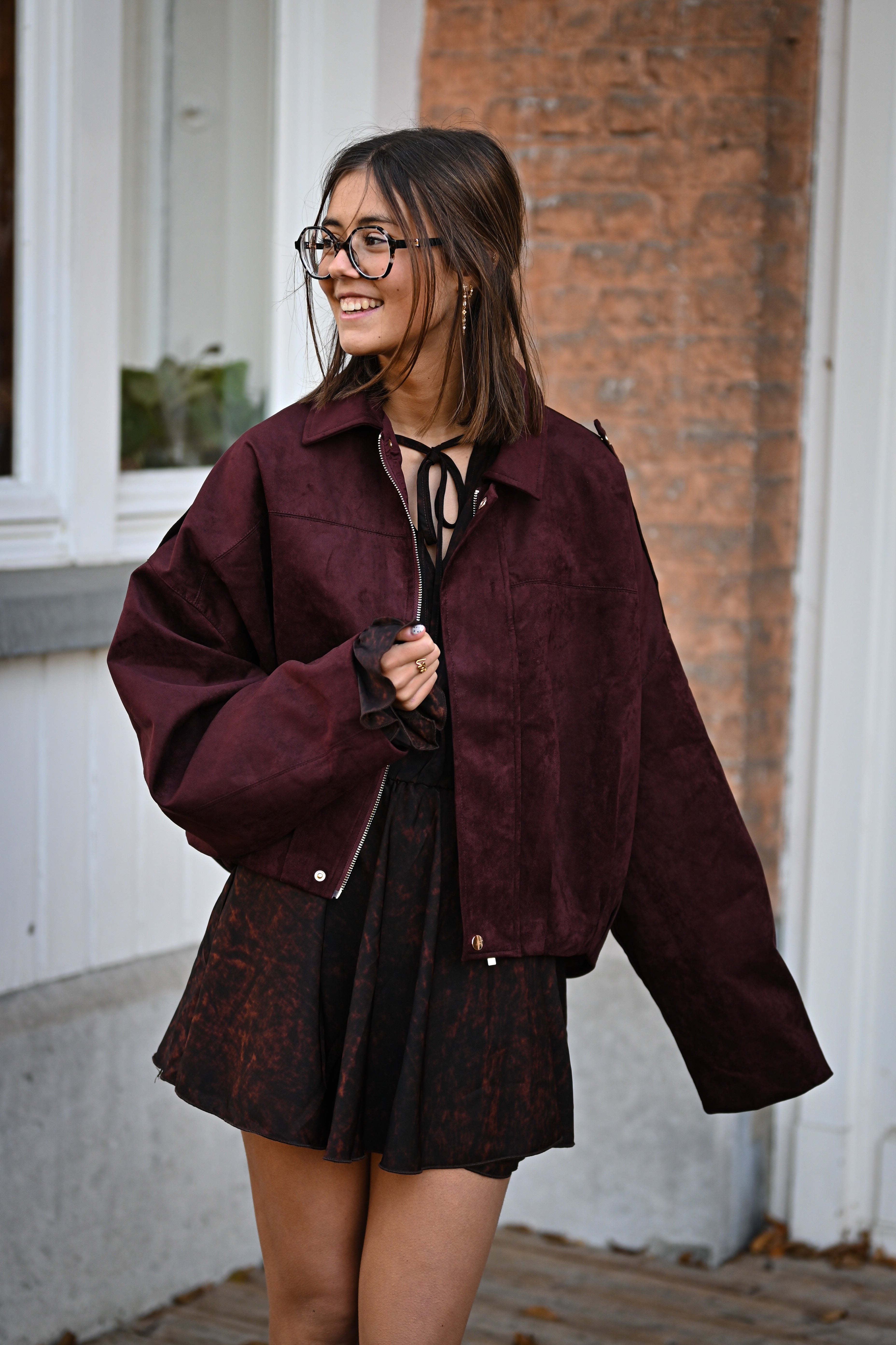 Découvrez la veste GABRIELLA, un incontournable de votre garde-robe. Confectionnée en suédine douce, elle arbore des détails dorés raffinés : tirette et boutons qui capturent la lumière. Disponible en tailles S, M et L pour un ajustement parfait.