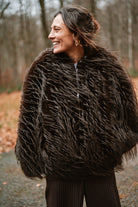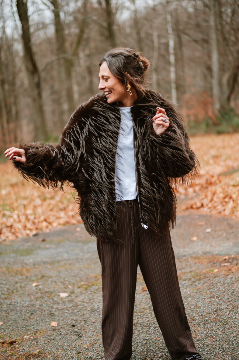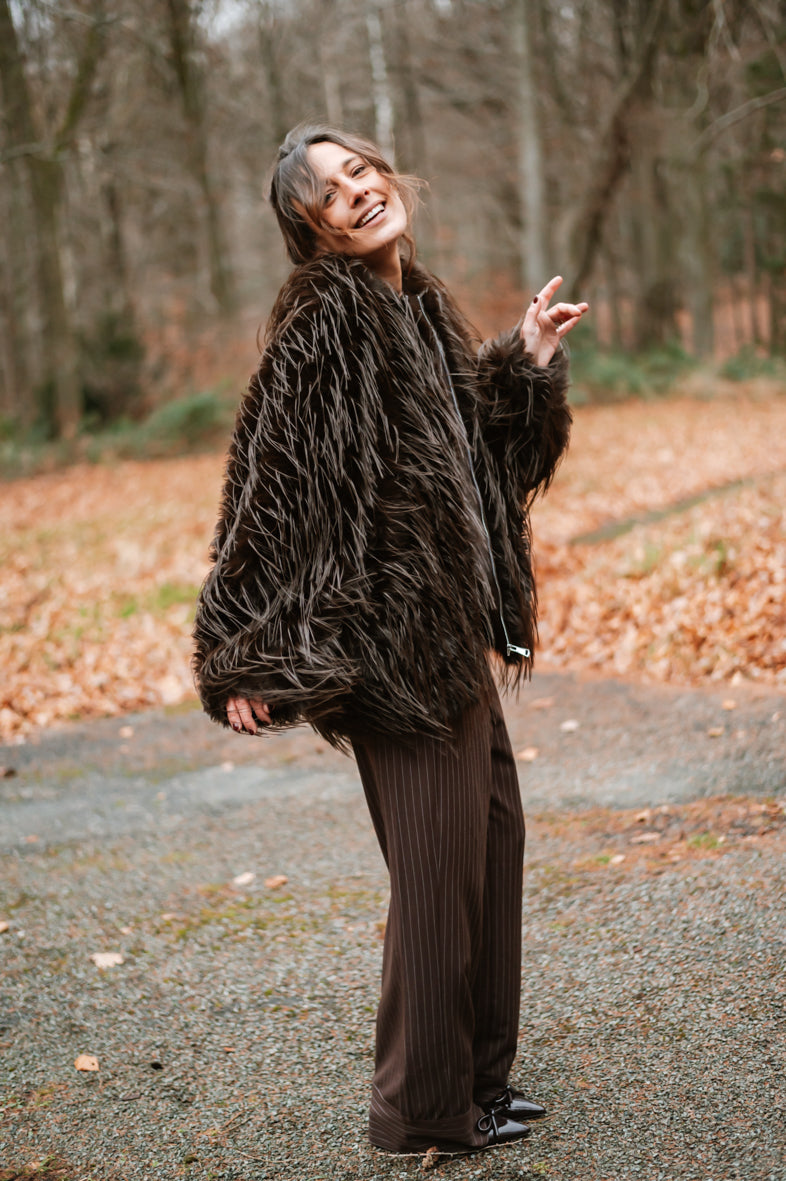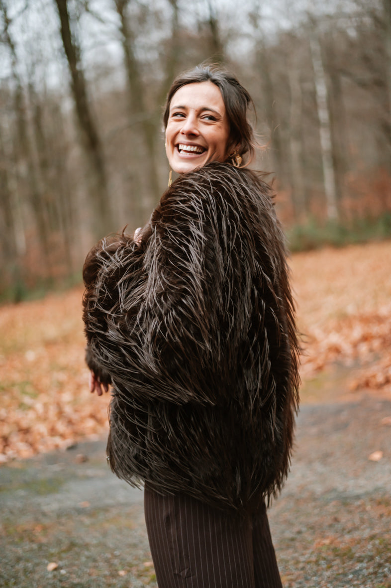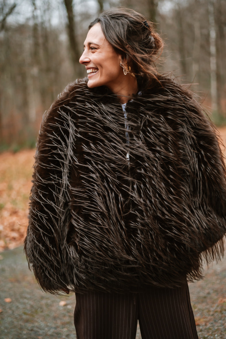Découvrez la veste GABY, un incontournable de saison avec sa texture généreuse en fausse fourrure et poils longs. Confortable et polyvalente, elle s'adapte à tous grâce à sa coupe taille unique. Un accessoire chic qui transforme instantanément votre look.