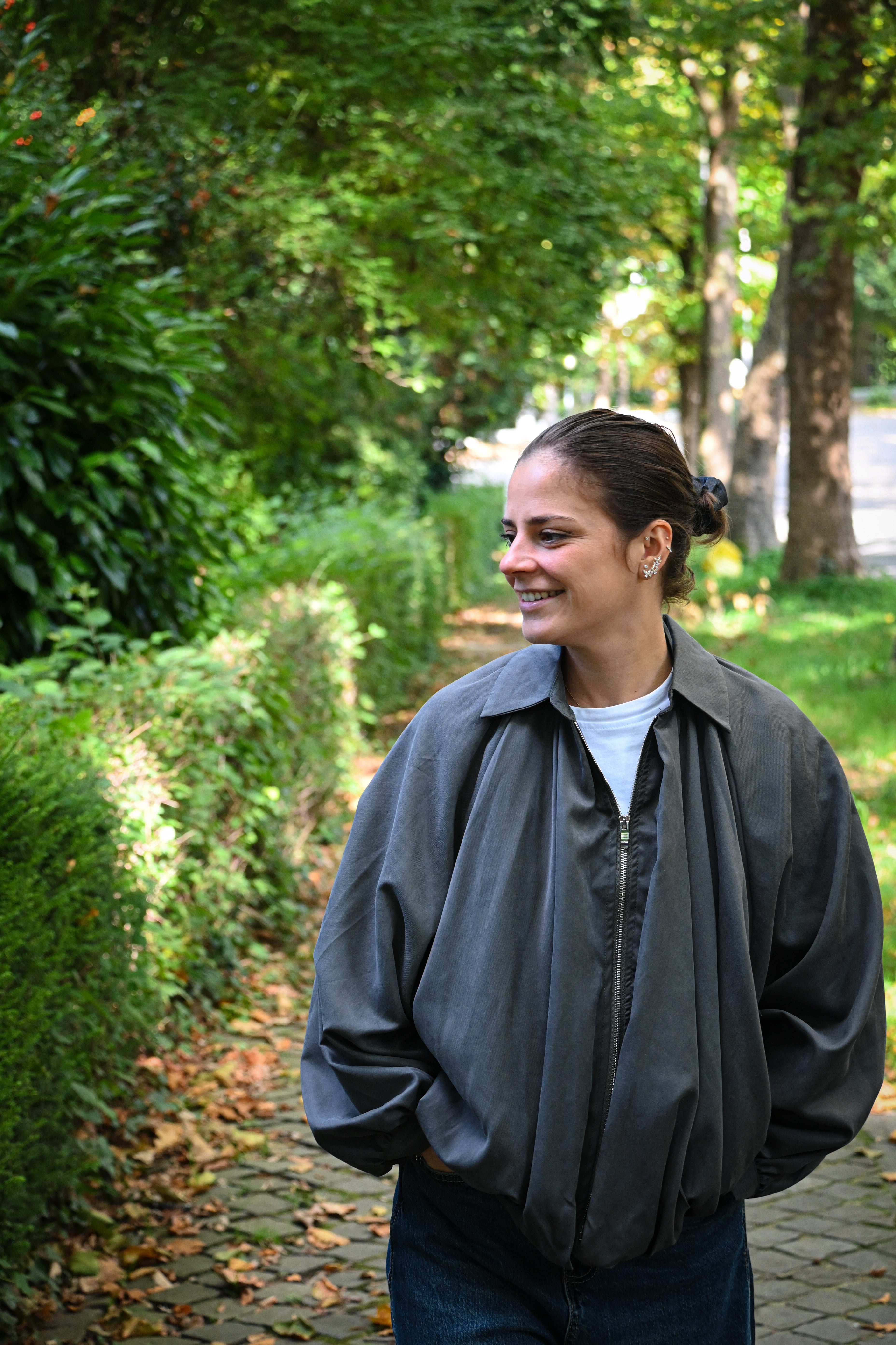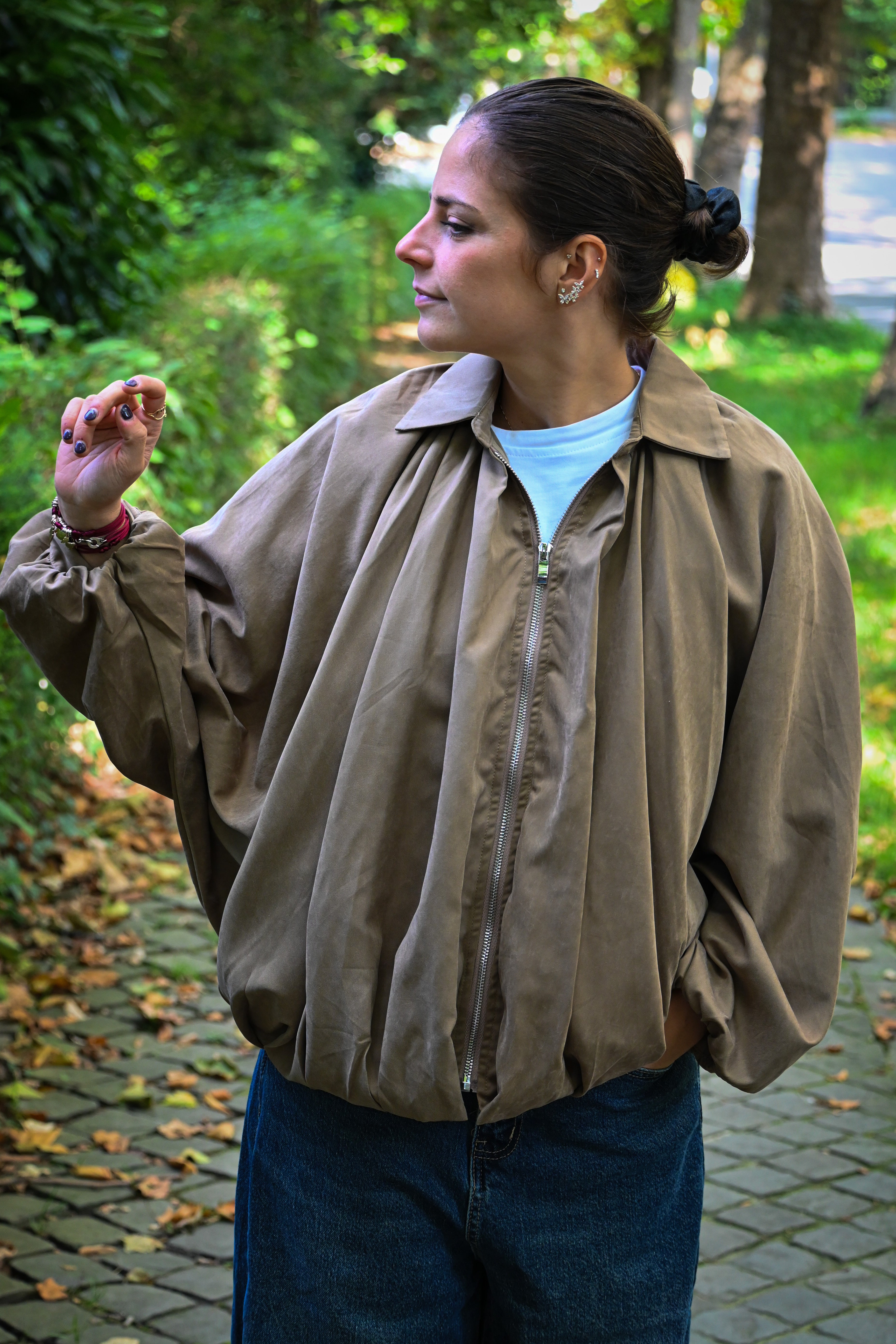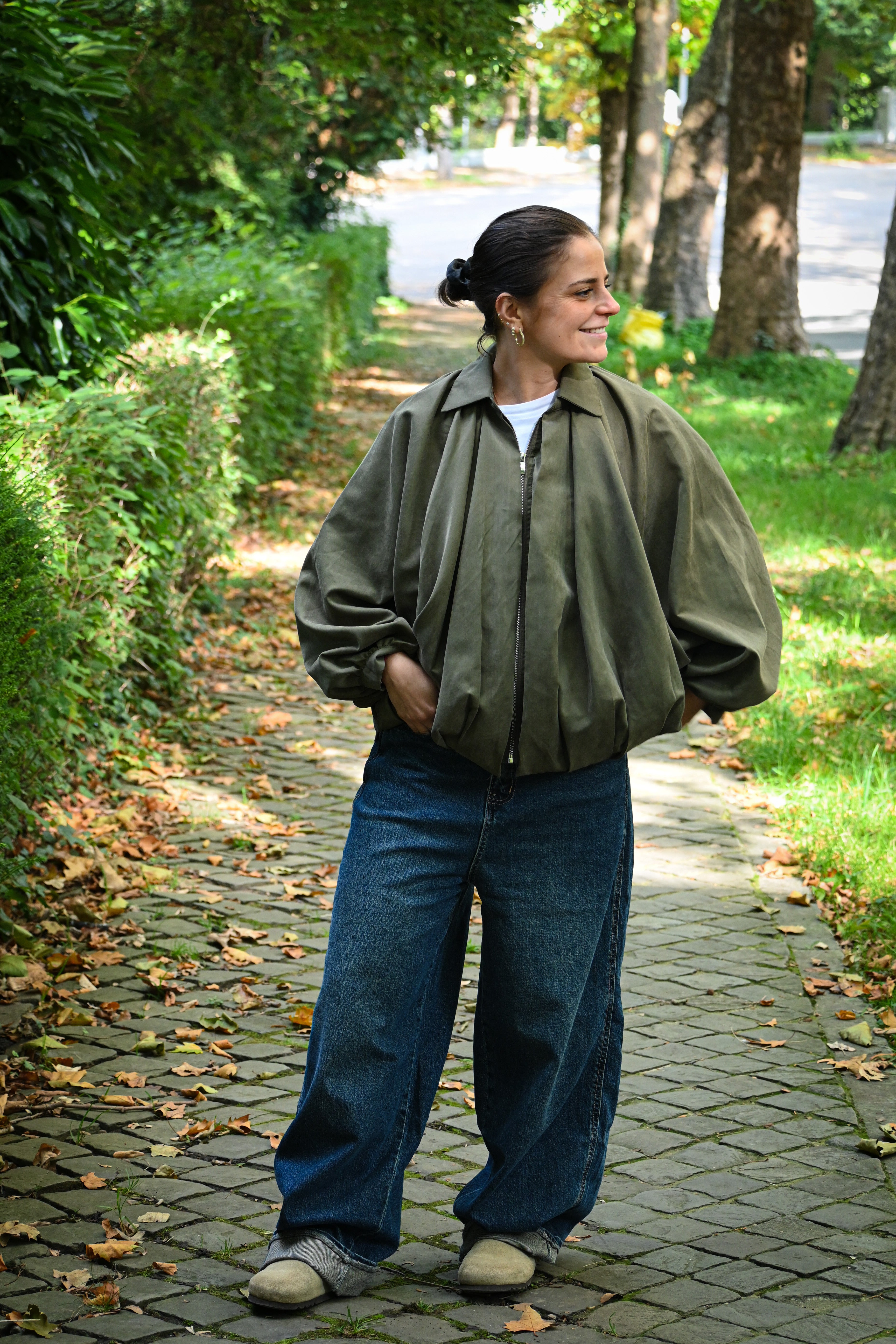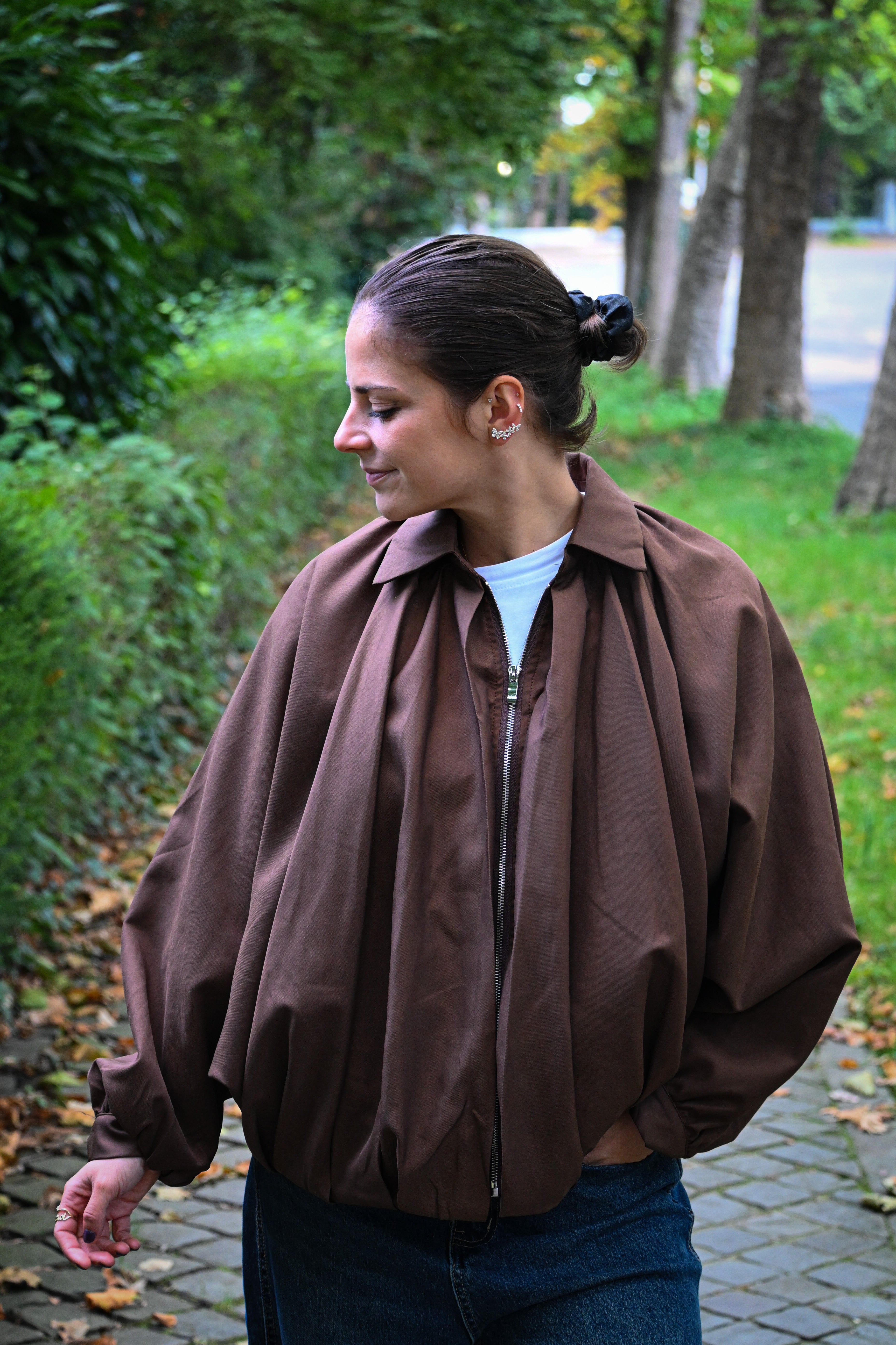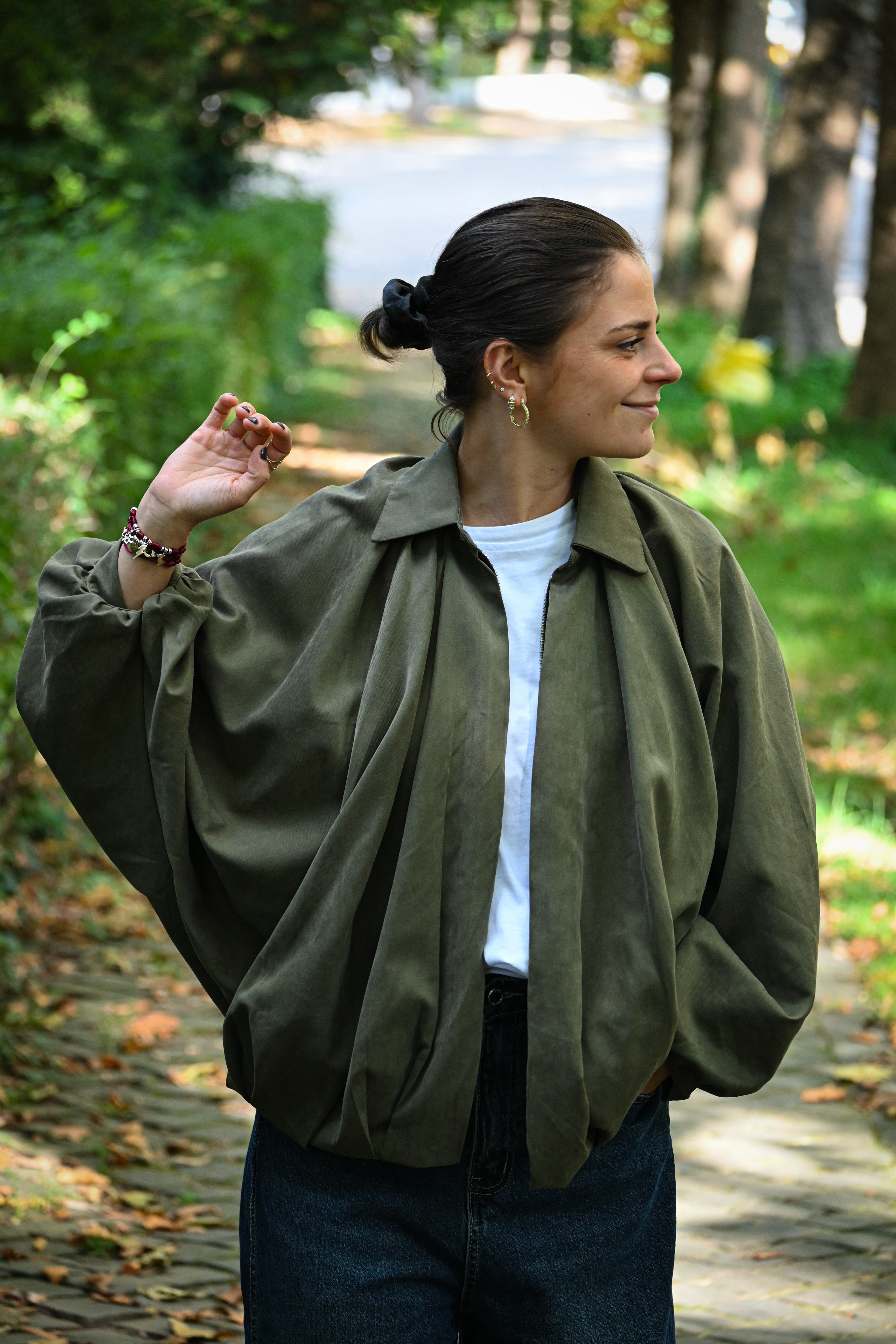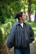 Cette veste courte de style bomber, dotée d’un col polo et d’une fermeture éclair, est resserrée à la base. Proposée en taille unique, elle convient parfaitement à toutes les silhouettes et morphologies.