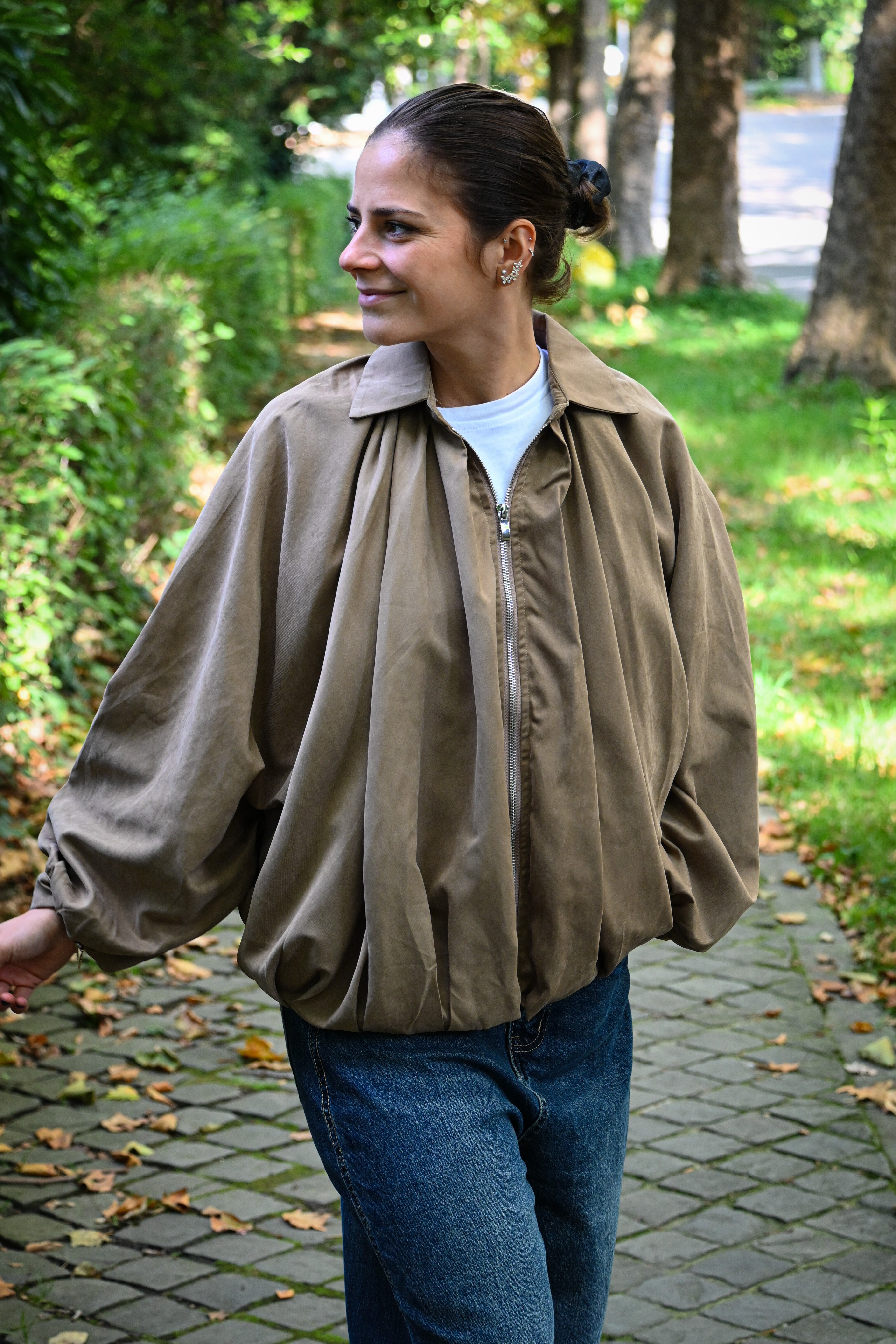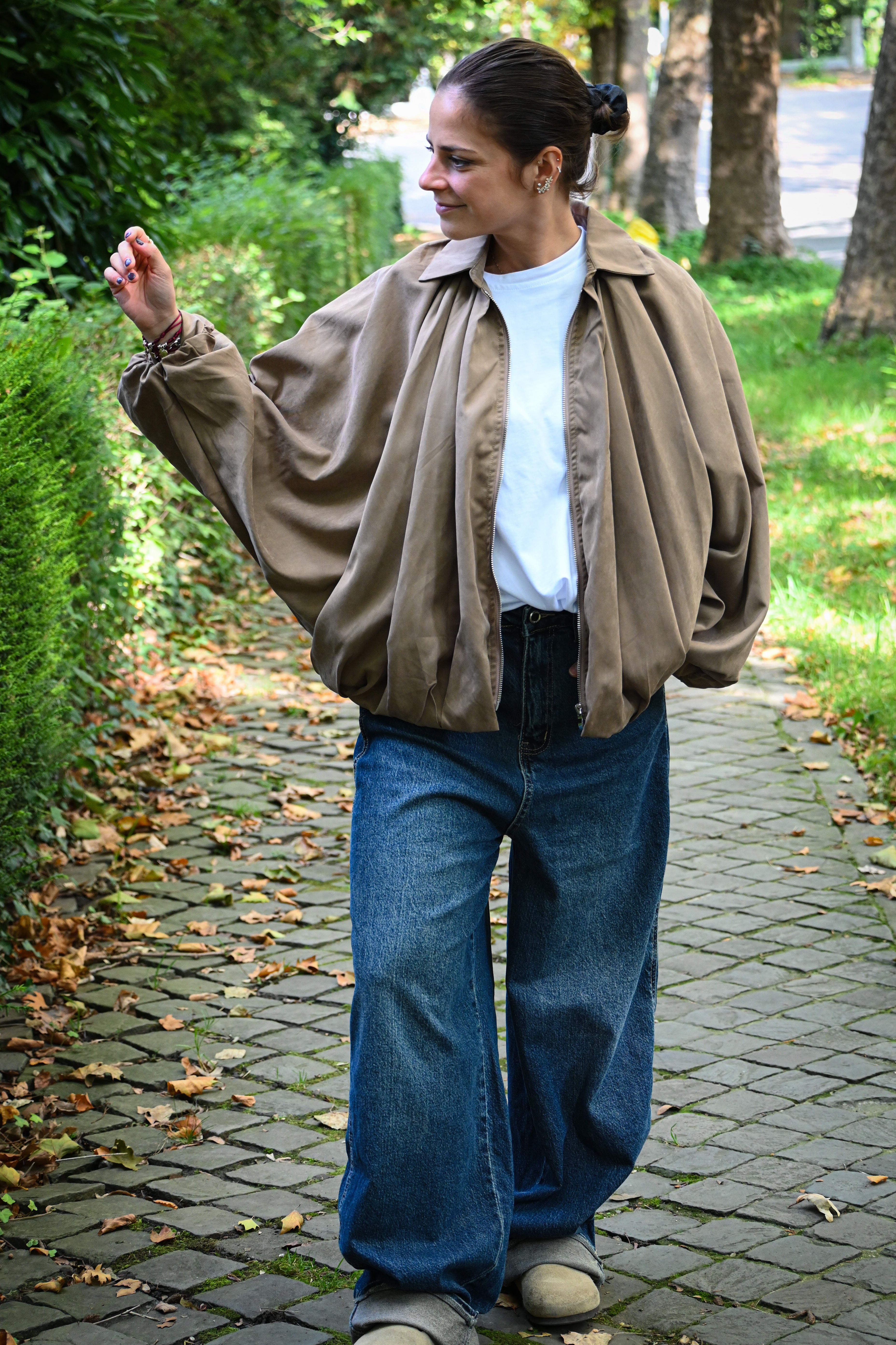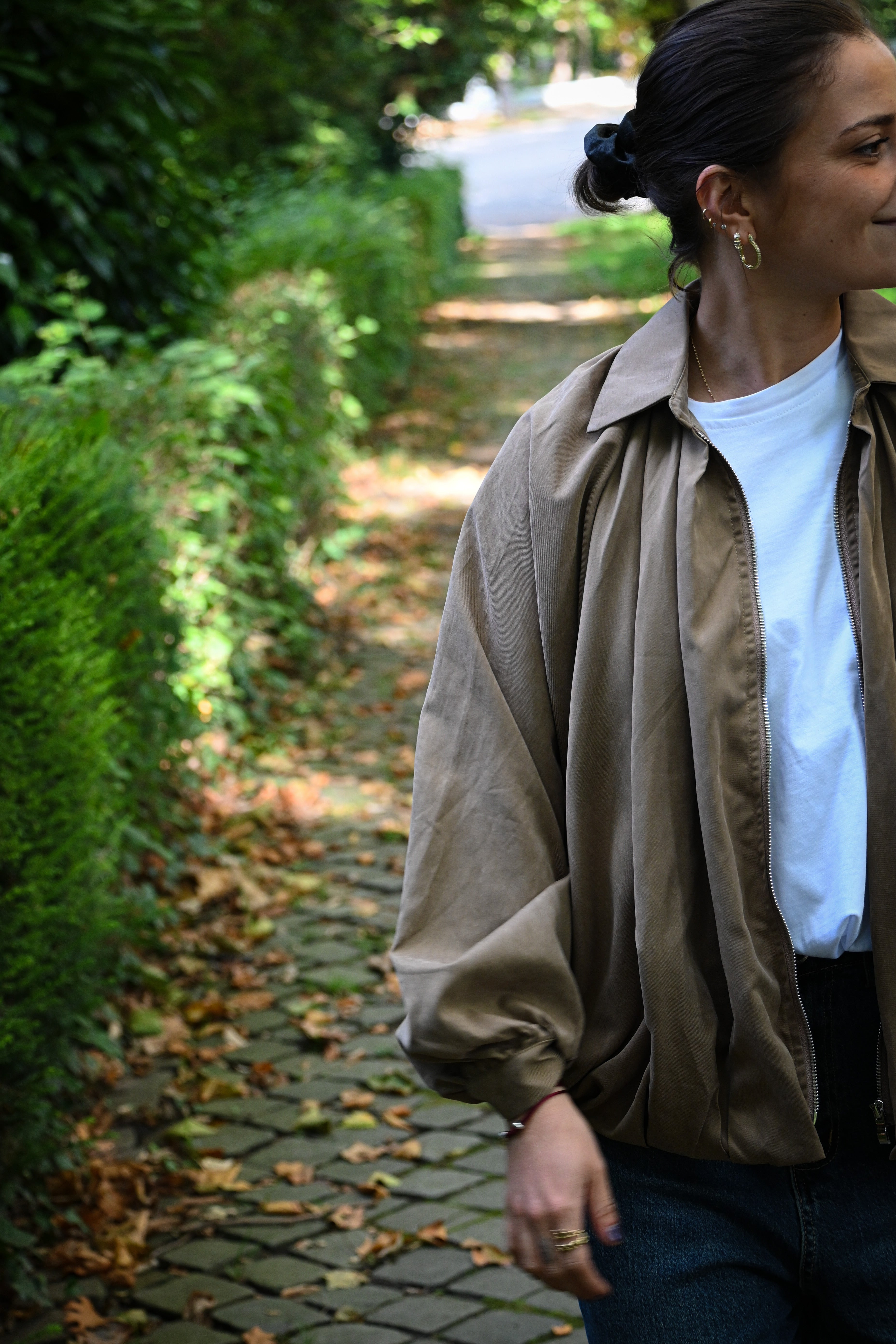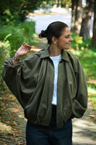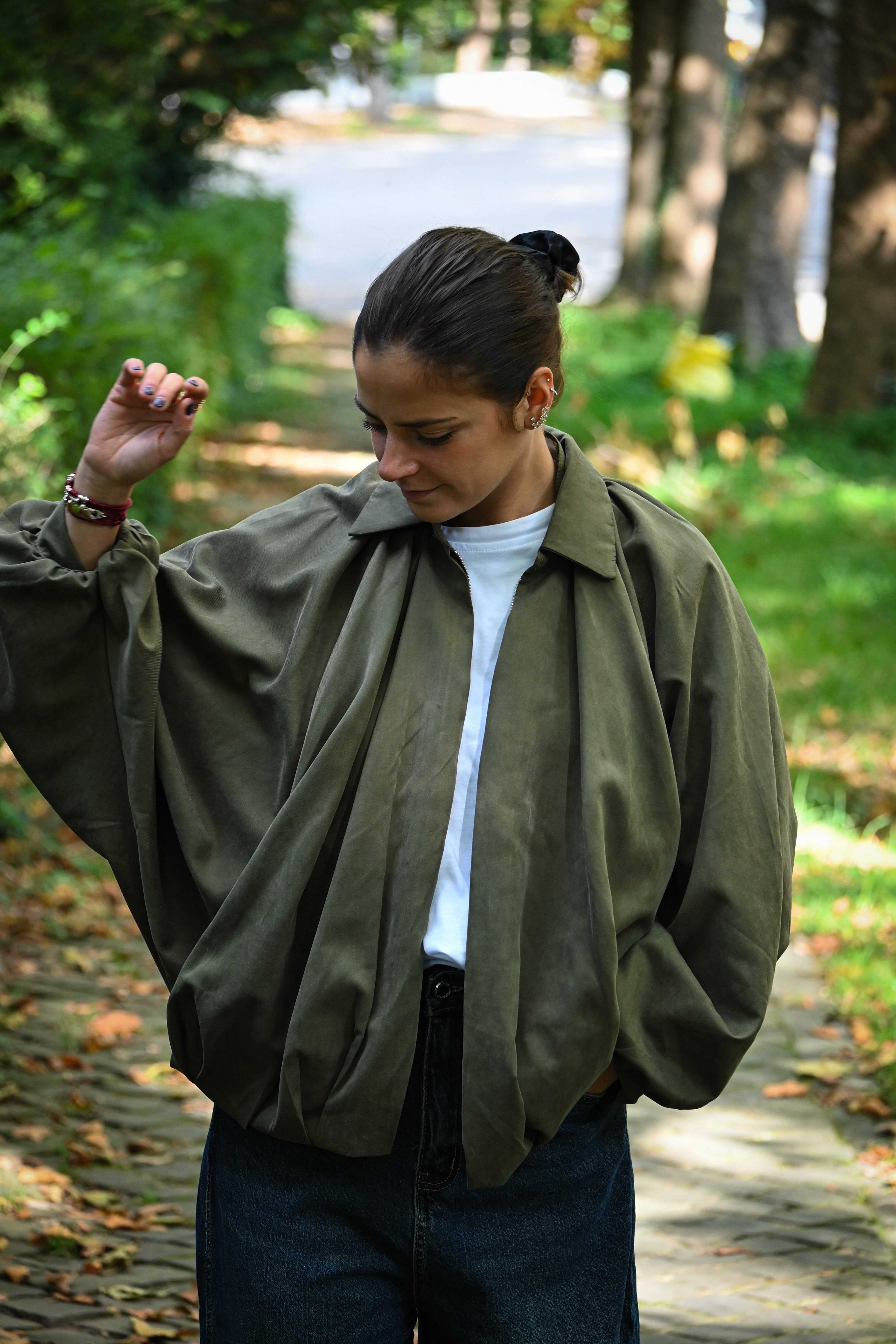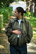 Cette veste courte de style bomber, dotée d’un col polo et d’une fermeture éclair, est resserrée à la base. Proposée en taille unique, elle convient parfaitement à toutes les silhouettes et morphologies.