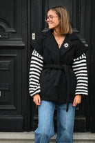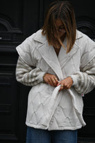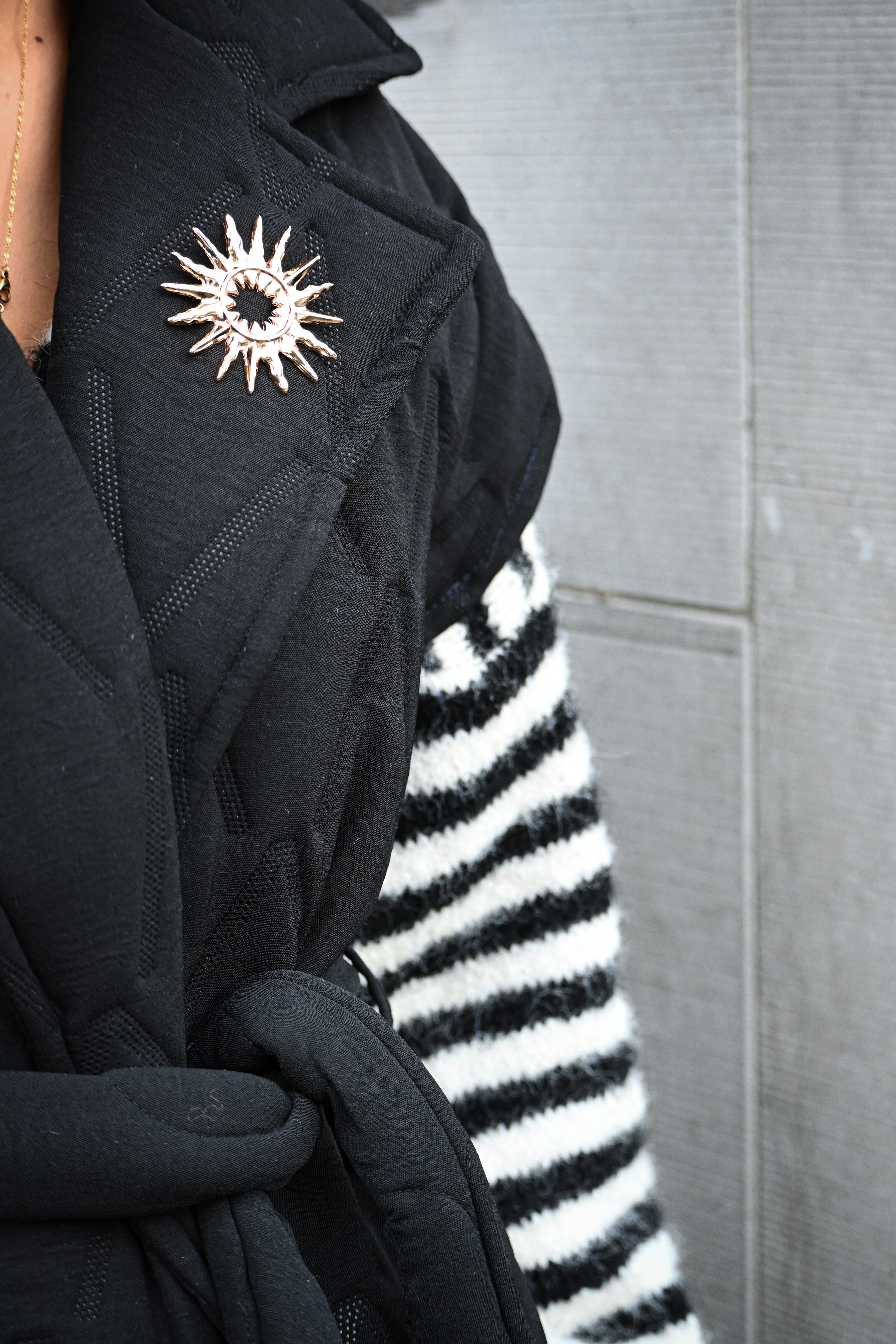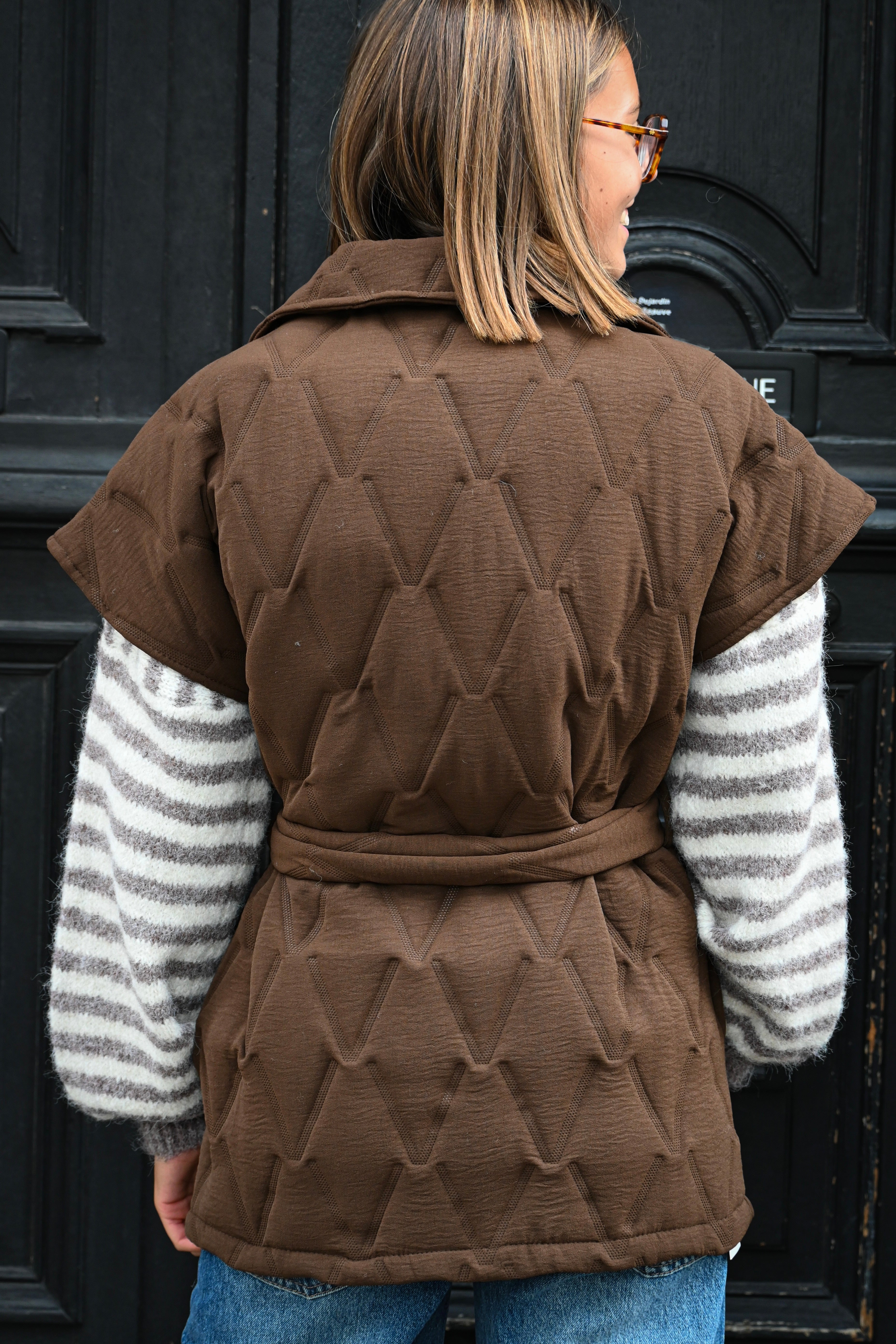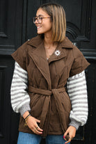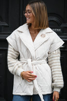 Cette doudoune sans manches, ornée d'une broche élégante à l'avant et cintrée par une ceinture, est proposée en taille unique pour convenir parfaitement à toutes les morphologies.