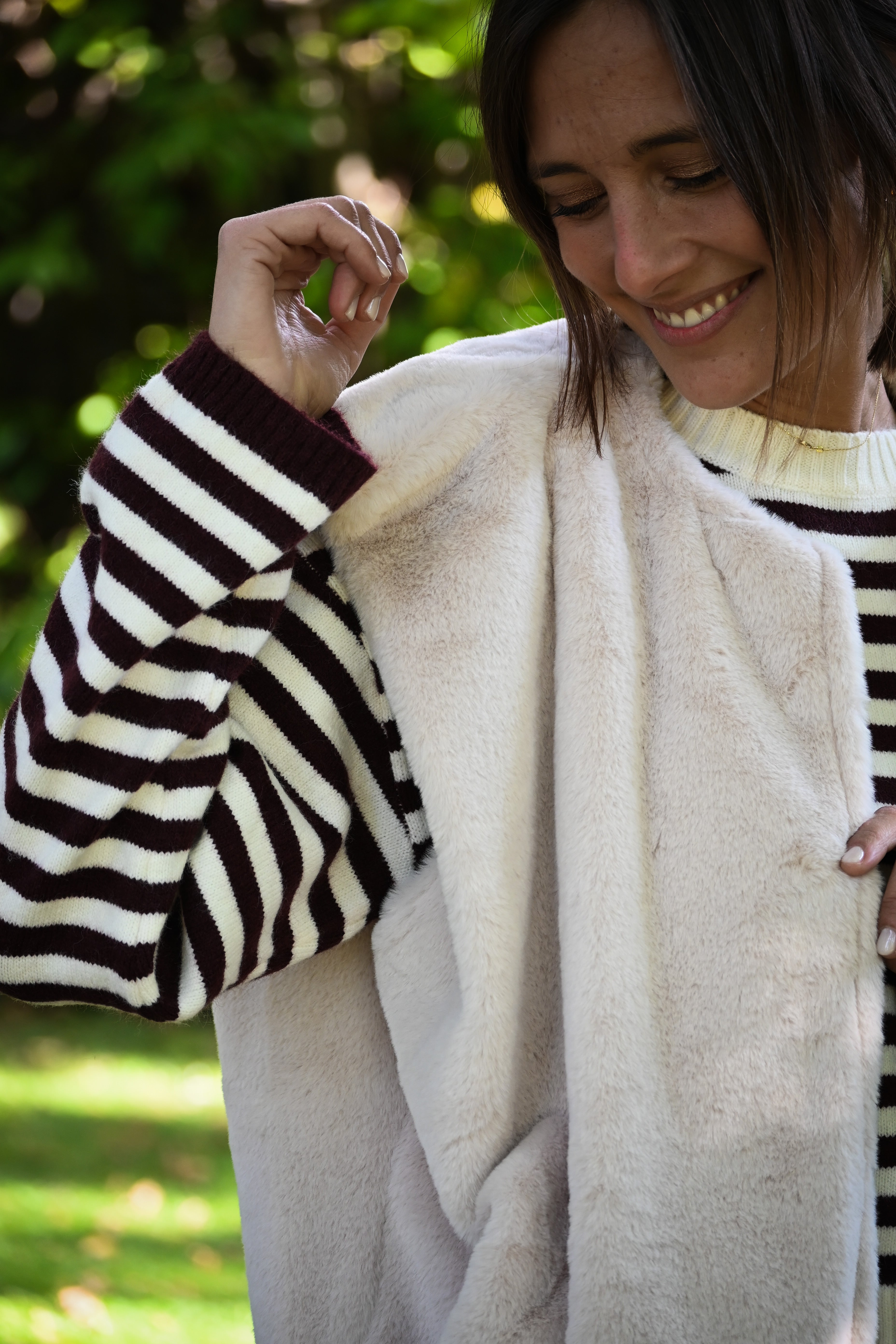 Cette veste sans manches en fausse fourrure ultra douce offre un confort exceptionnel. Dotée de poches latérales pratiques, elle est proposée en taille unique, conçue pour un ajustement ample qui s’adapte facilement à toutes les silhouettes.