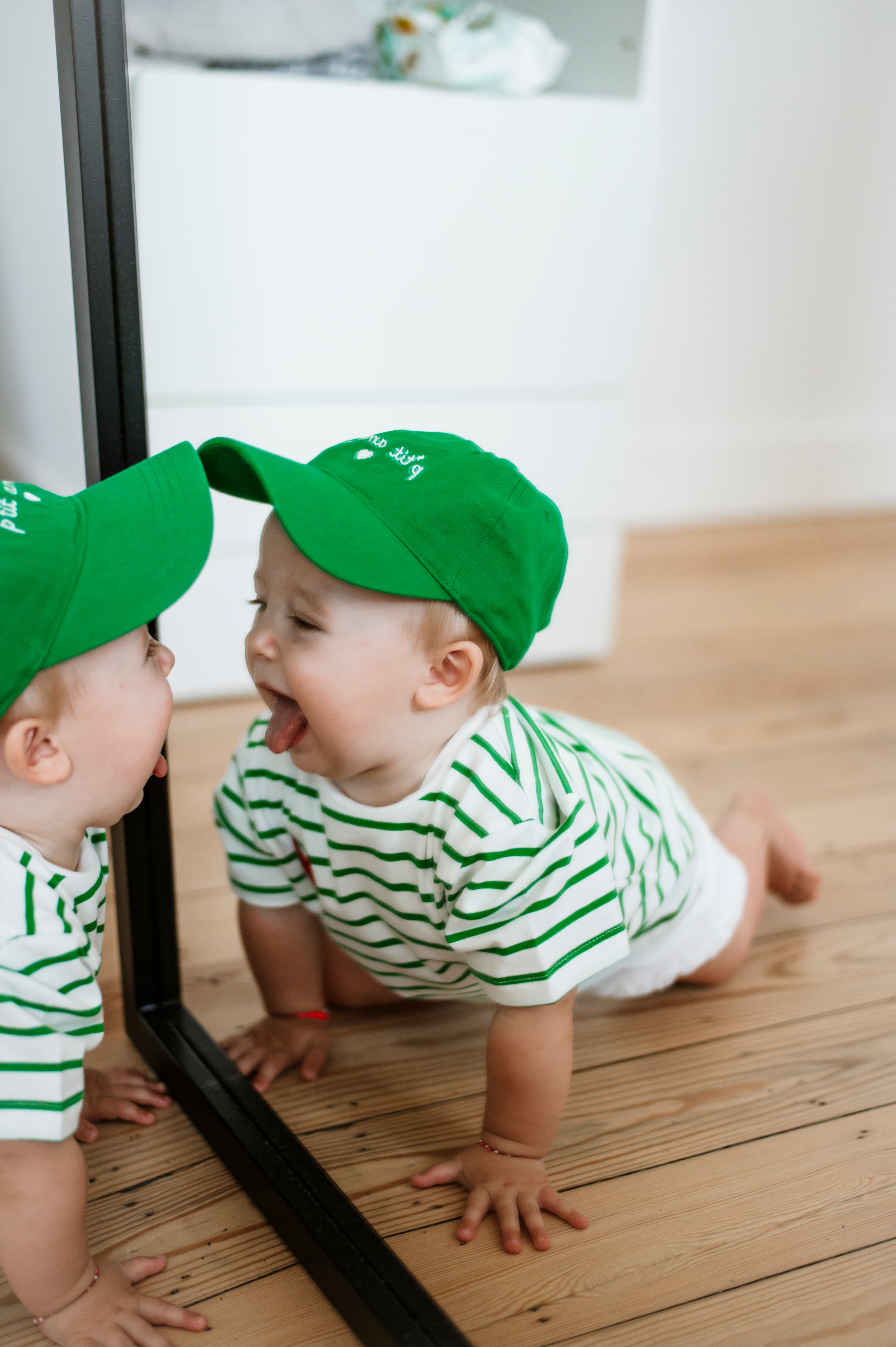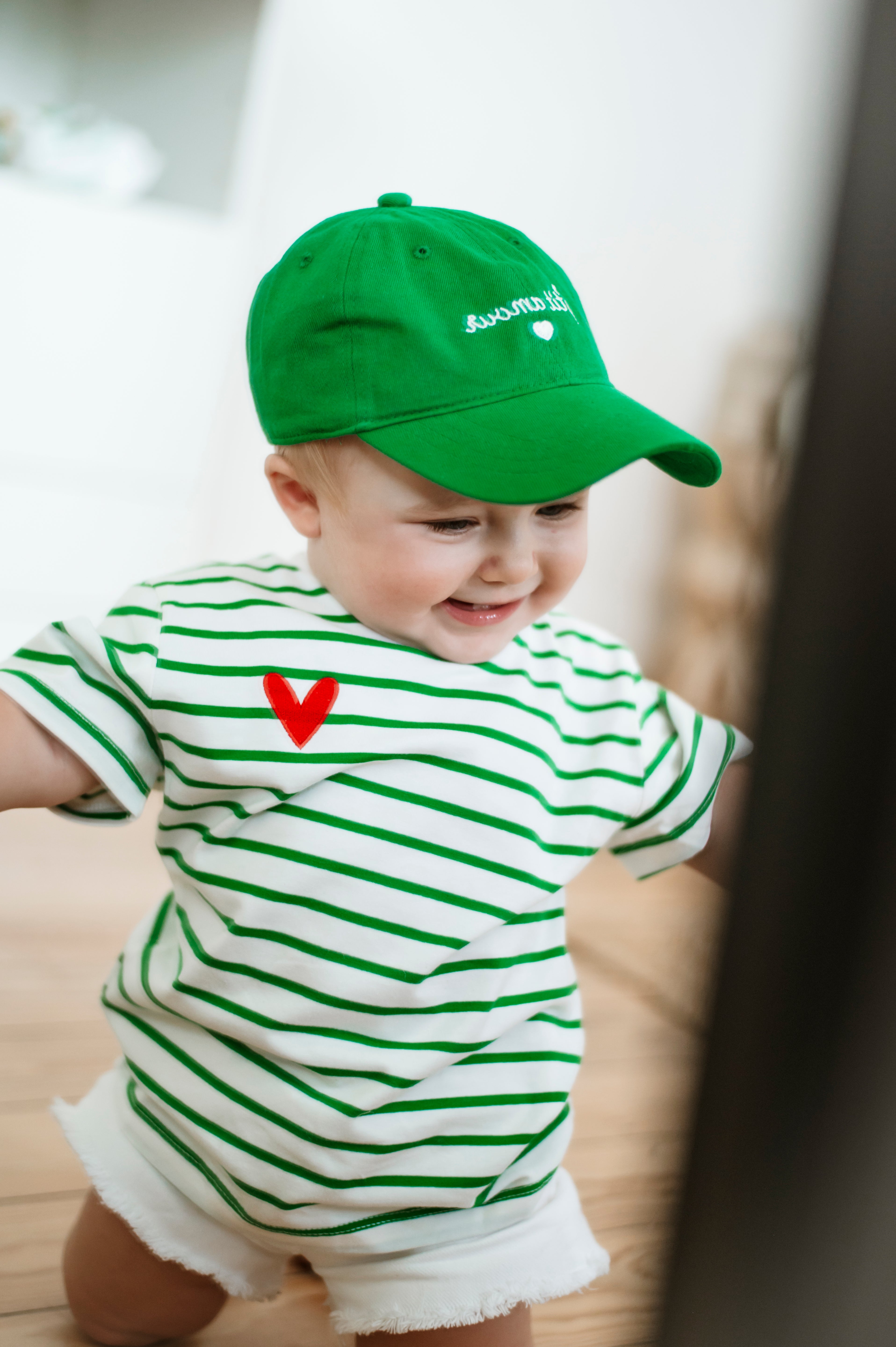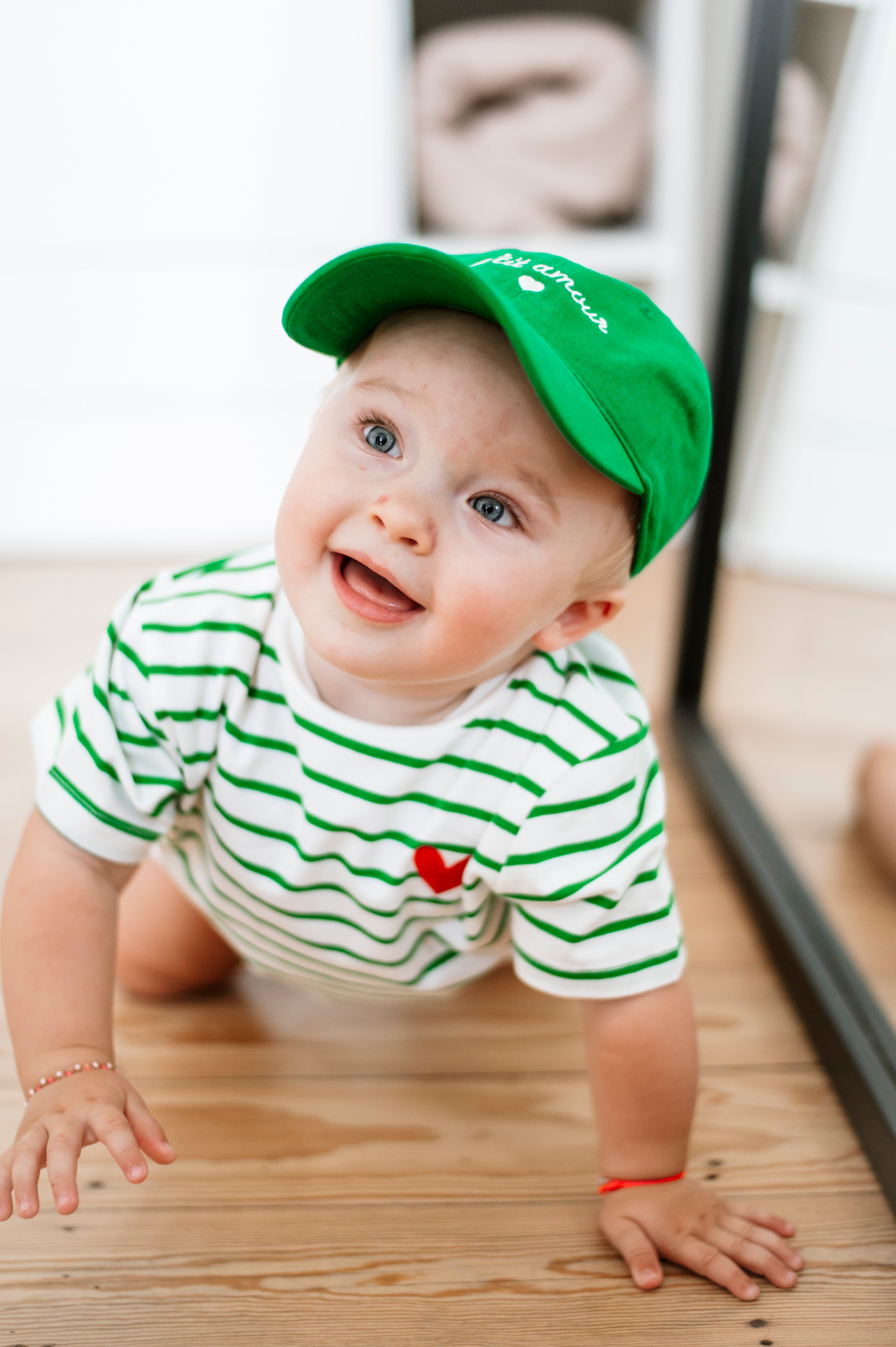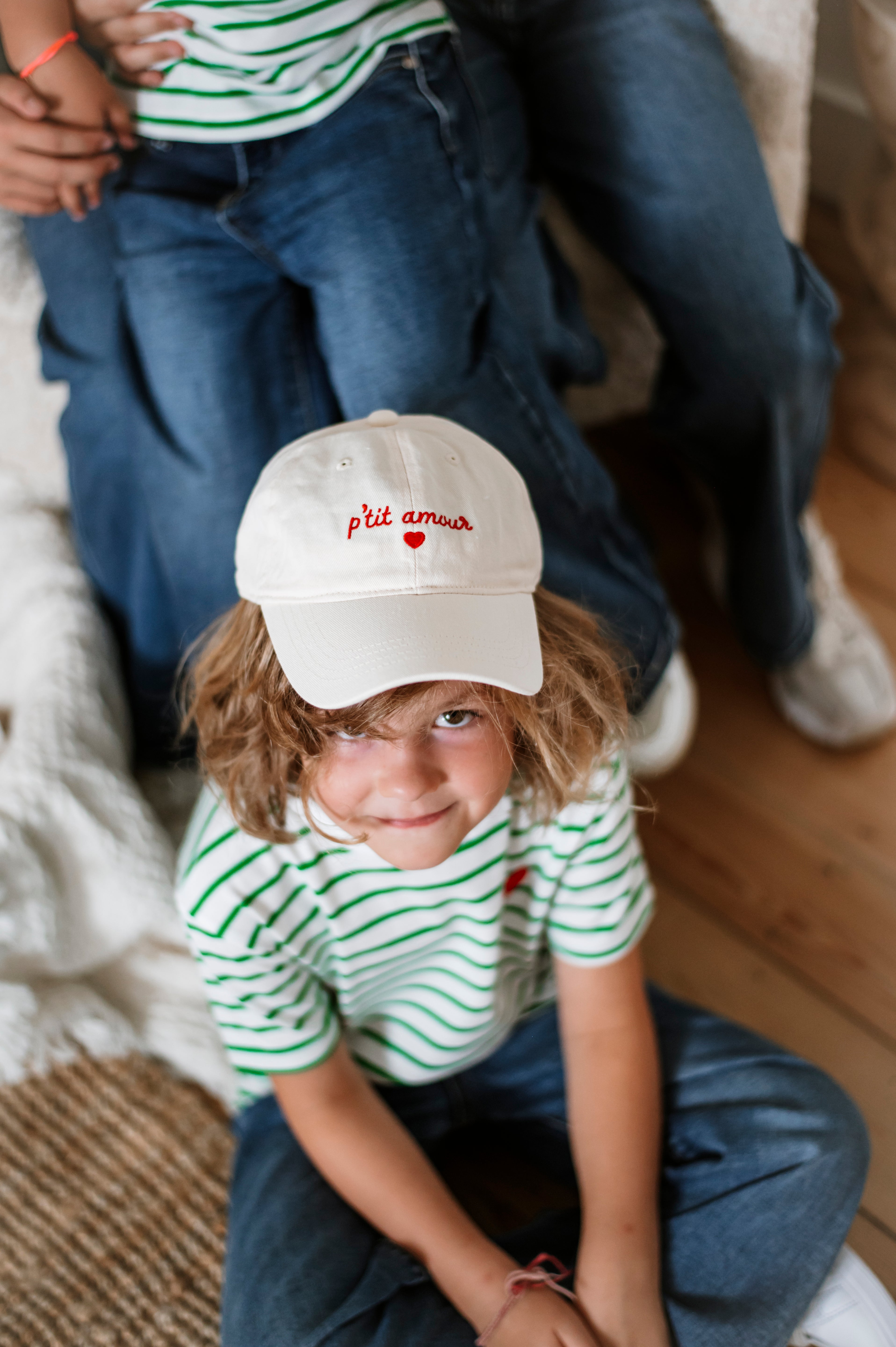 Casquette pour enfants, disponible en taille unique en vert et en écru.