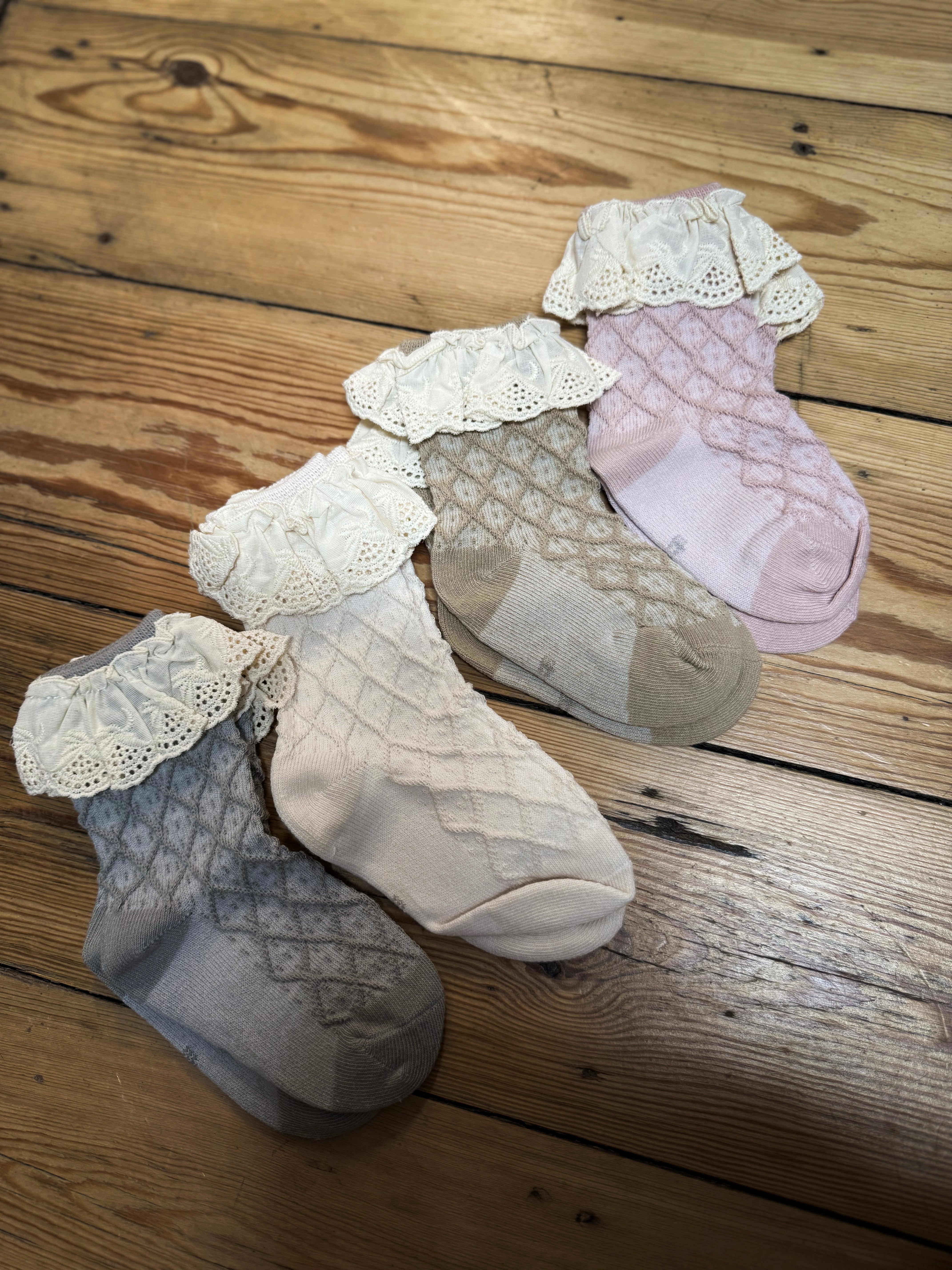 Chaussettes pour enfants, avec de la dentelle. Disponible en plusieurs couleurs et plusieurs tailles.