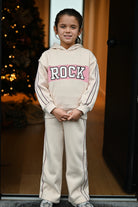 Découvrez notre ensemble de jogging PIA : un sweat à capuche orné d'une inscription rock tendance associé à un pantalon doté d'une bande latérale. Un duo confortable et stylé pour un look décontracté affirmé.
