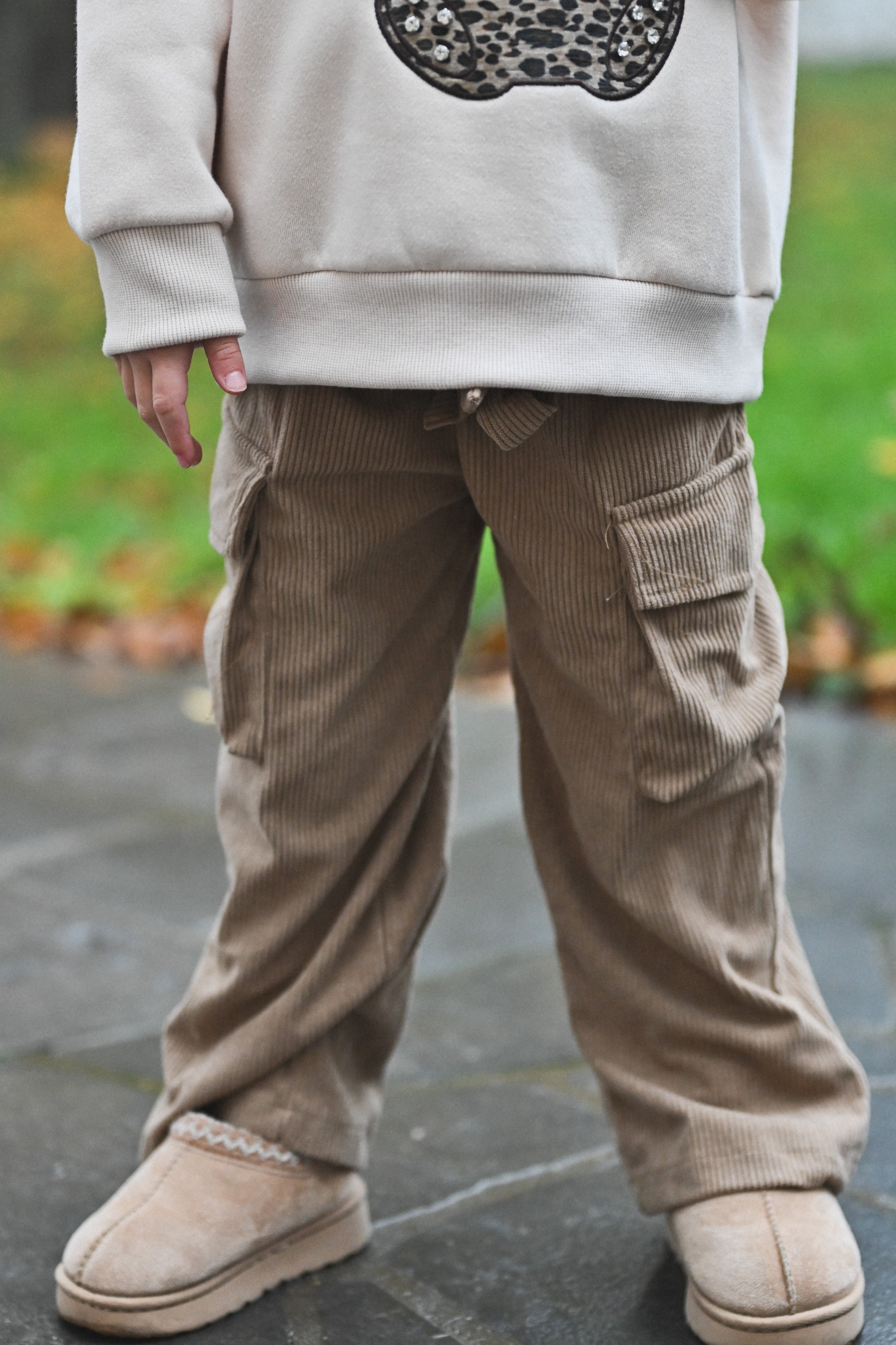 Découvrez le Pantalon mini GLORIA, en velours côtelé camel. Doté de poches pratiques et d'une ceinture ajustable, il offre confort et style pour les enfants. Disponible de la taille 4 ans à 14 ans.