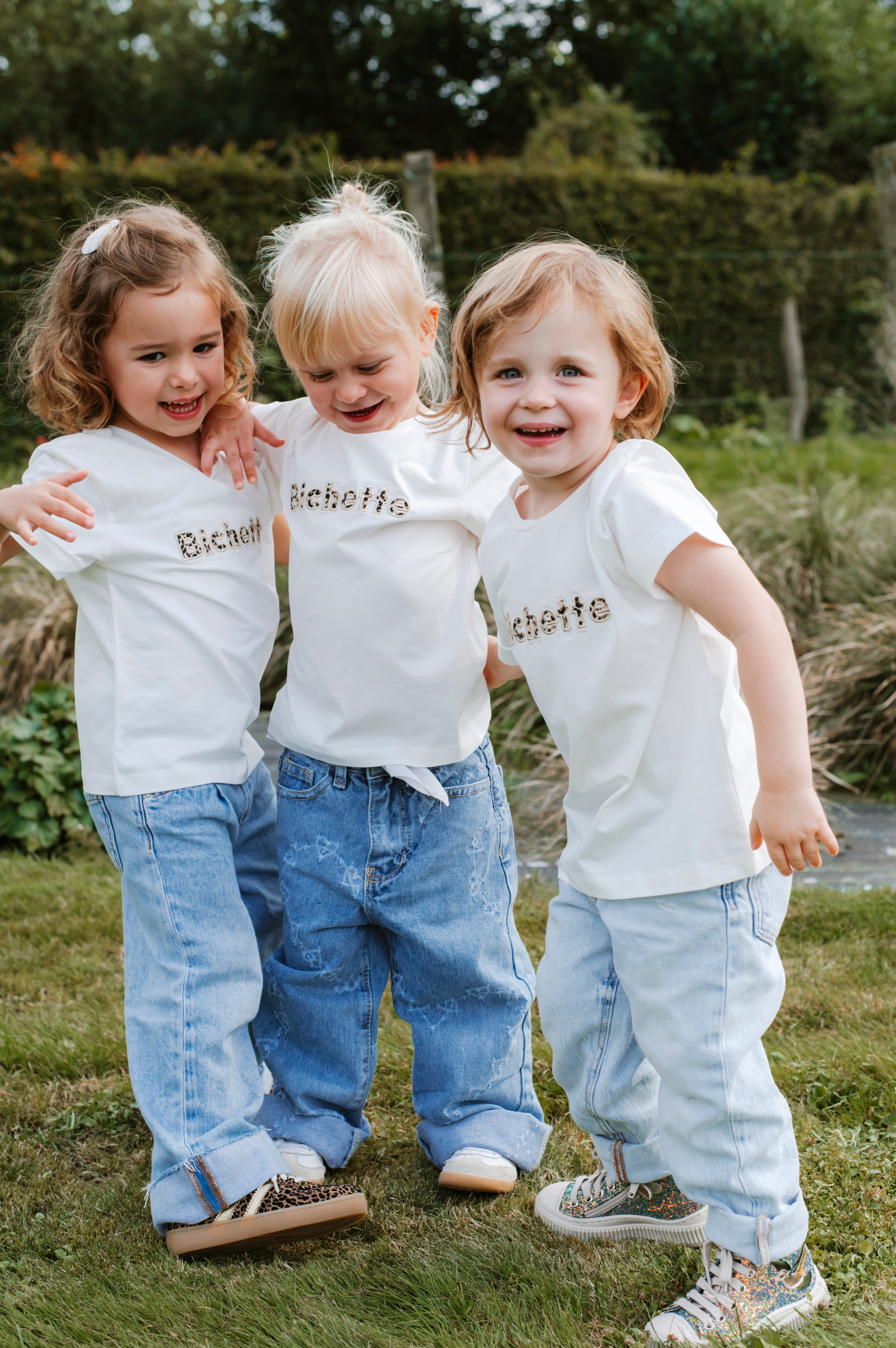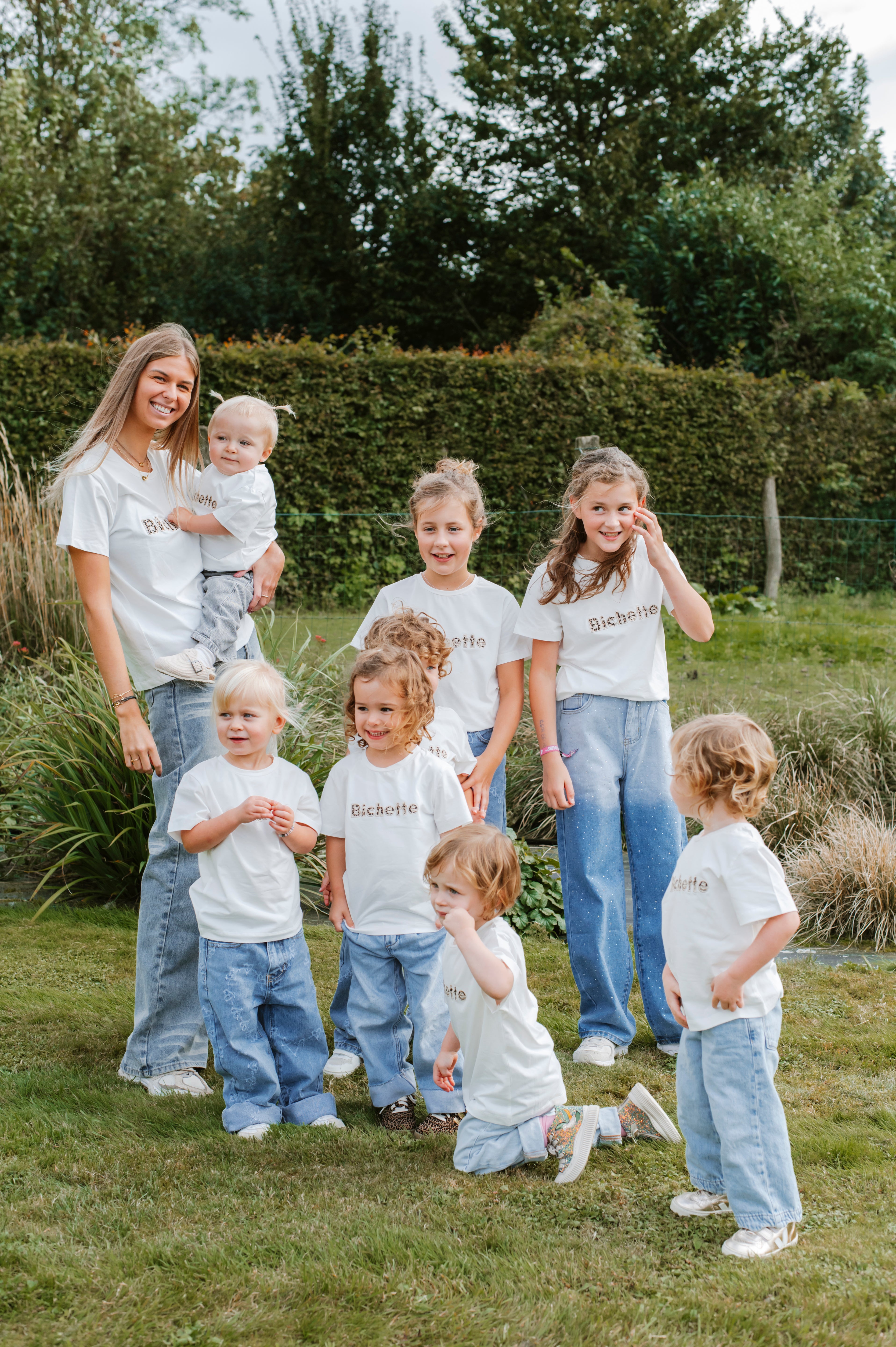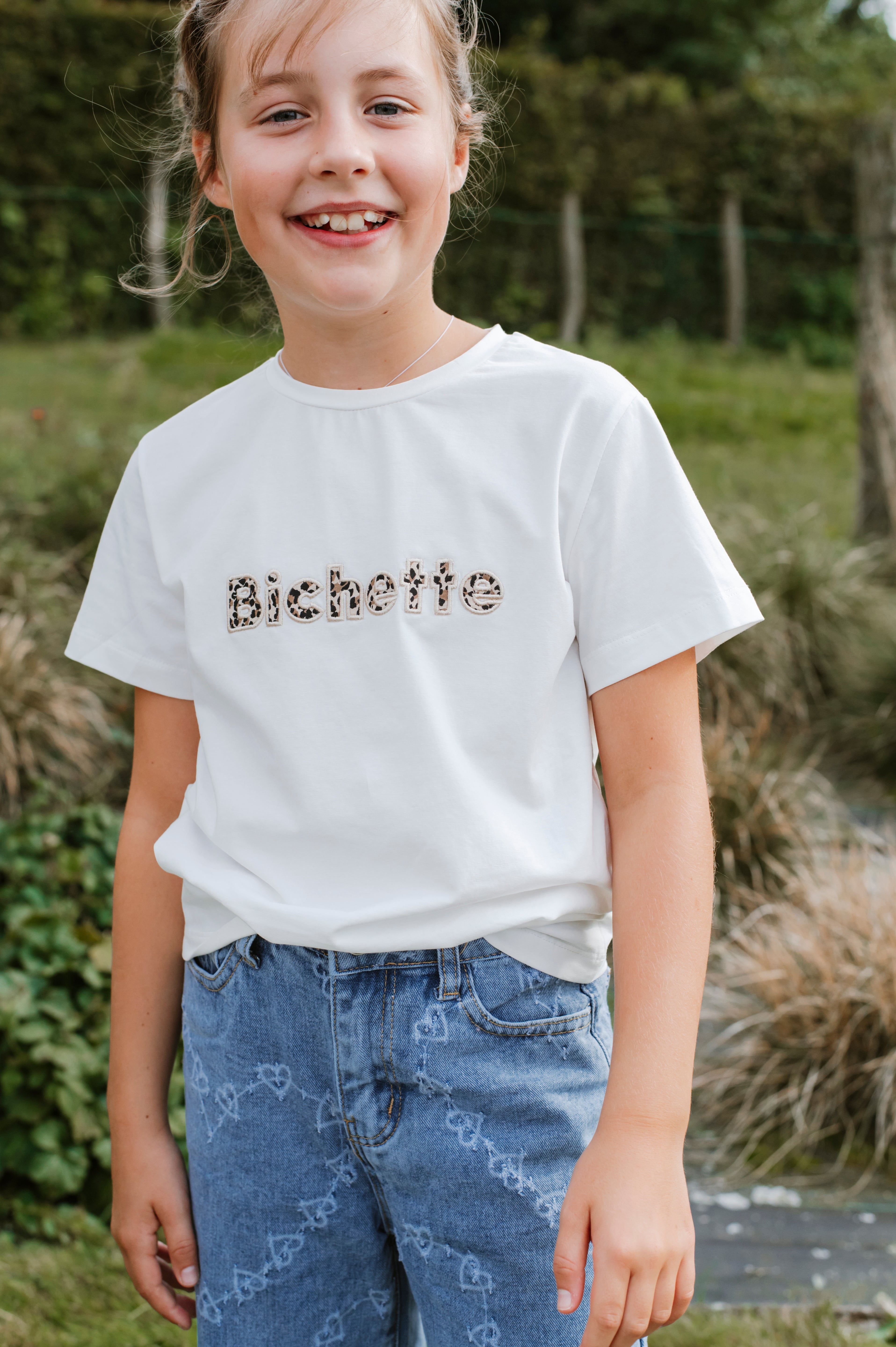 Ce t-shirt blanc arbore l’inscription "Bichette" en motif léopard, apportant une touche stylée et ludique. Disponible pour les enfants de 2 à 12 ans, il allie confort et originalité pour toutes les occasions.