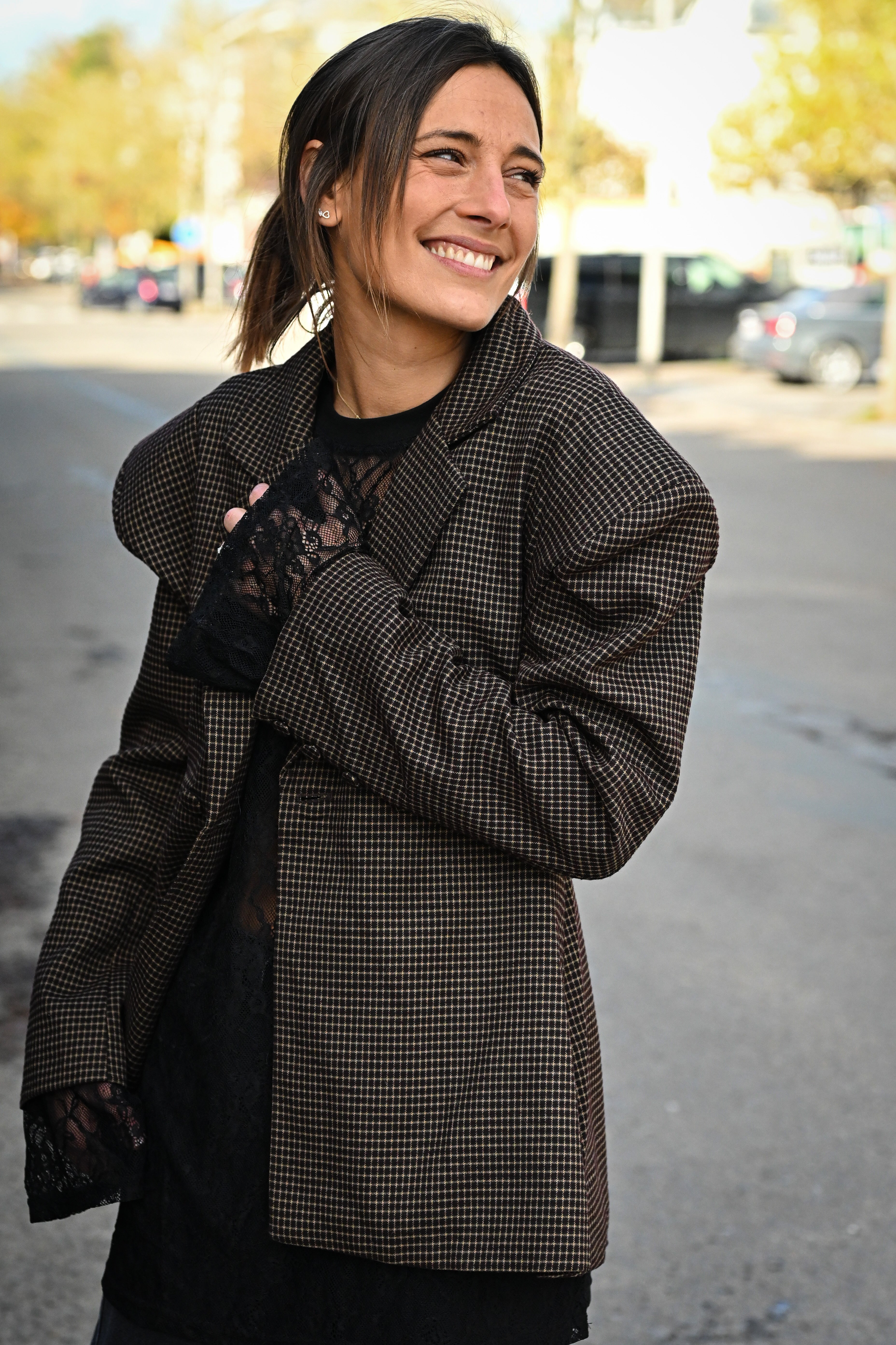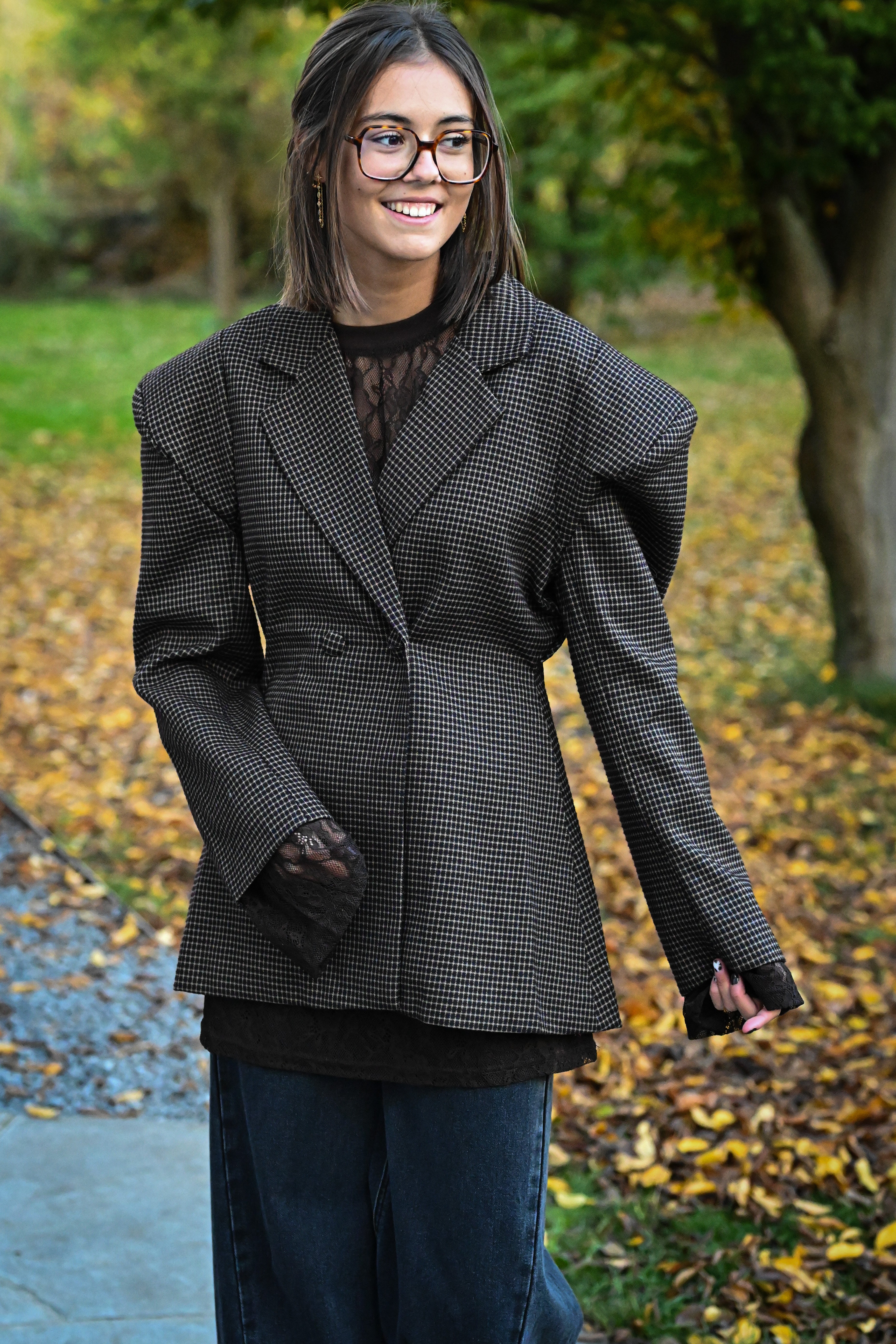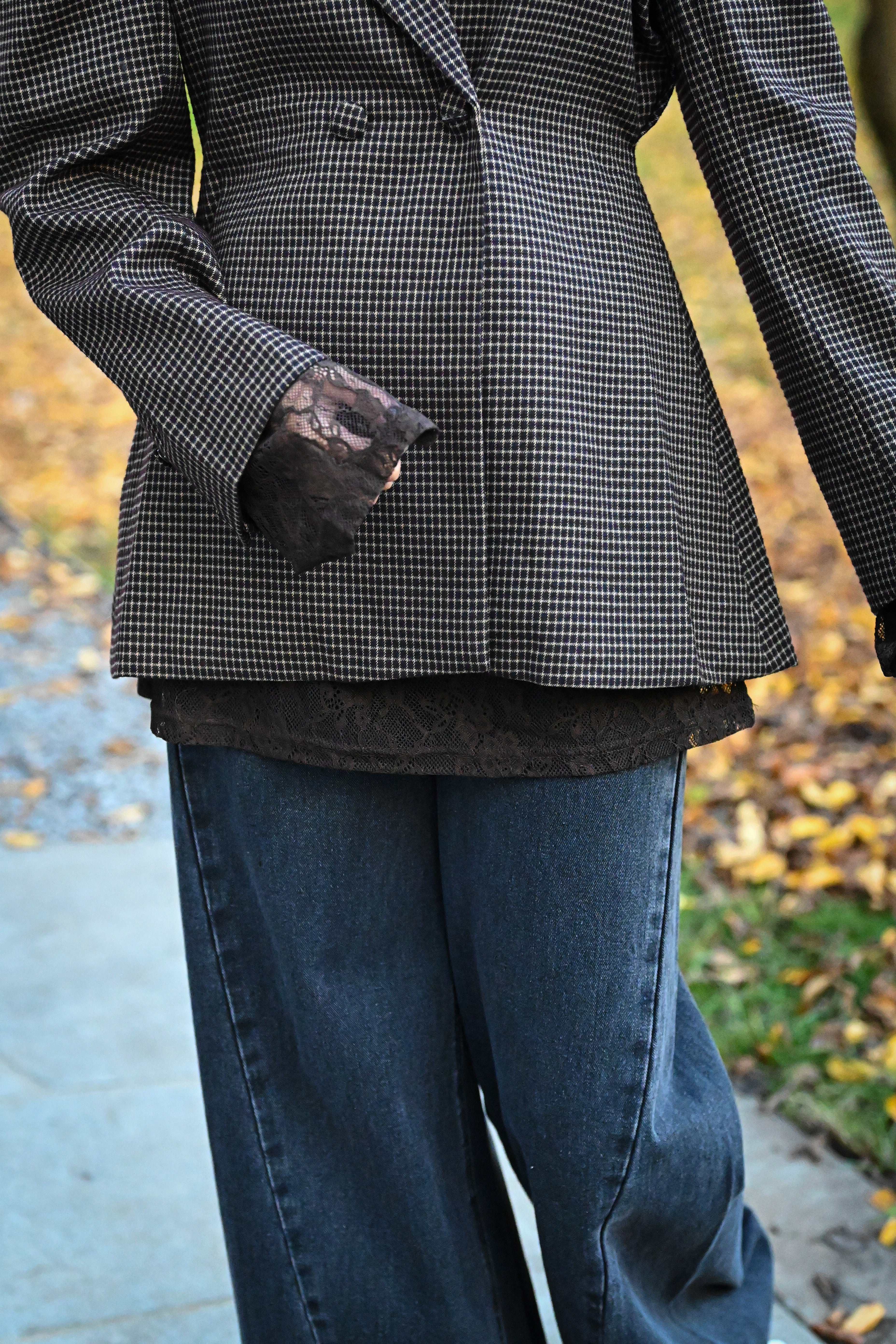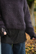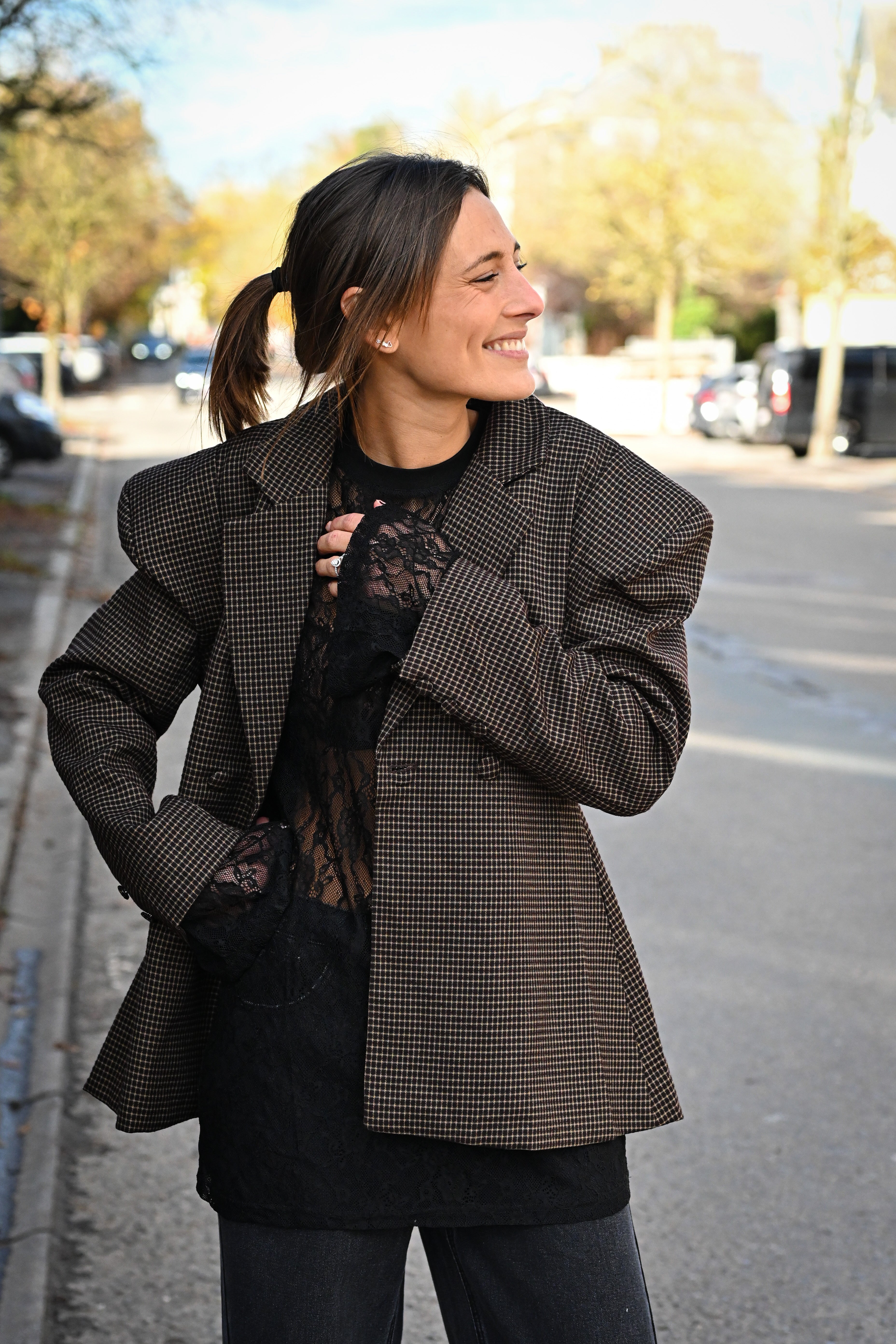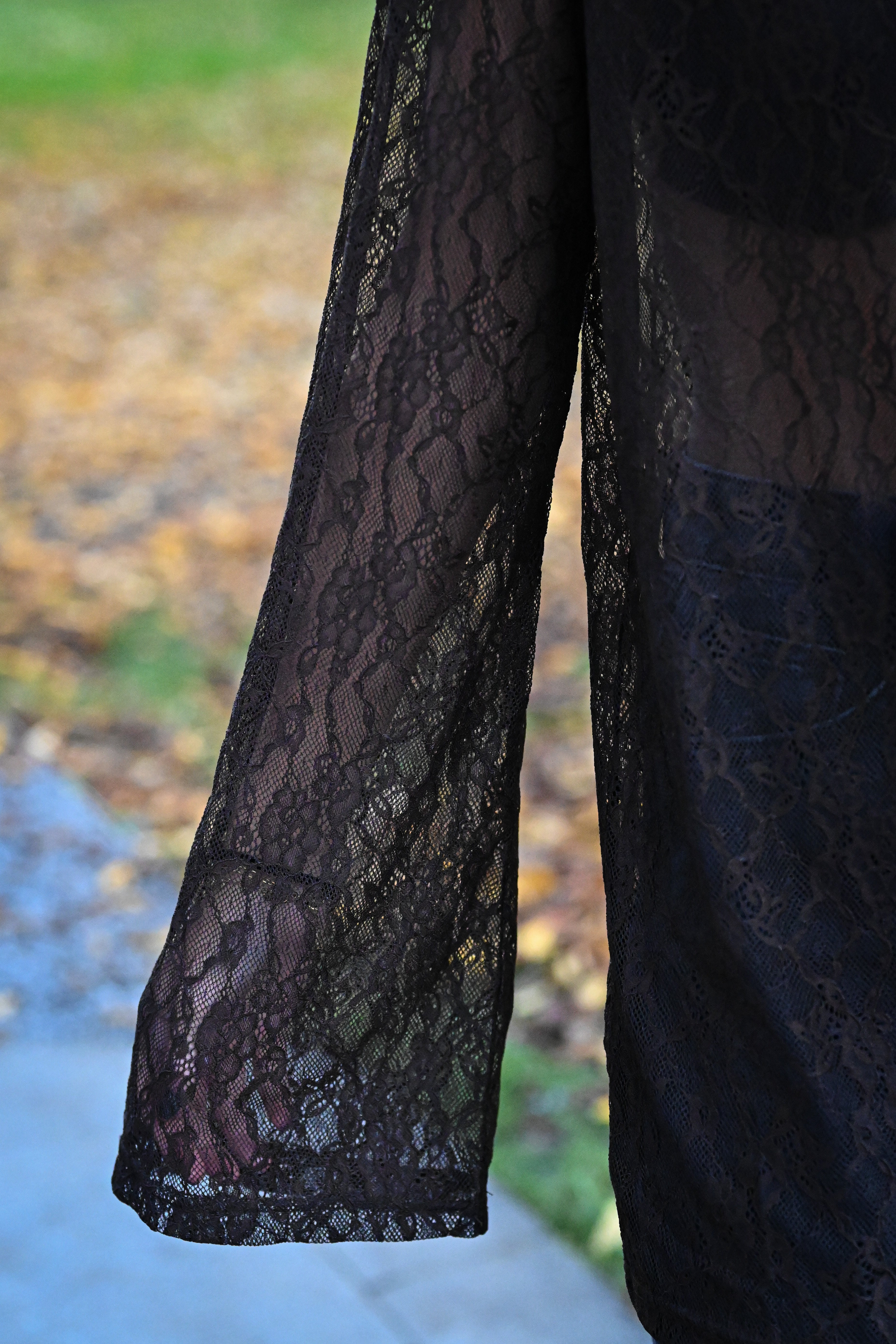 Blouse noire à manches longues en dentelle dotée d'une transparence subtile et d'un col rond classique. Coupe épurée en taille unique, cette pièce incontournable allie élégance et polyvalence pour un style raffiné au quotidien.