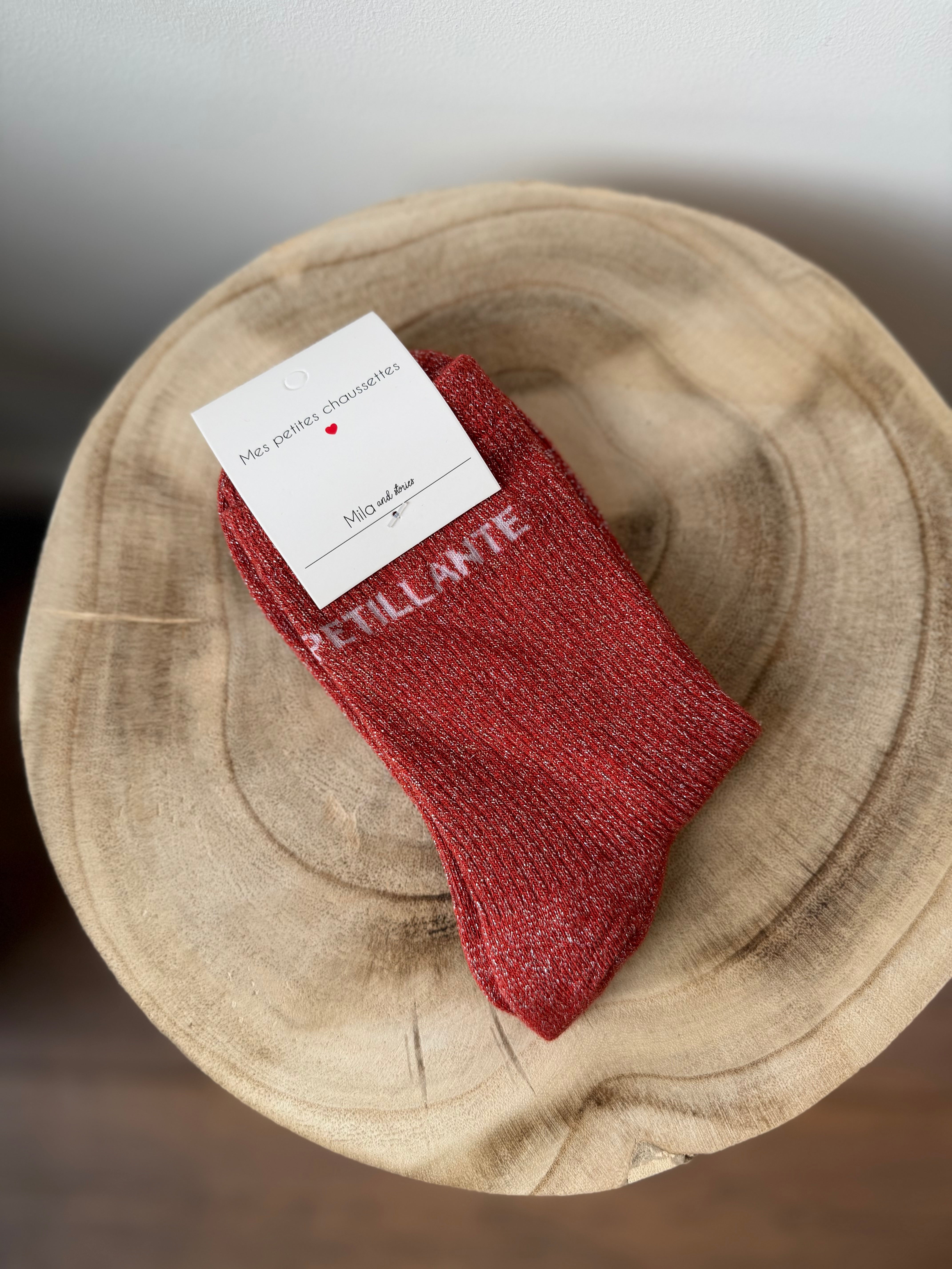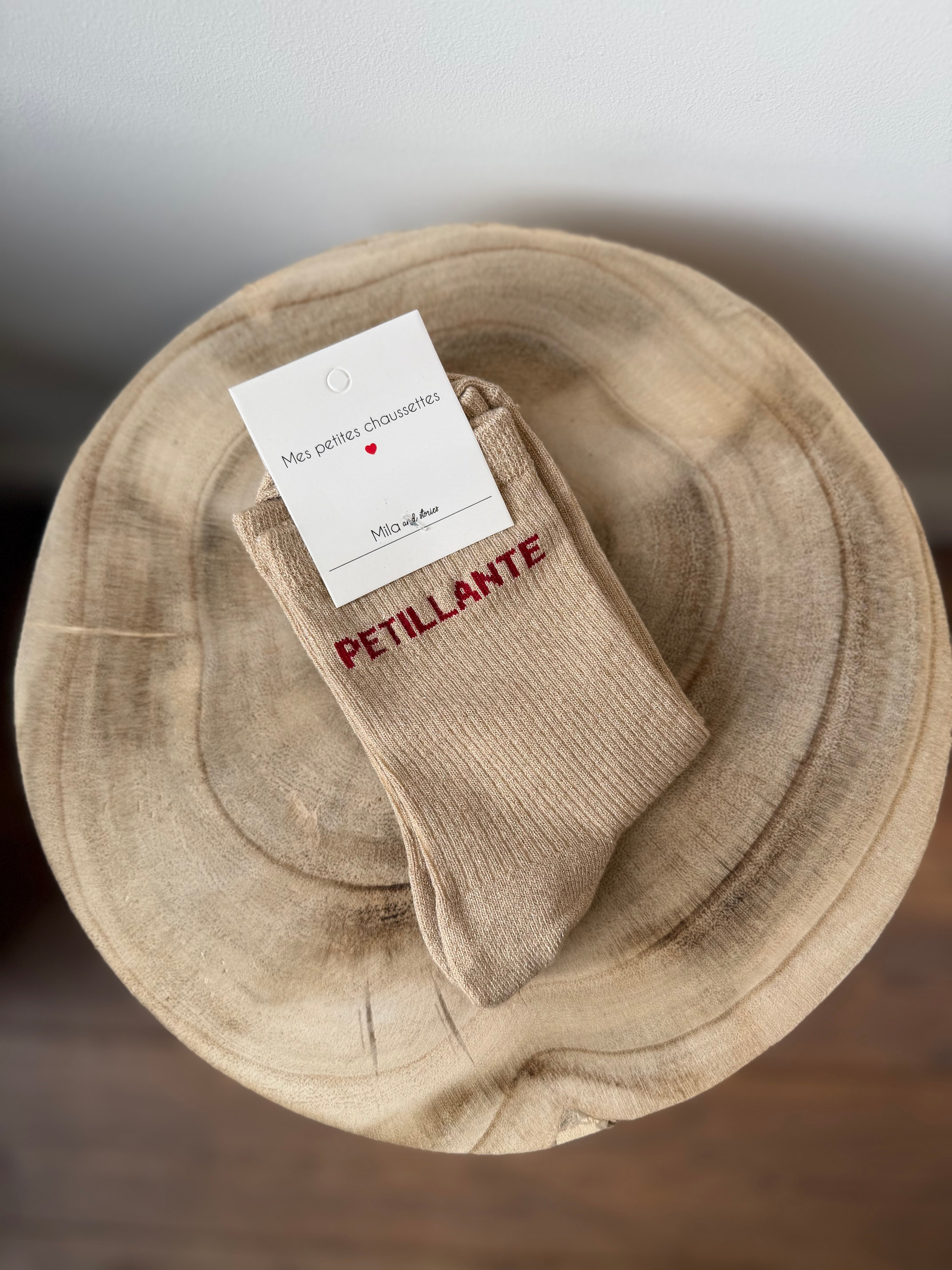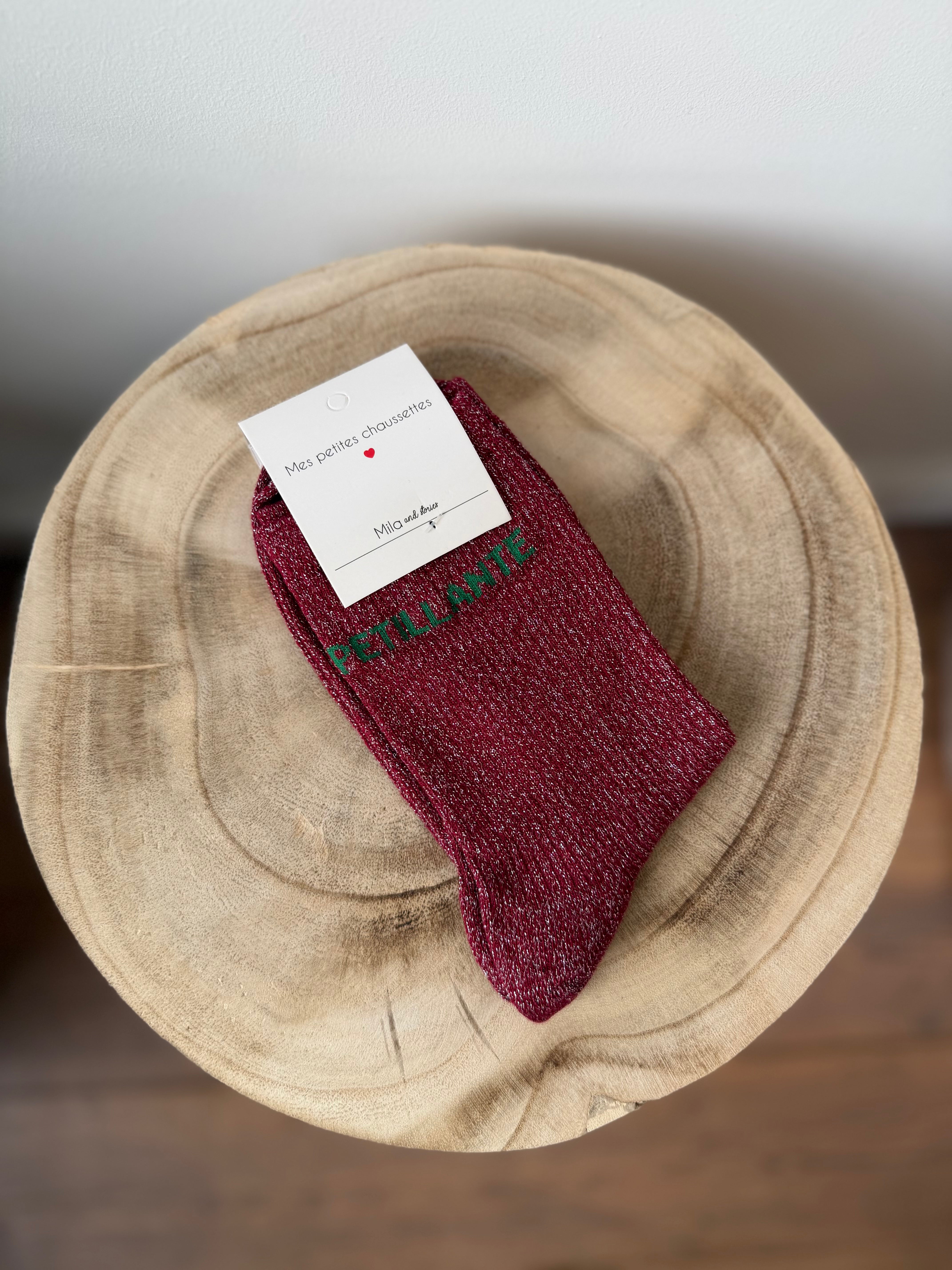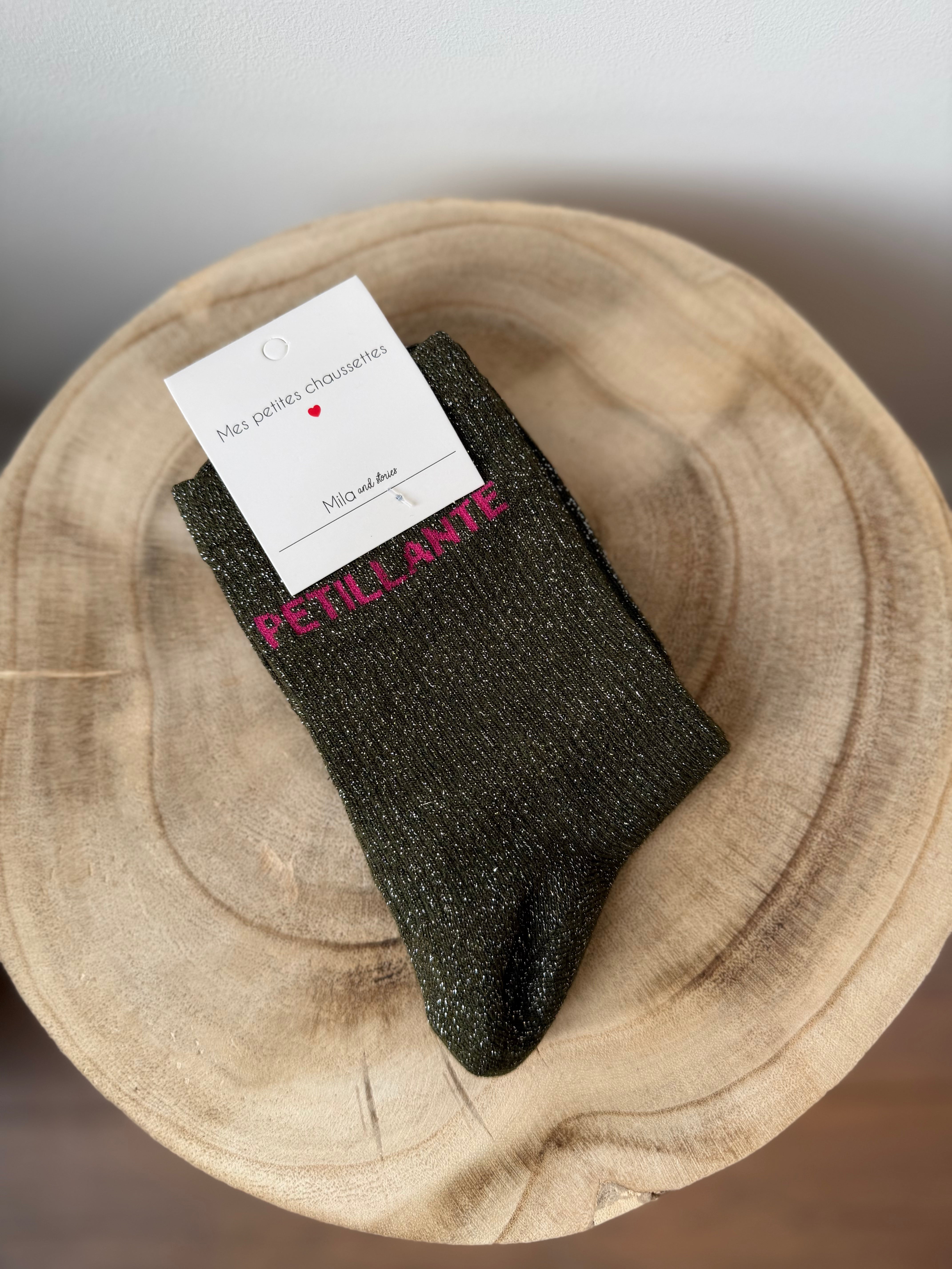 Ces chaussettes scintillantes arborent l’inscription "pétillante" et sont proposées en taille unique, adaptée du 36 au 40. Apportez une touche d’éclat à votre style avec ce modèle incontournable.