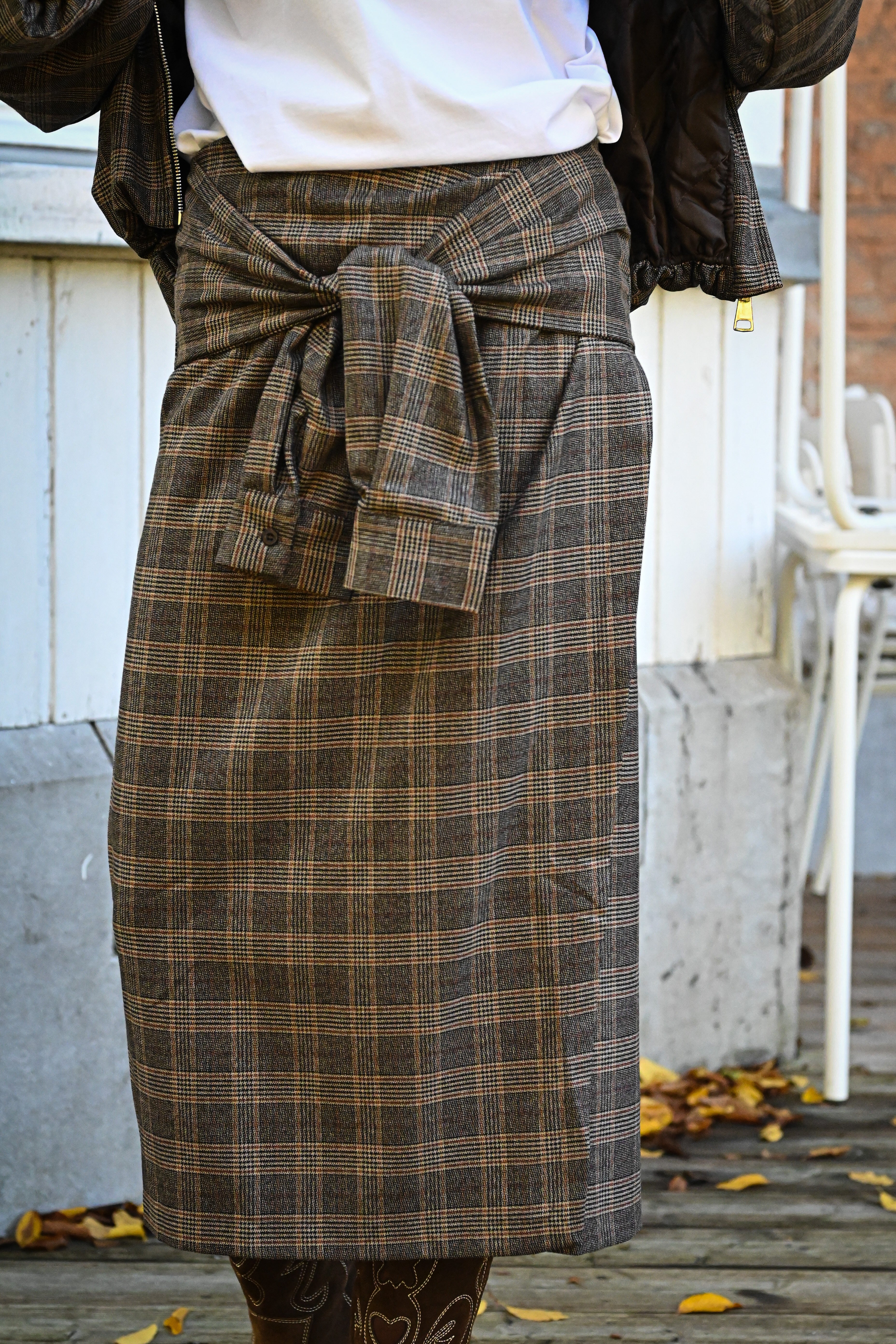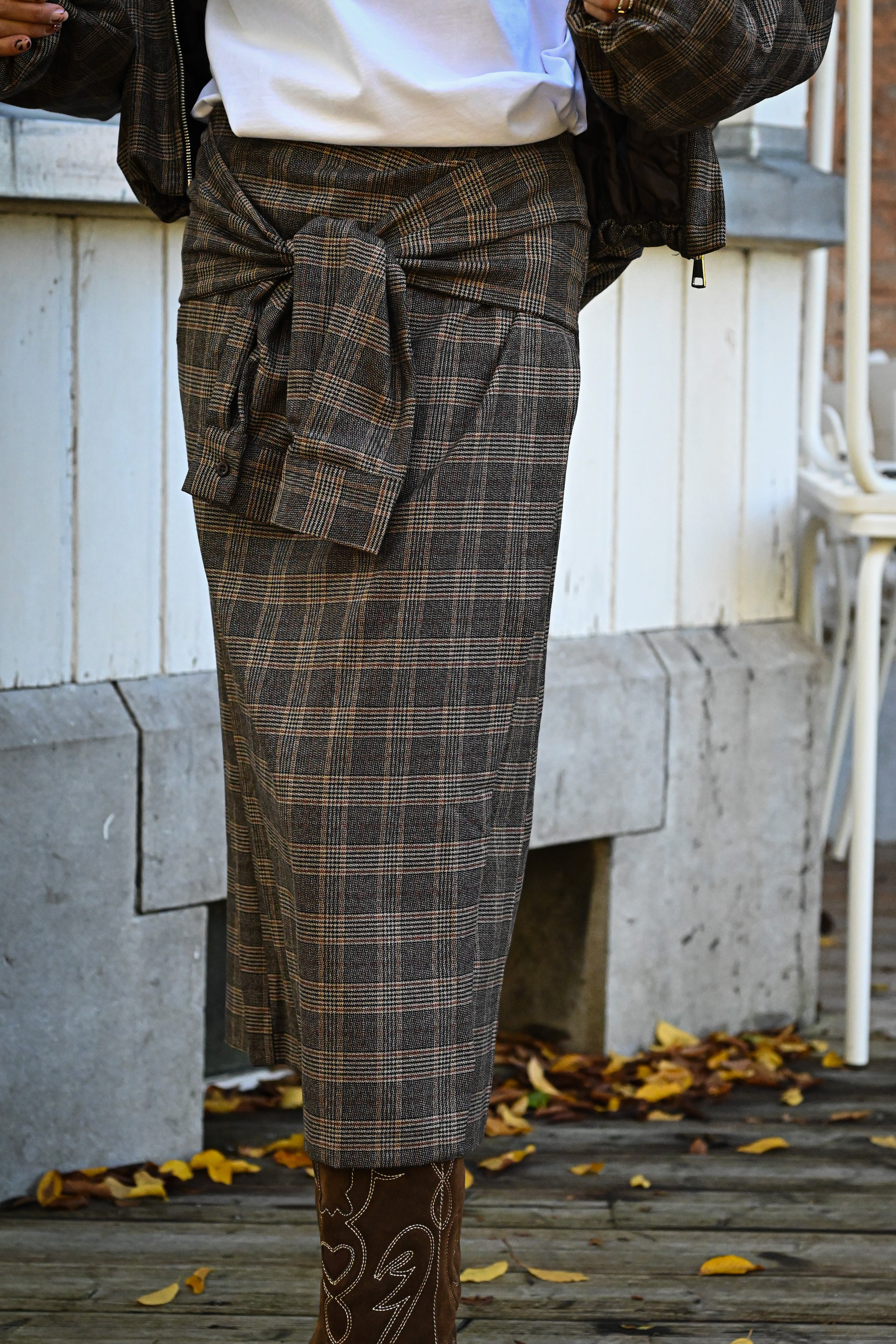 La jupe KATE est la pièce essentielle qui complète vos tenues avec style et confort. Son design portefeuille à carreaux apporte une touche intemporelle et chic à votre silhouette. La fermeture pratique à l'arrière garantit un ajustement parfait, tandis que la coupe trois-quarts flatteuse convient à tous les morphotypes. Proposée en tailles SM et ML, cette jupe polyvalente devient rapidement un incontournable de votre dressing. Élégance et fonctionnalité réunies dans une seule pièce.