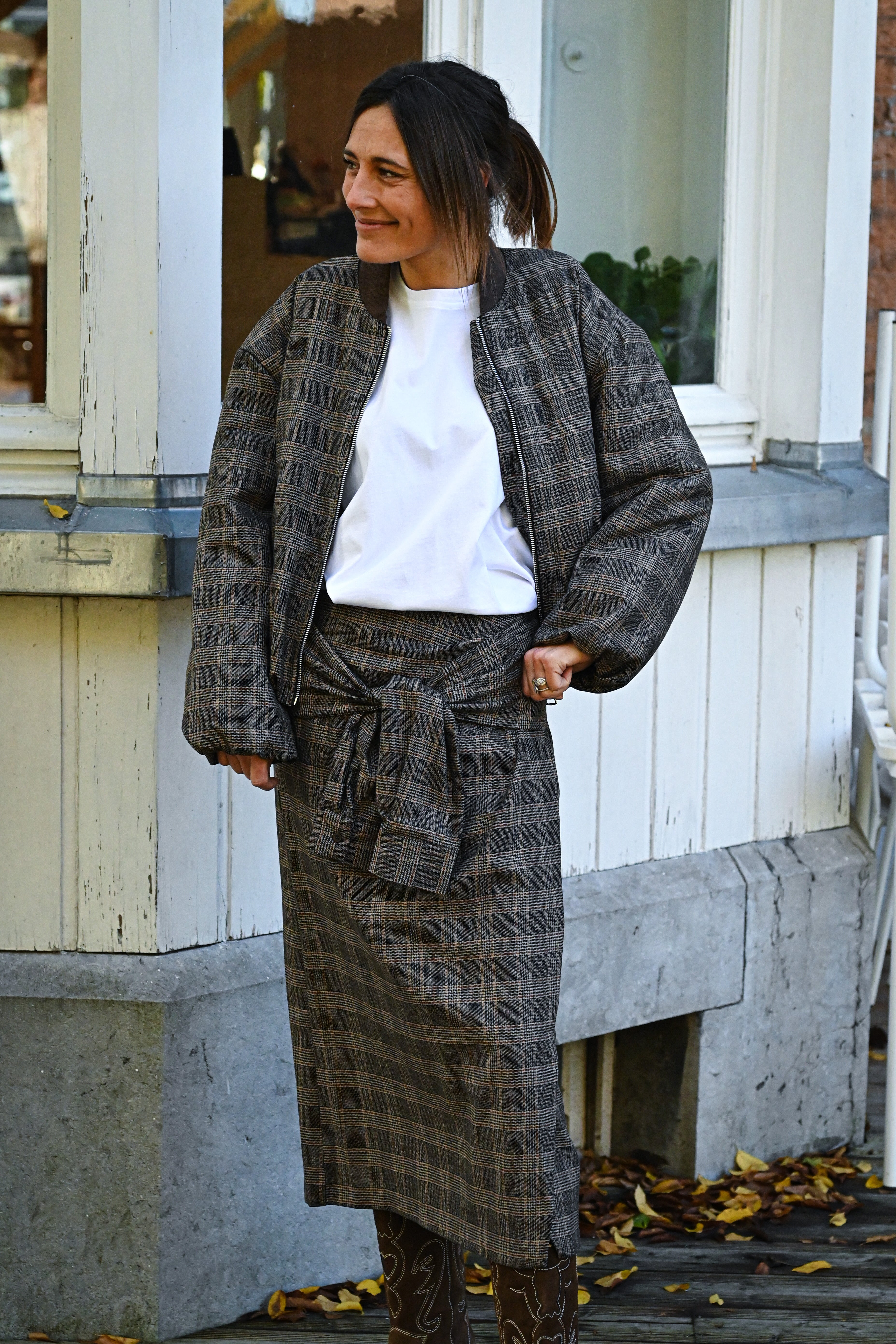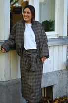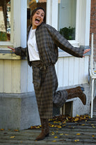 Découvrez la veste KATE, un incontournable de saison qui allie style et confort. Ce bomber à carreaux affiche une silhouette moderne avec sa coupe ajustée aux manches et à la taille, tandis que les manches ballon apportent une touche tendance. Le col chocolat contraste élégamment avec le motif. Dotée d'une fermeture éclair pratique, cette pièce polyvalente s'adapte à tous vos looks. Disponible en taille unique.
